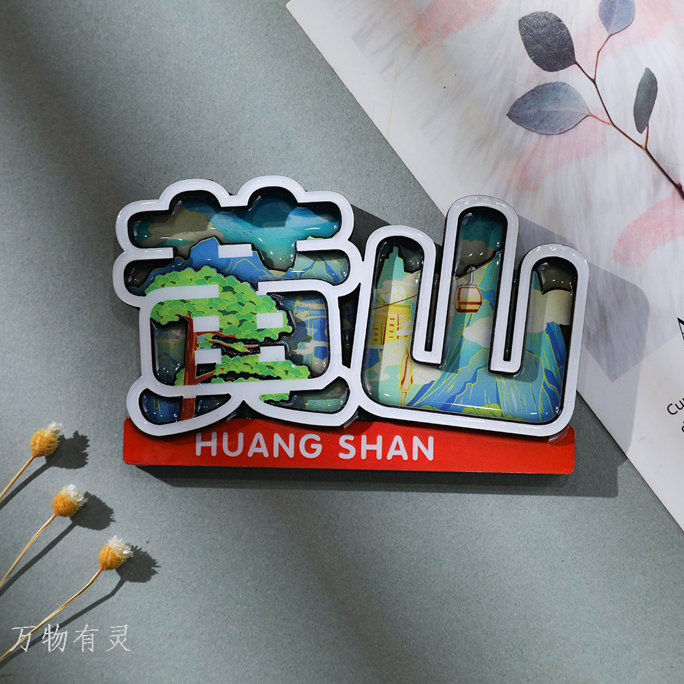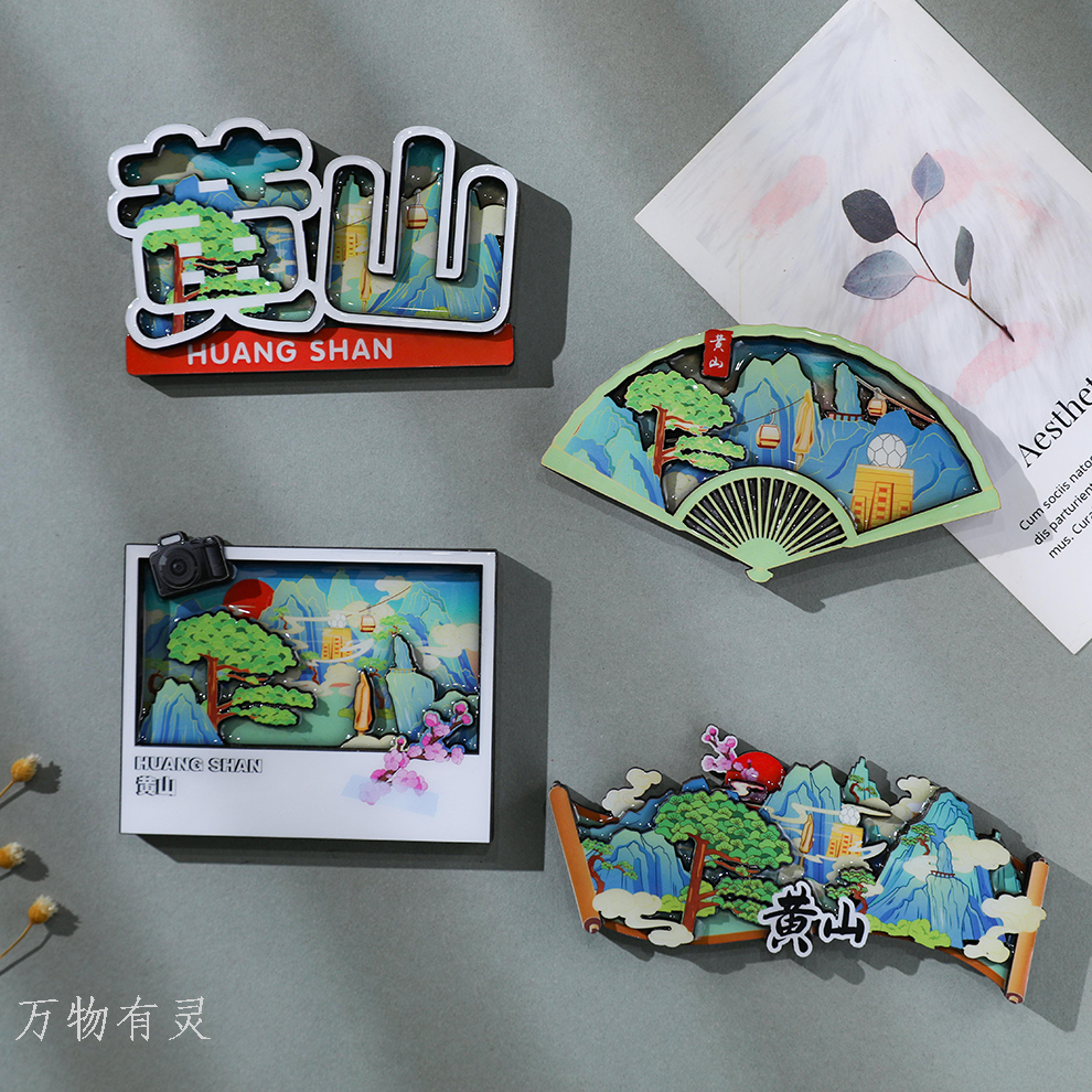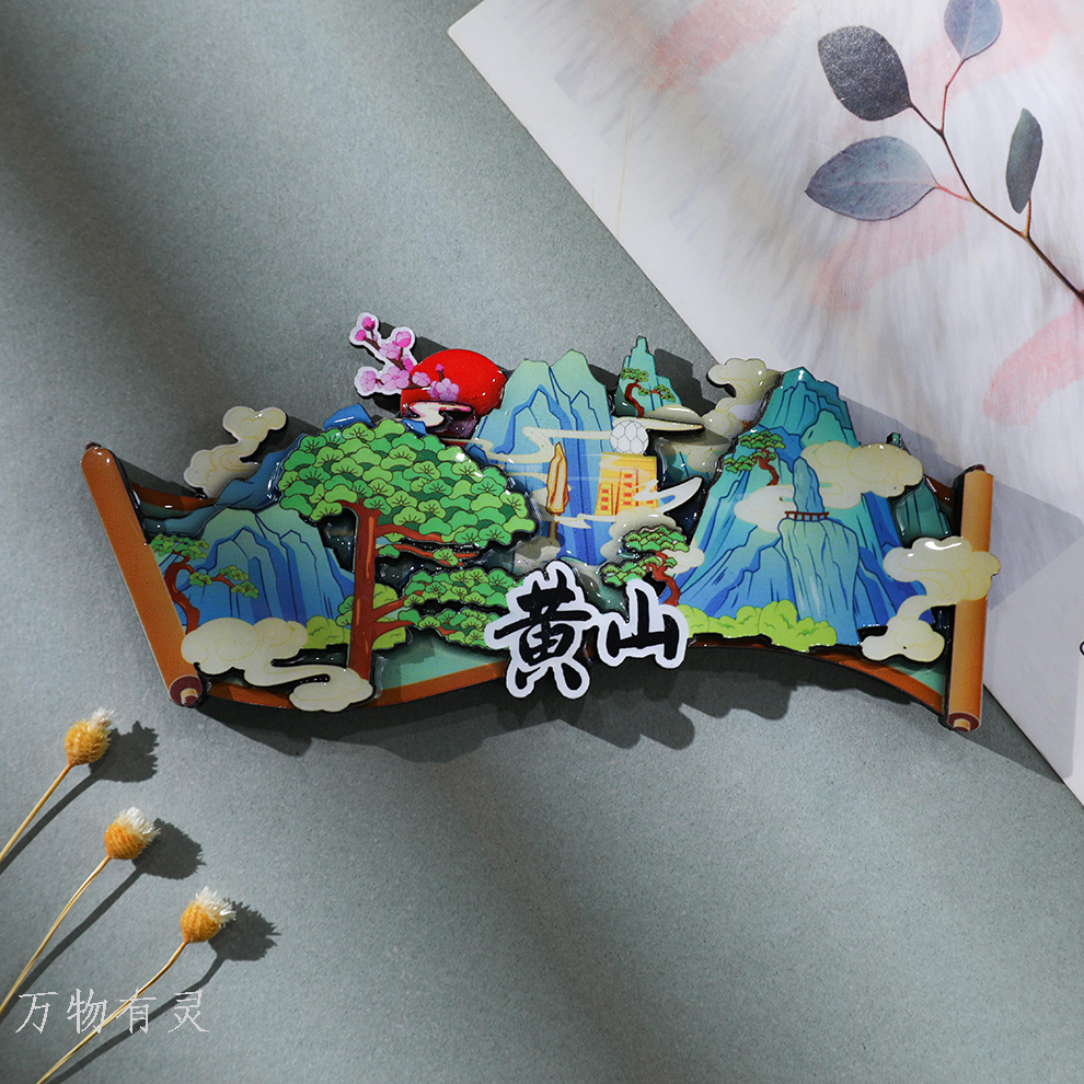 huangshan souvenir huangshan tourism cultural innovation wooden fridge magnet city welcome pine bright summit travel commemorative gift 中文版