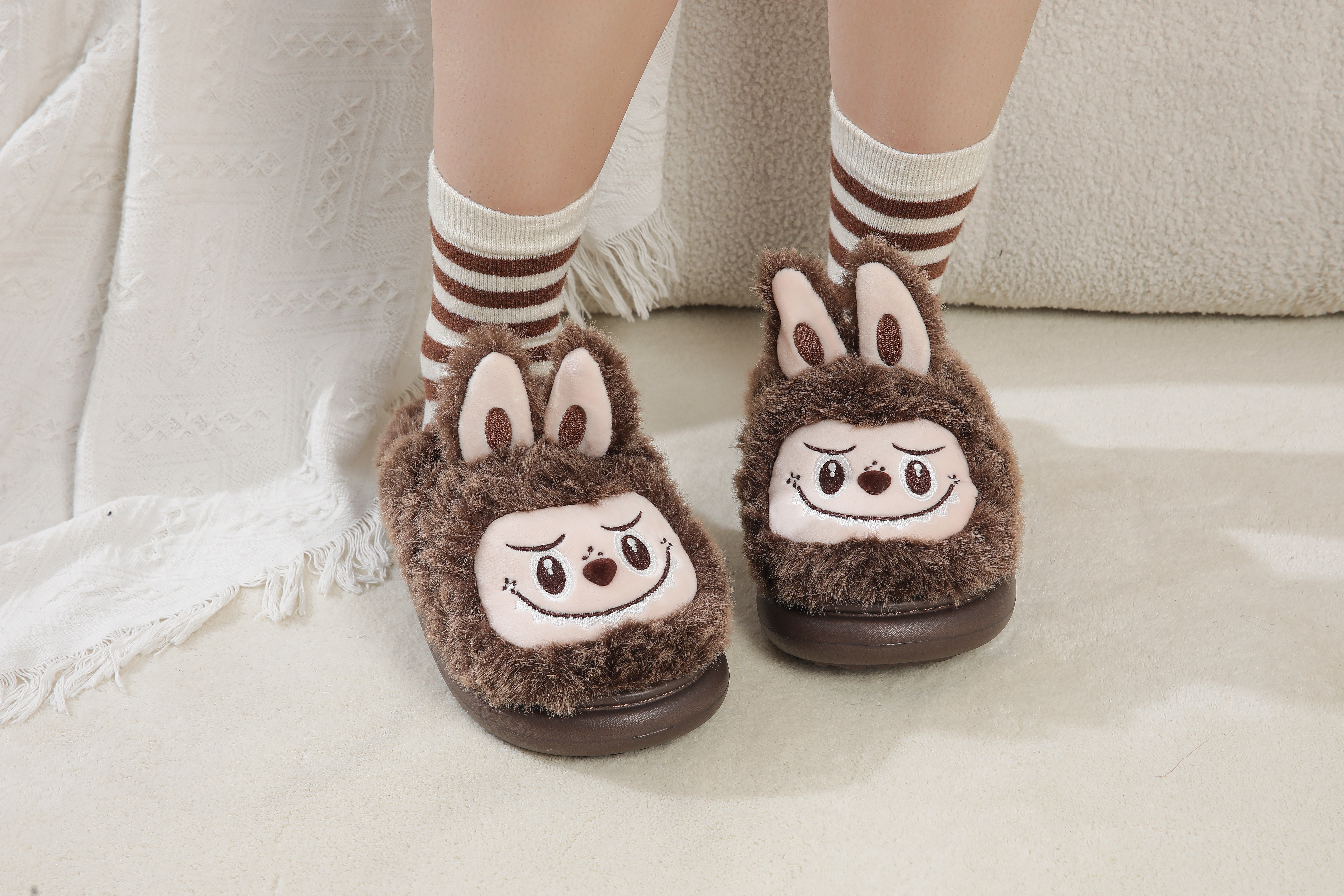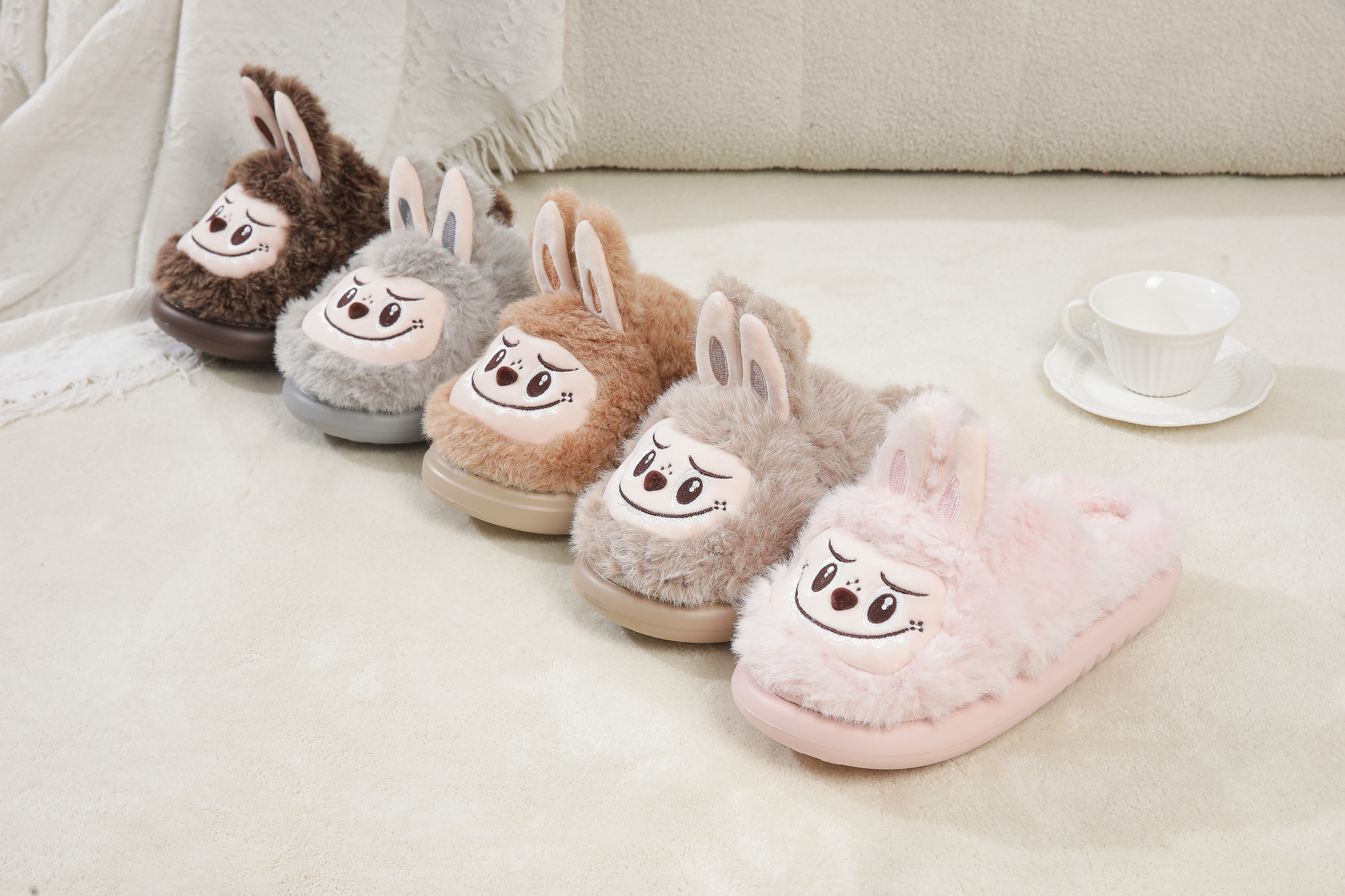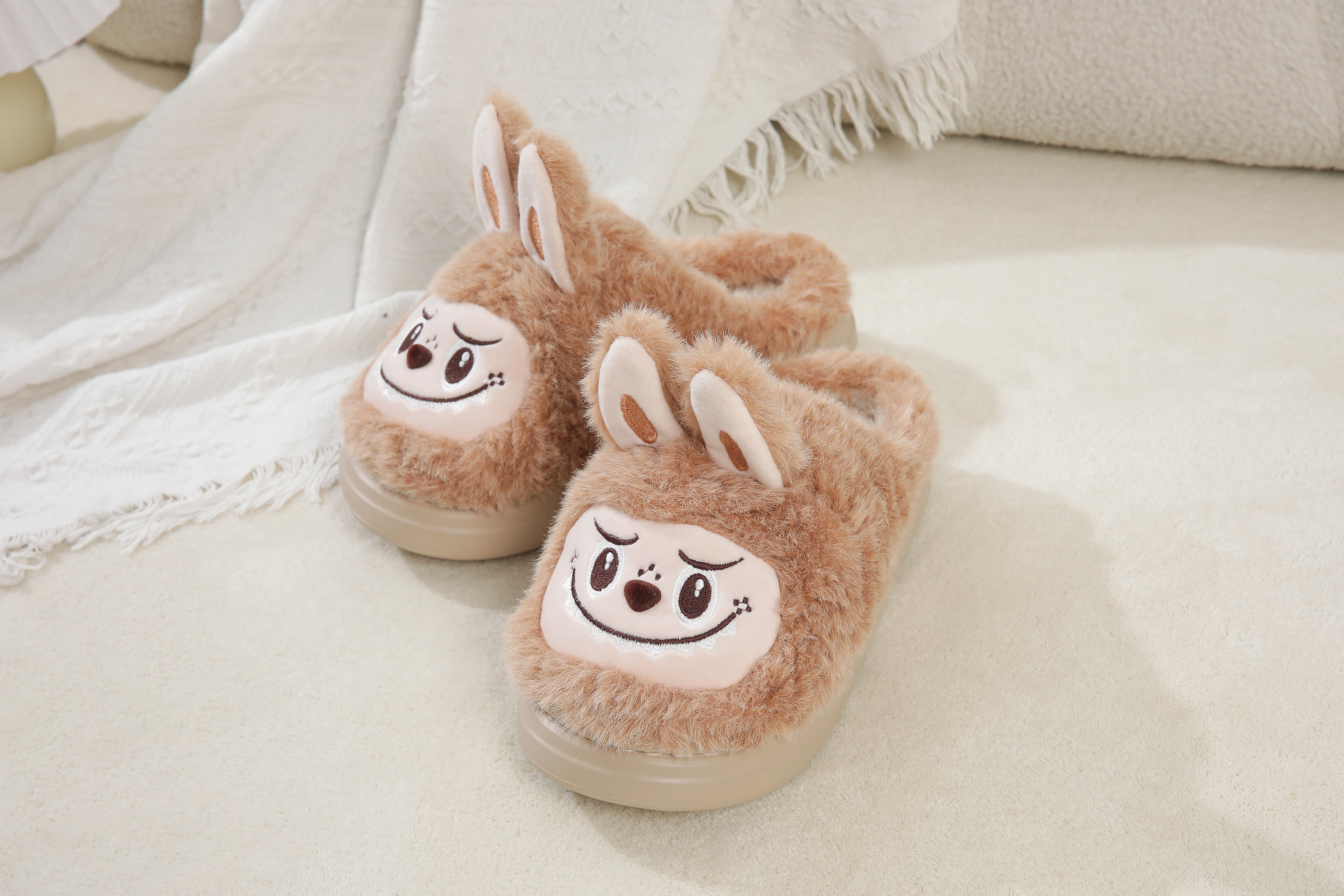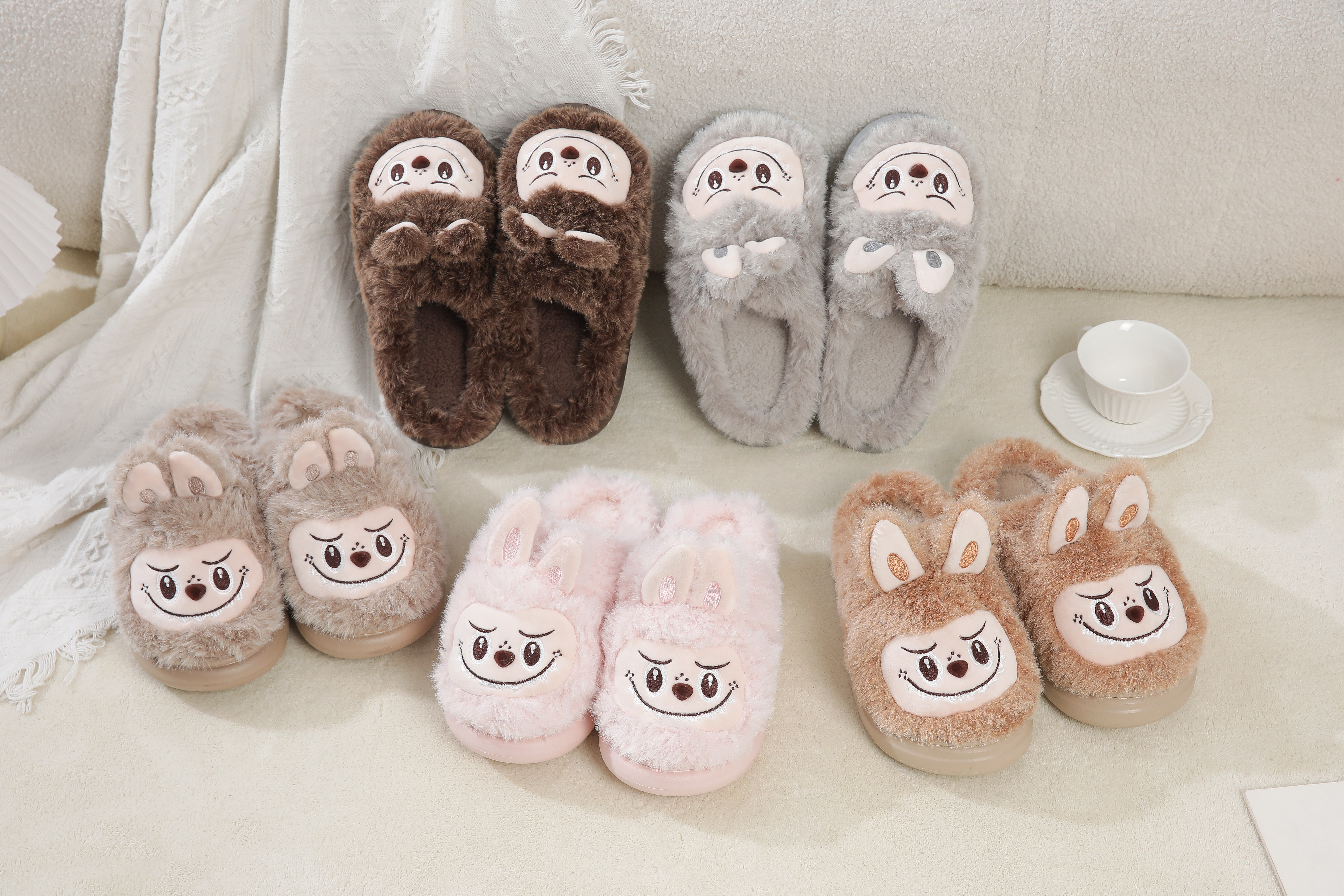 2025 winter new automobiles curtain cloth plush slippers cartoon popular ladies cotton slippers 中文版