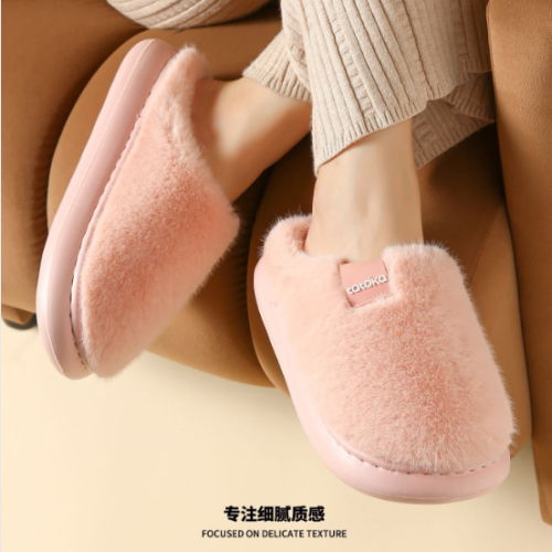 2025 winter new simple solid color plush couple slippers korean style fashion best-seller home ladies cotton slippers 中文版