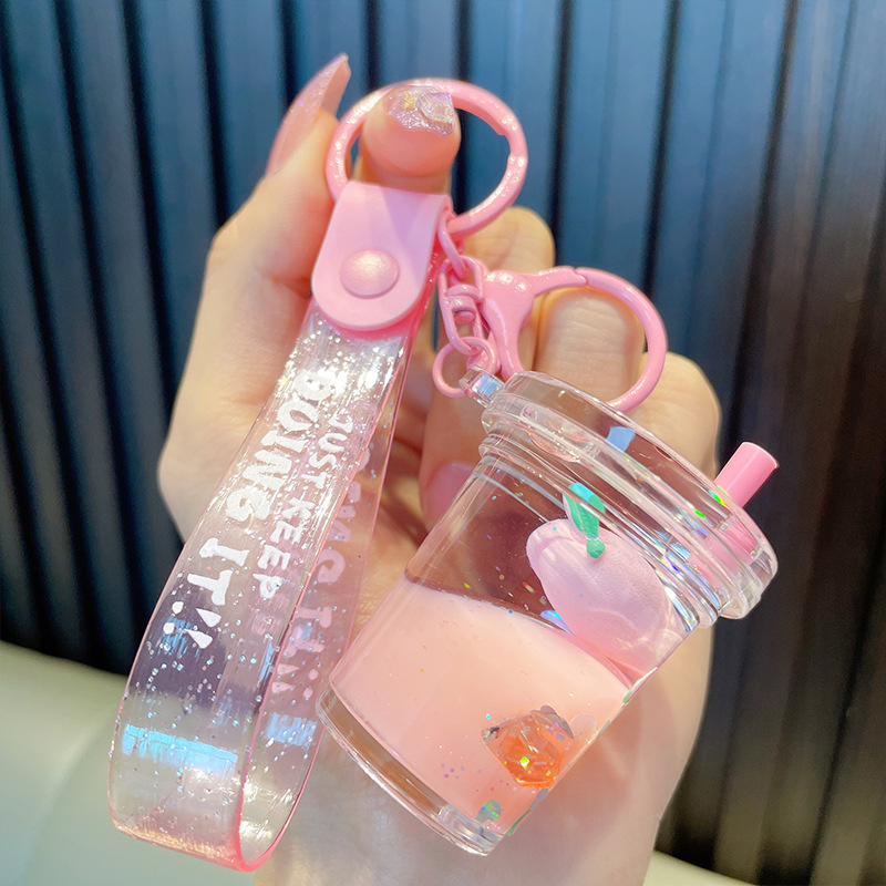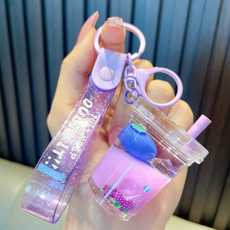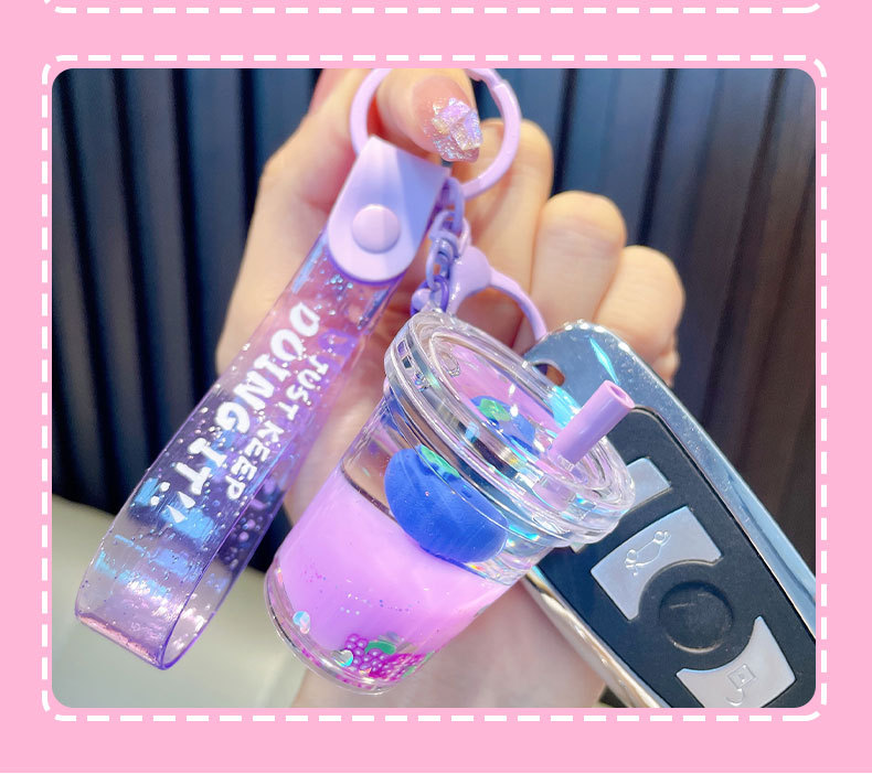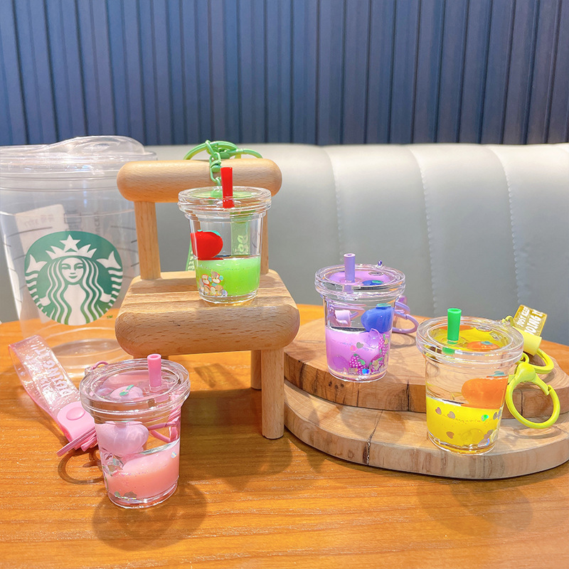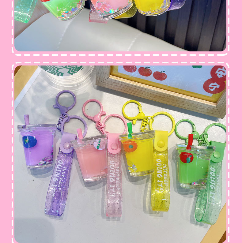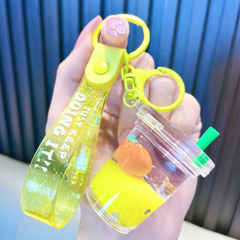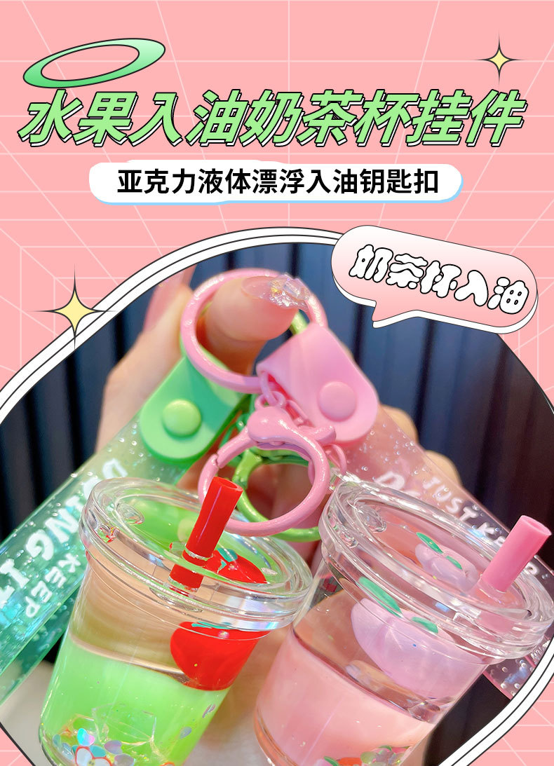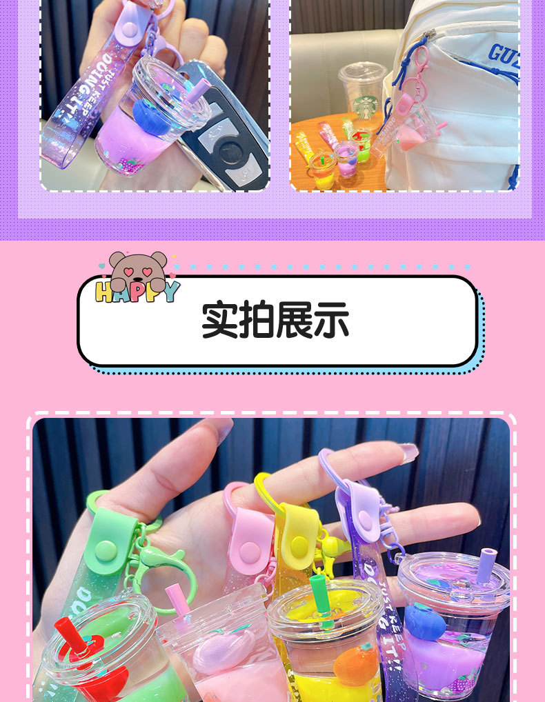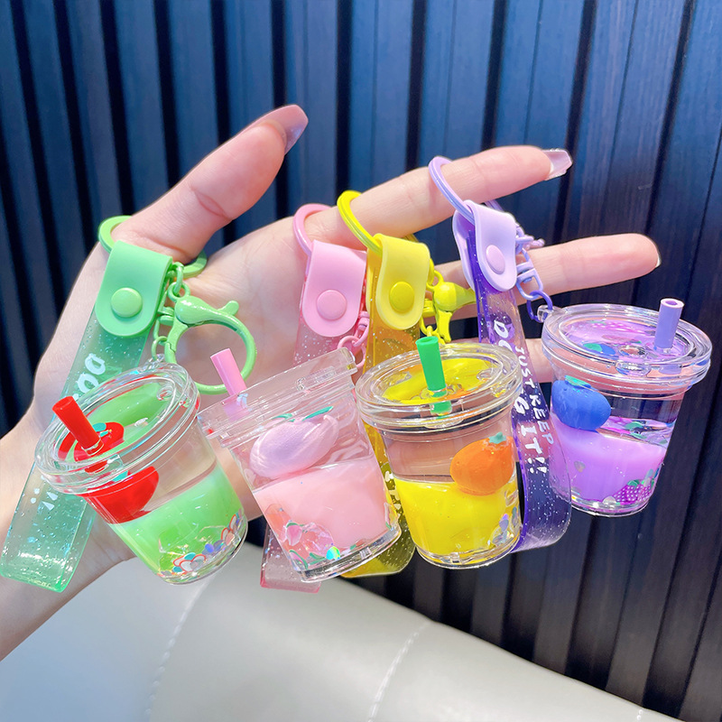 acrylic fruit milky tea cup keychain exquisite quicksand bottle backpack accessories car key chain small gift wholesale 中文版