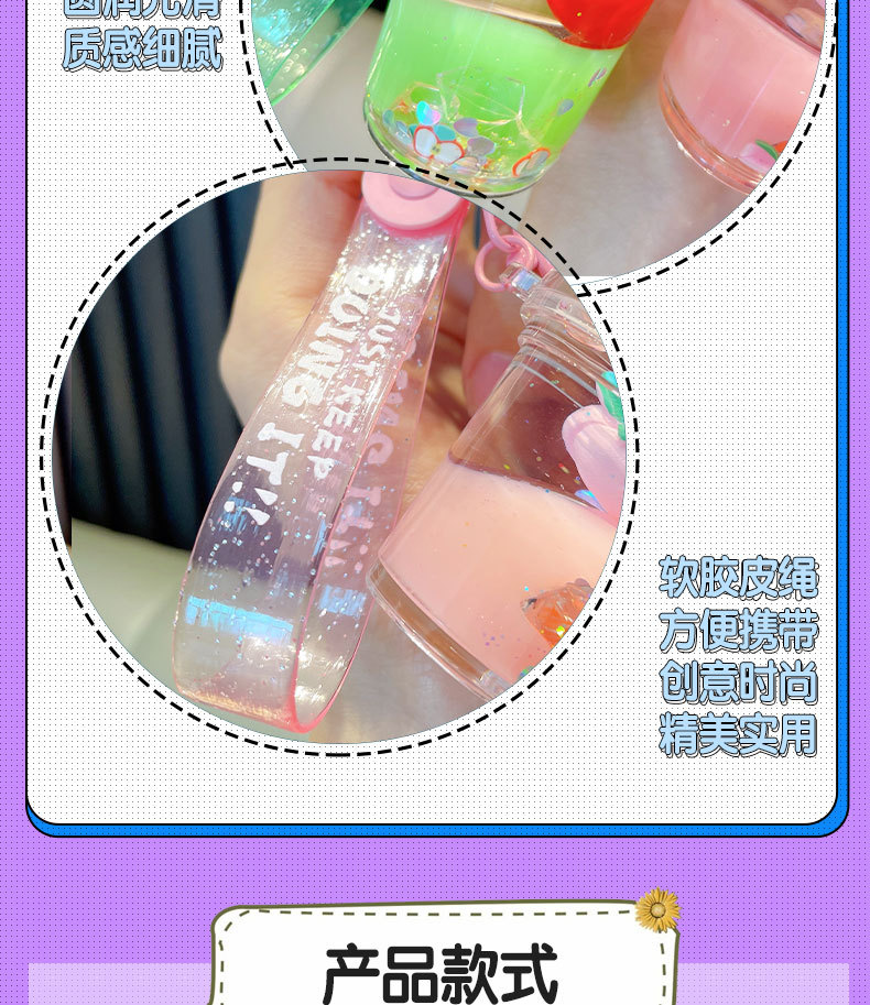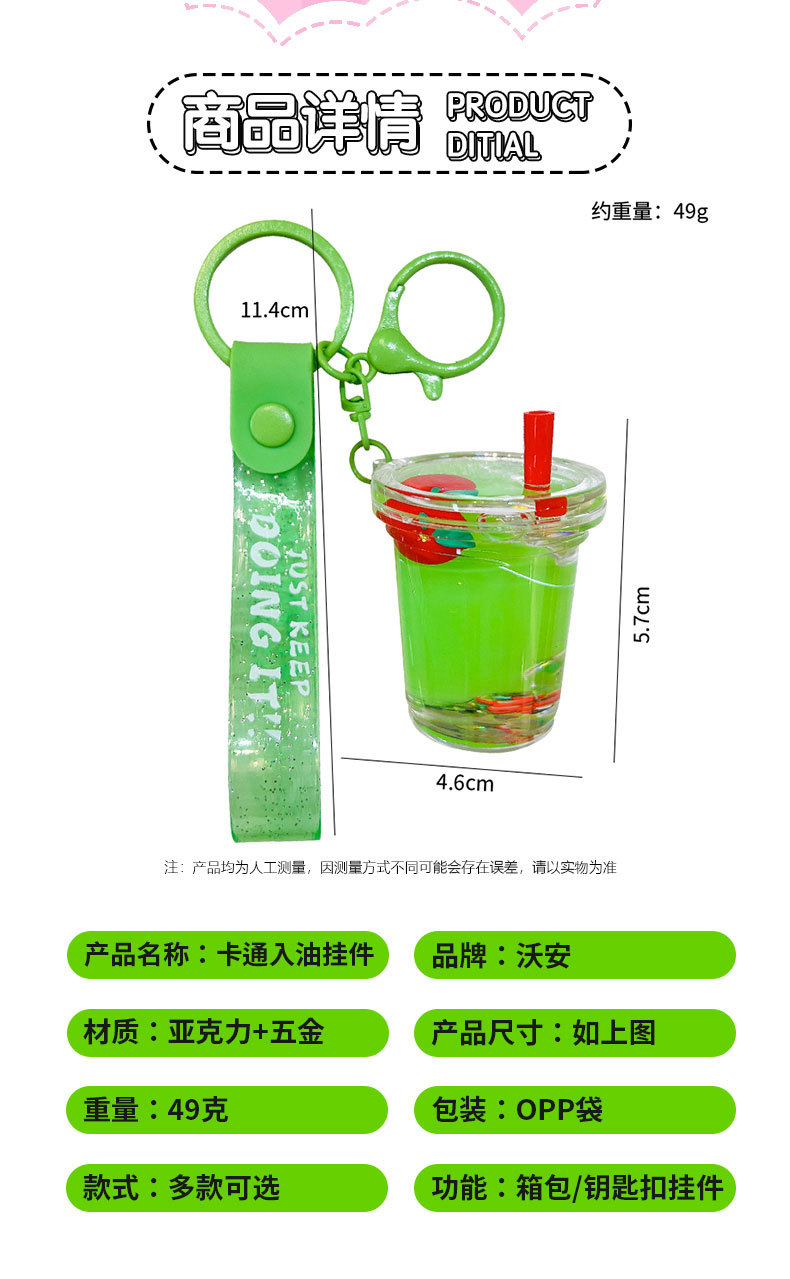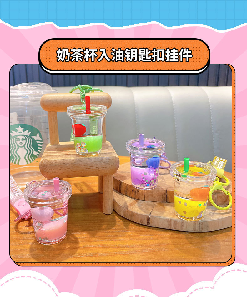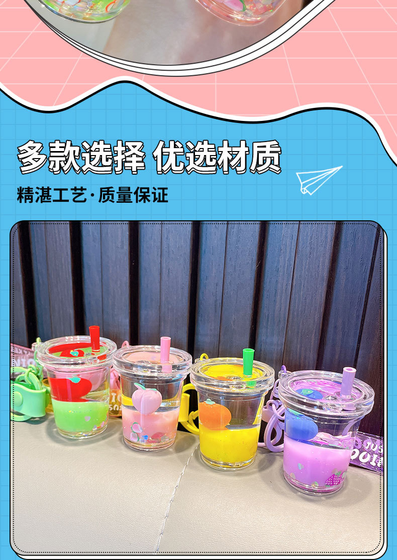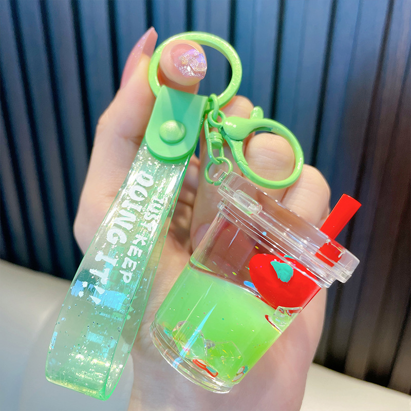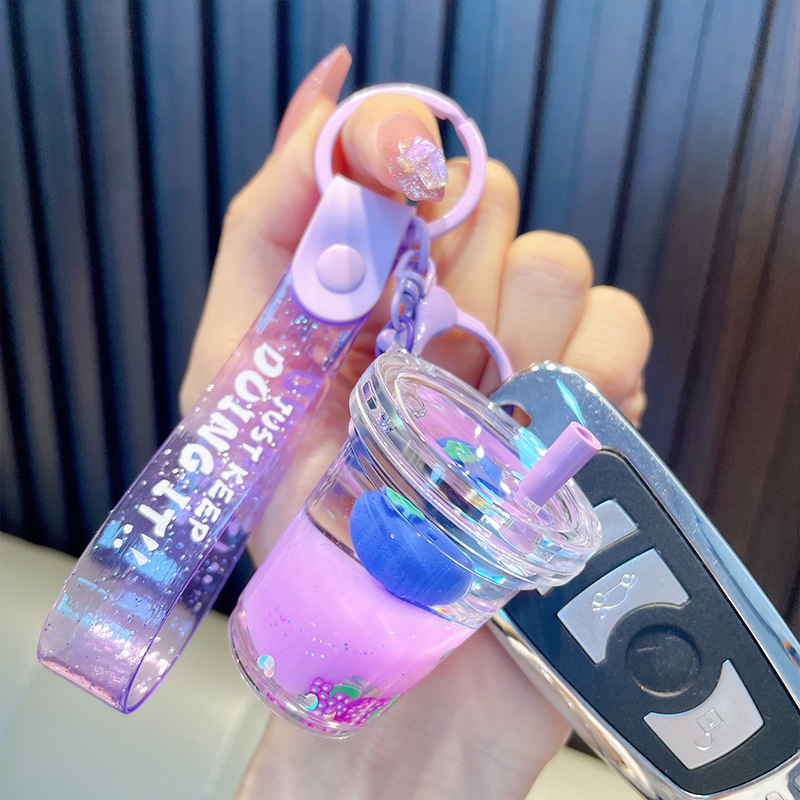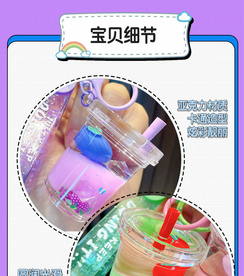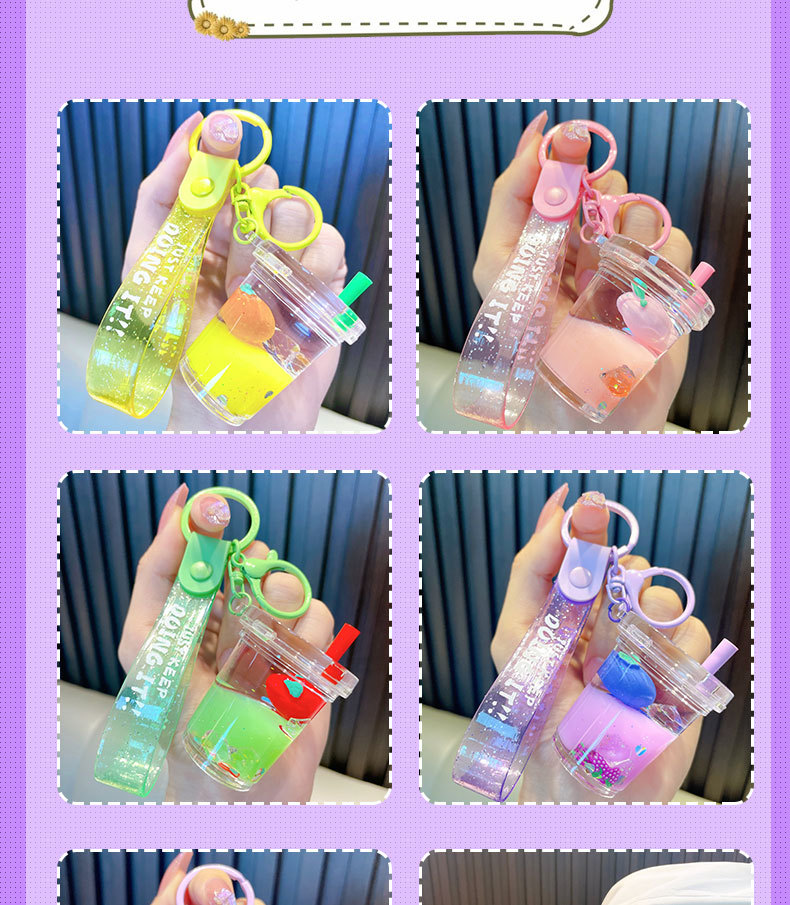 acrylic fruit milky tea cup keychain exquisite quicksand bottle backpack accessories car key chain small gift wholesale 中文版