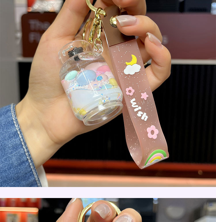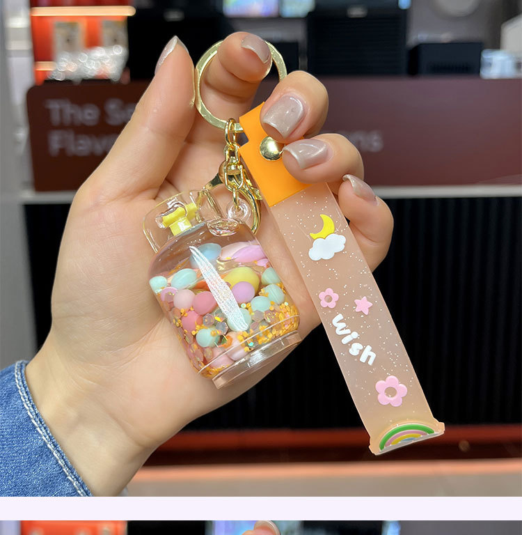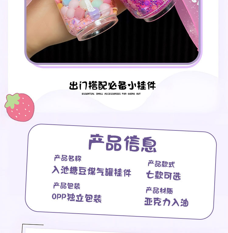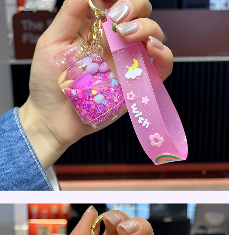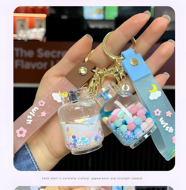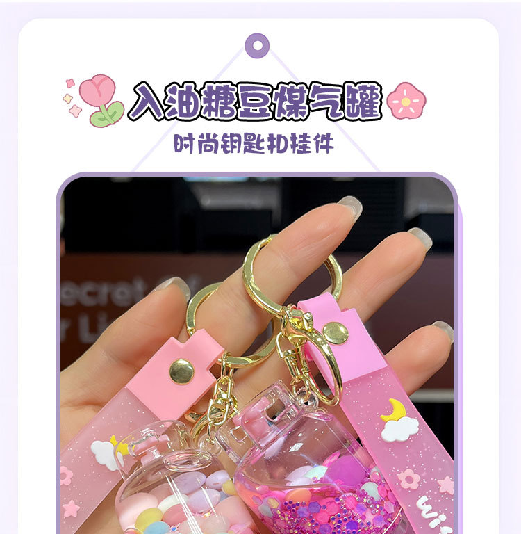 creative oil acrylic candy gas cylinder keychain cartoon quicksand bottle hanging piece pendant small gift wholesale 中文版