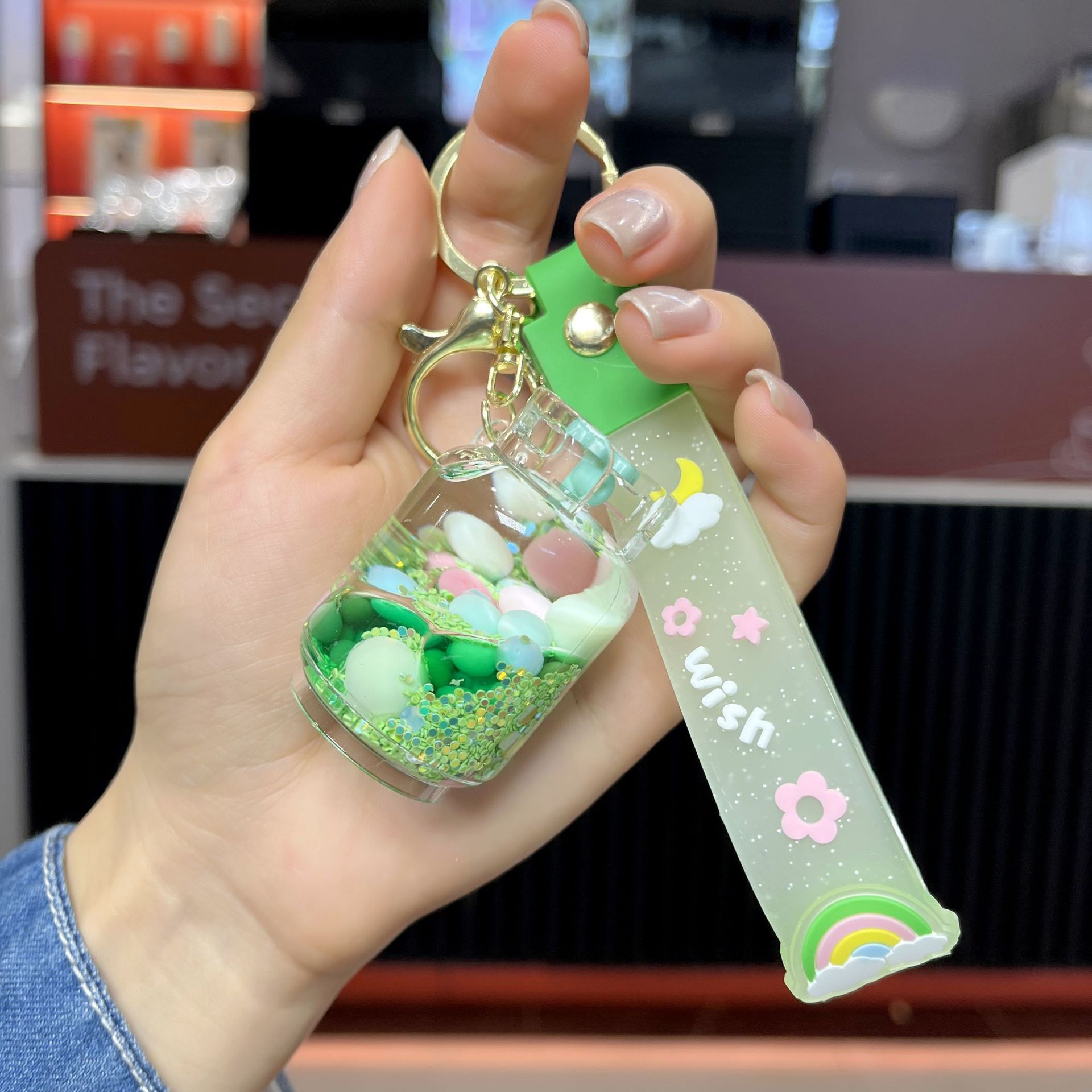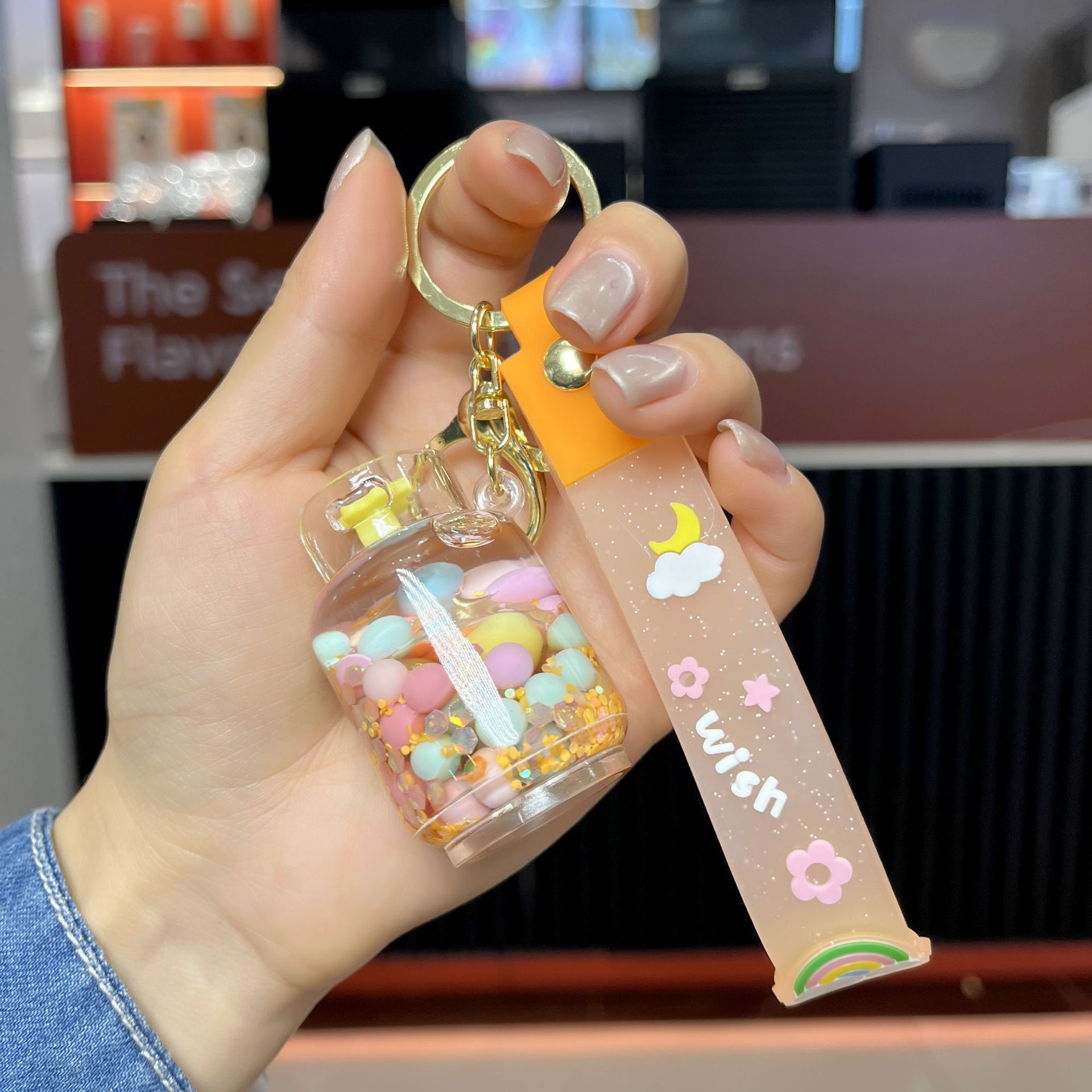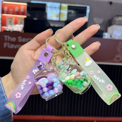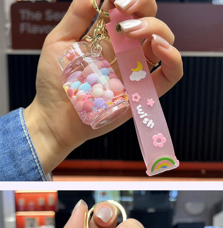 creative oil acrylic candy gas cylinder keychain cartoon quicksand bottle hanging piece pendant small gift wholesale 中文版