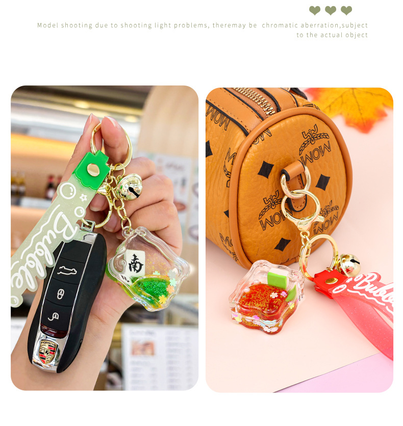 acrylic oil quicksand mahjong keychain pendant bag key ring pendants claw machine stall small gift wholesale 中文版