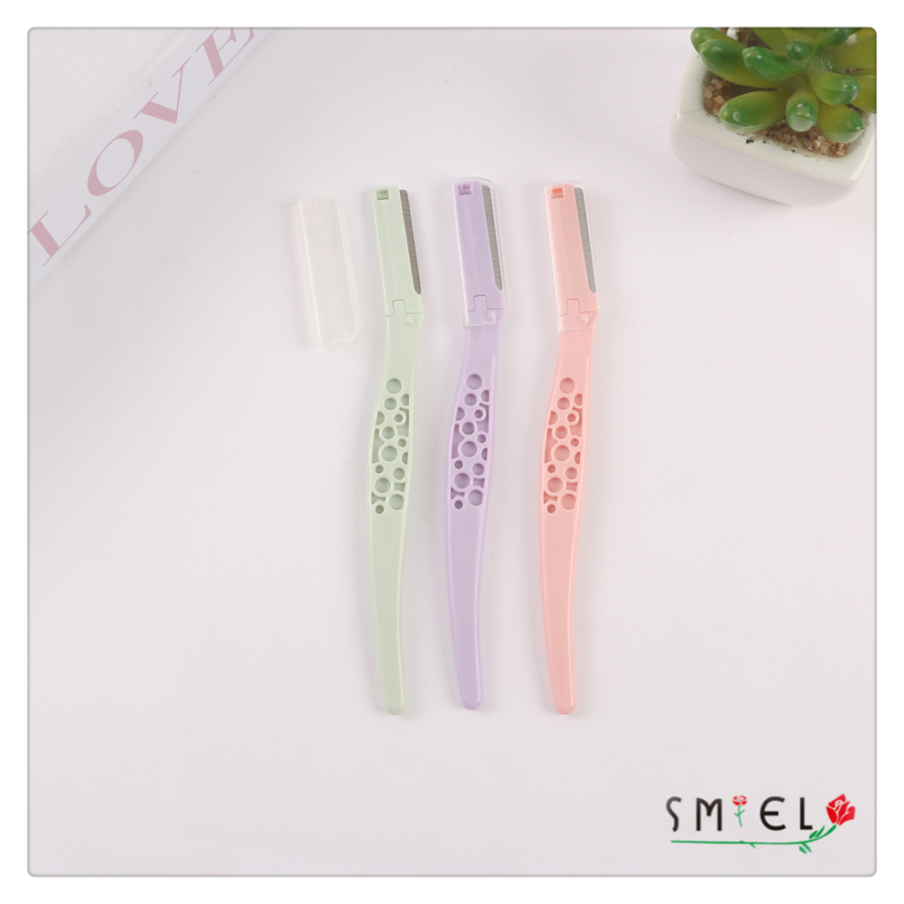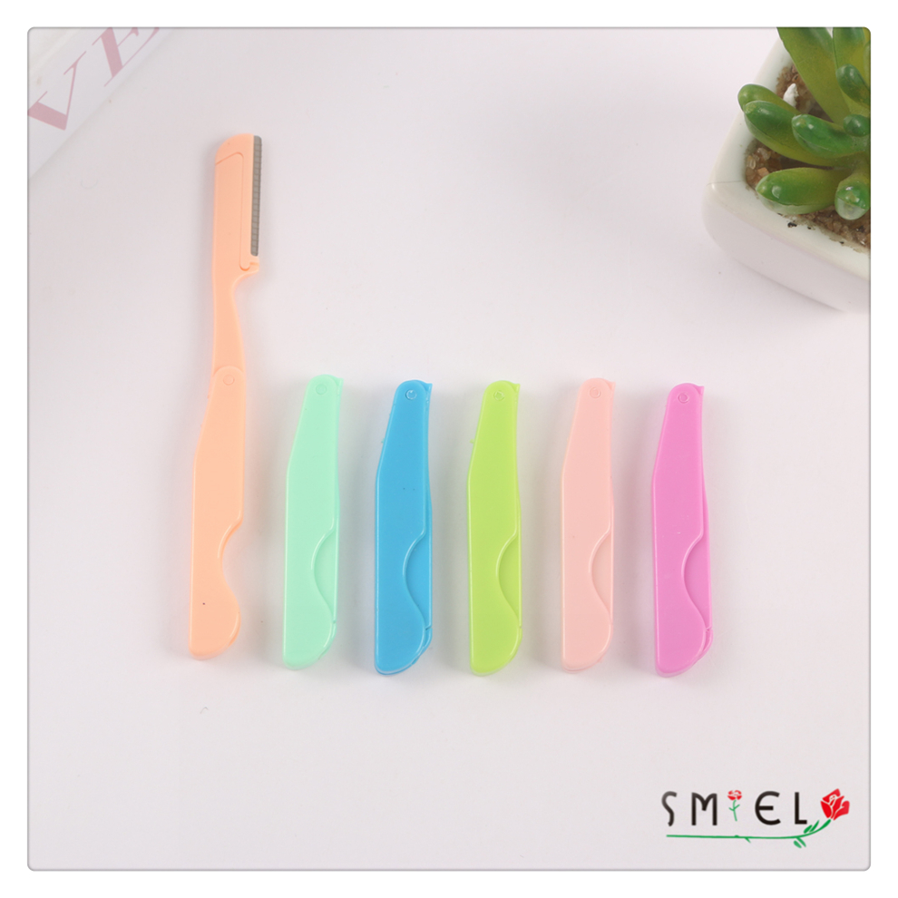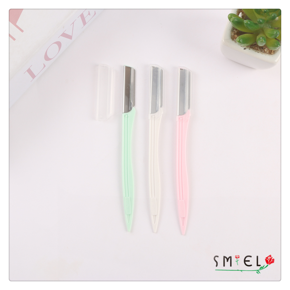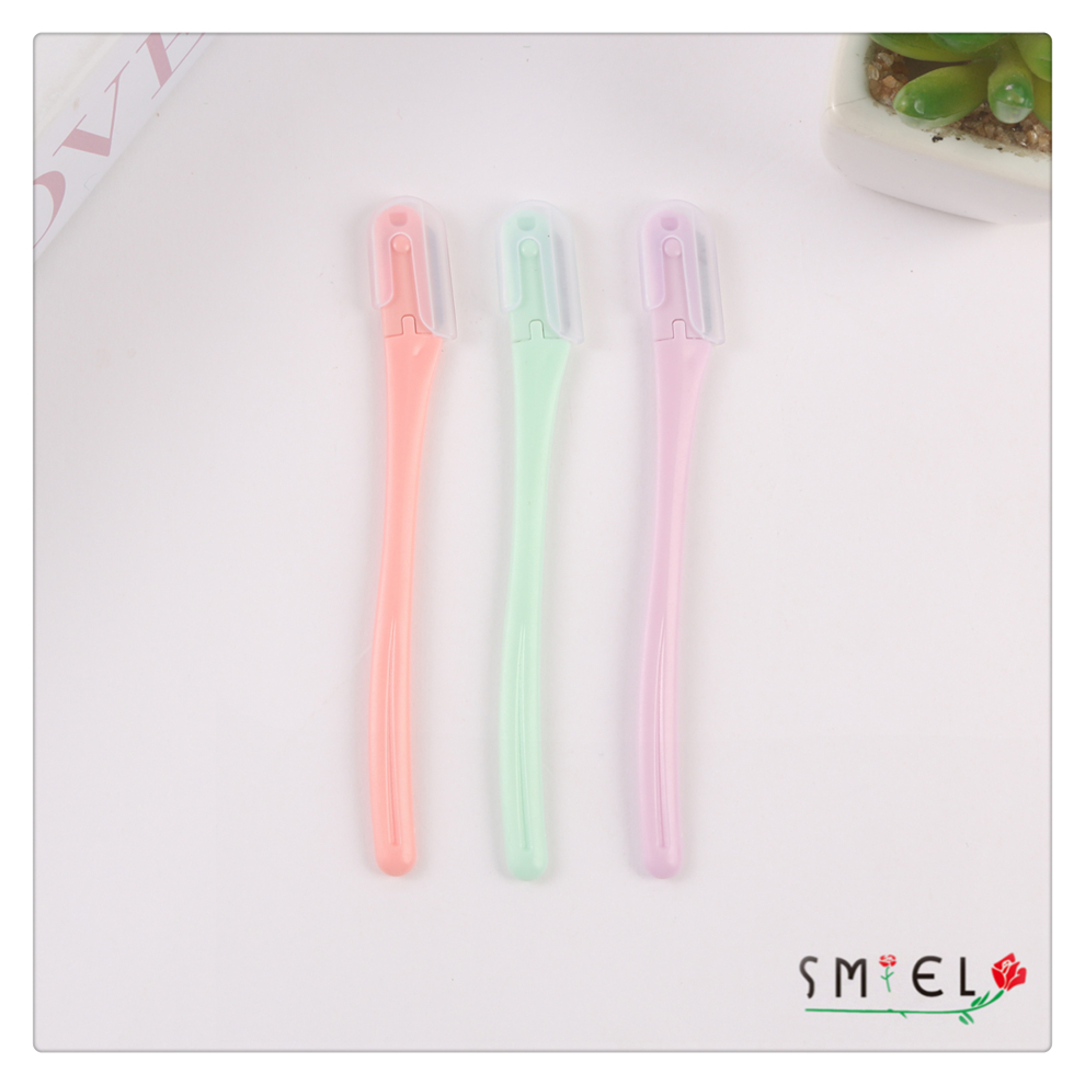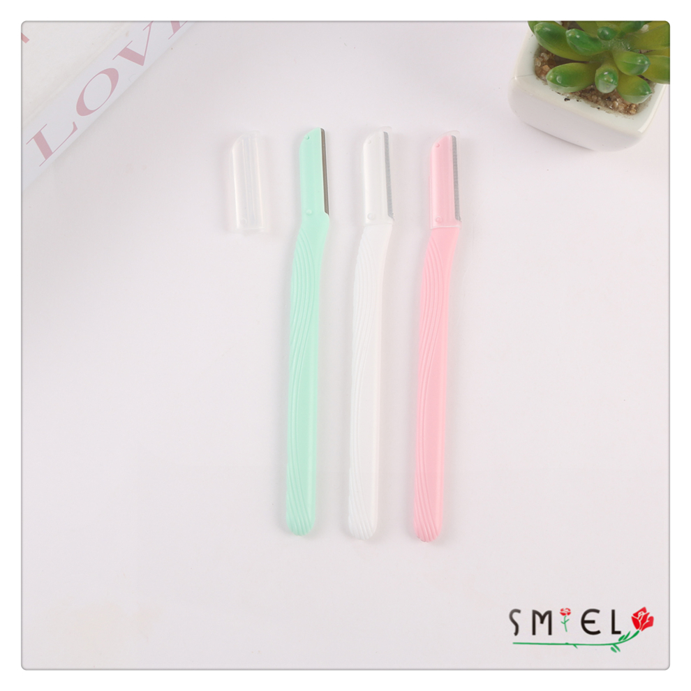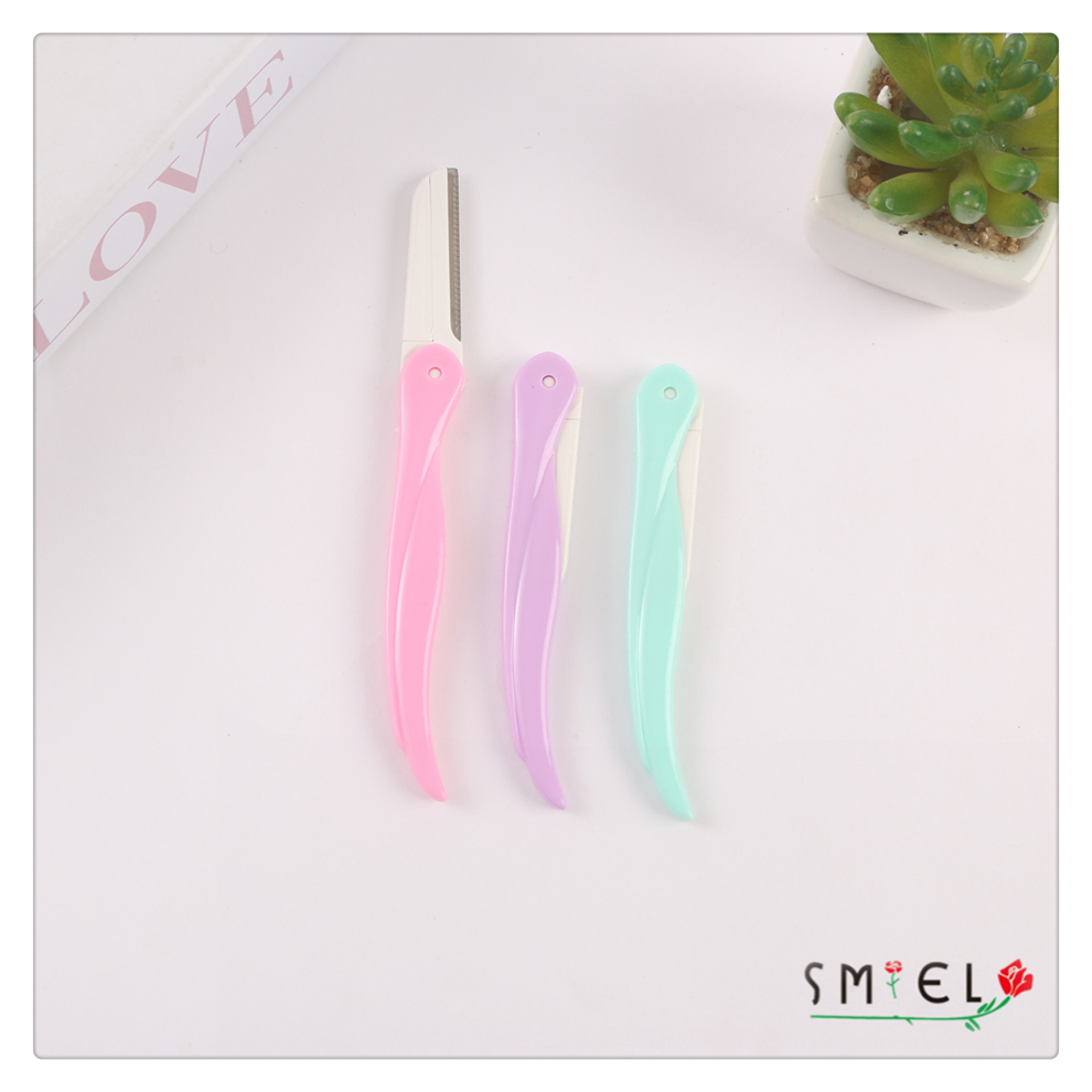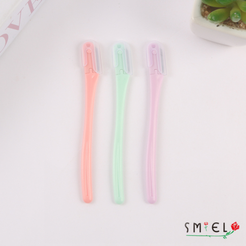 straight handle eye-brow knife women's plastic handle stainless steel eyebrow scraper portable eyebrow shaping tool with various colors 中文版