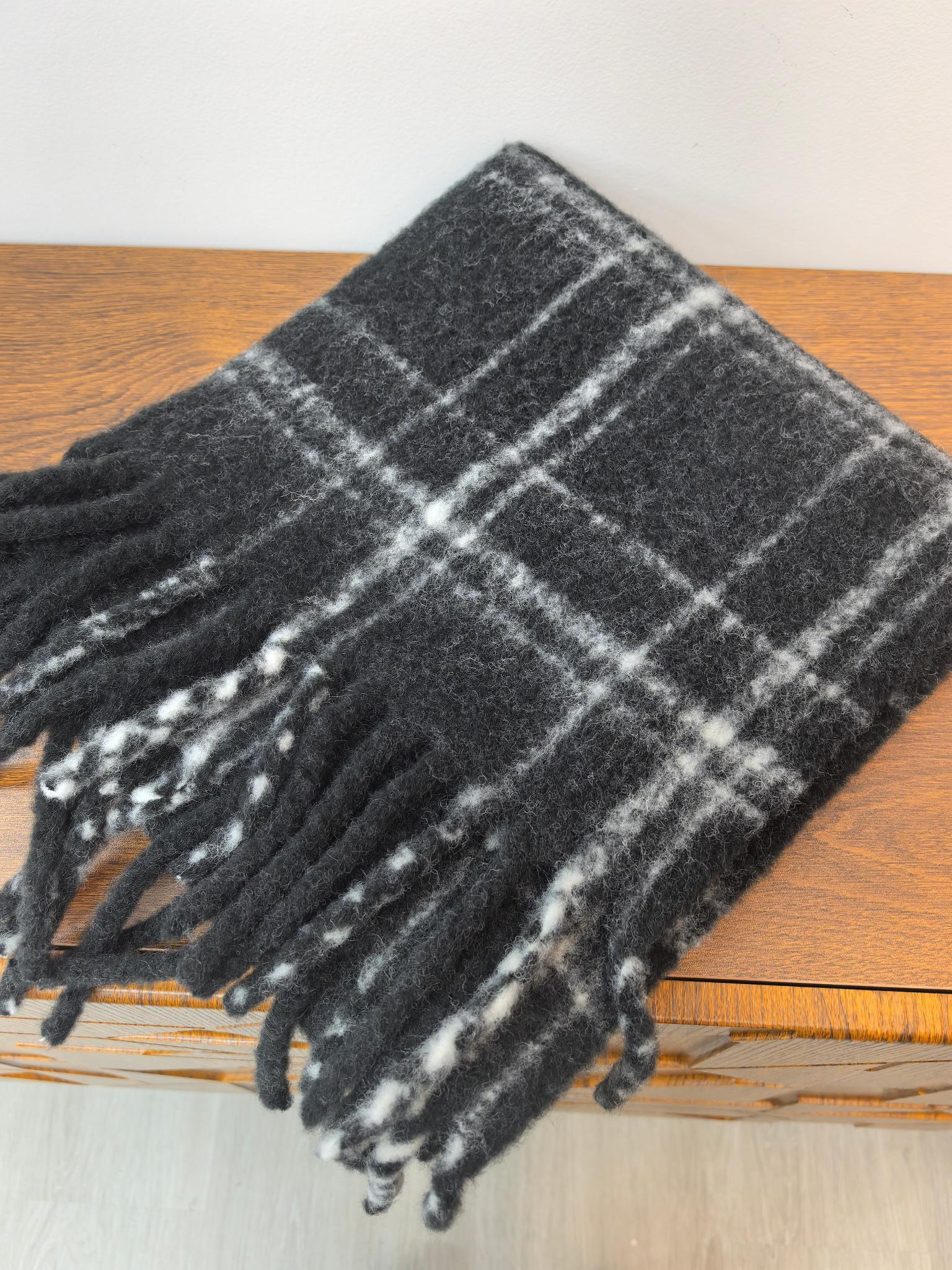 New model, in stock, classic wool fine-thread check, material: wool blend, size 30*185, item number: 08200360
