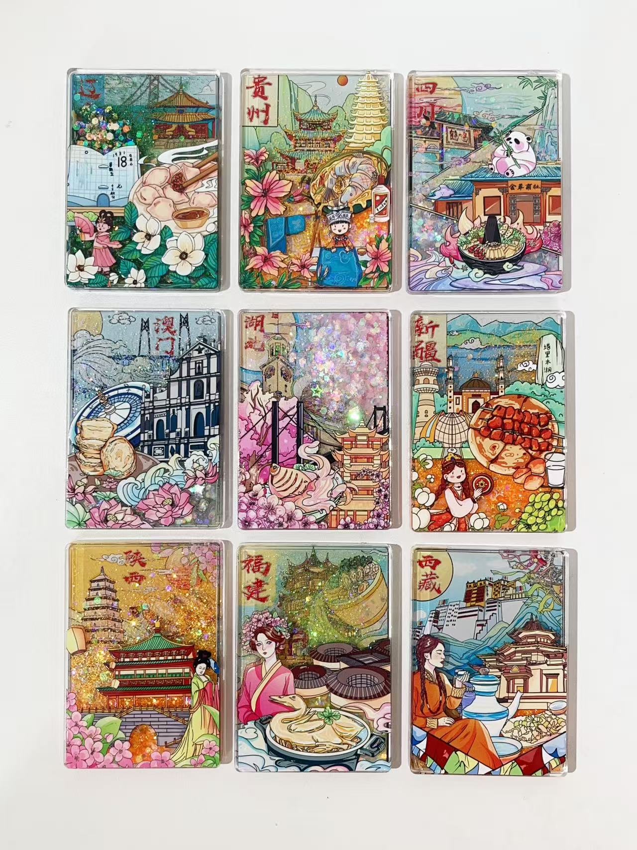 Local attractions fridge magnets flow sand series