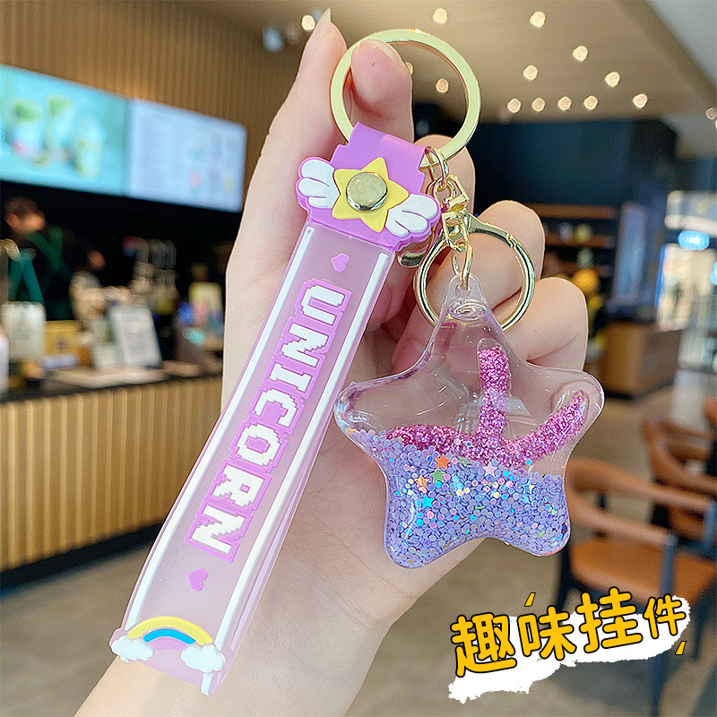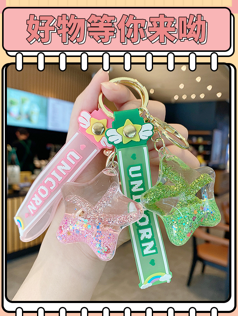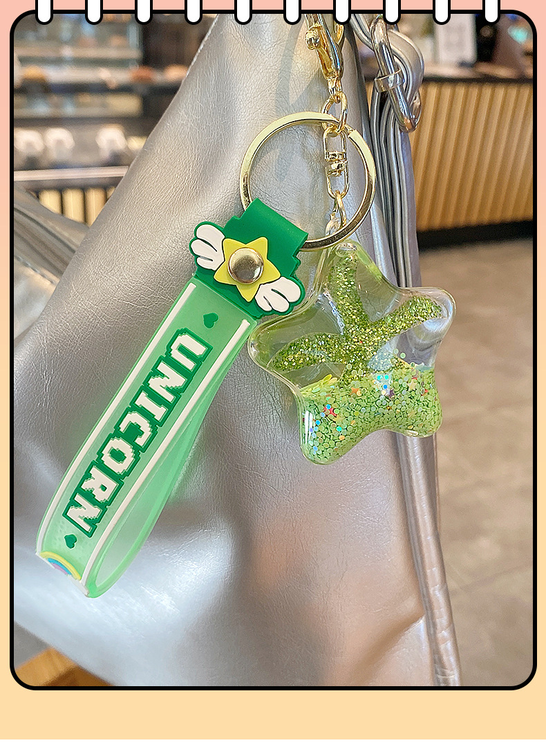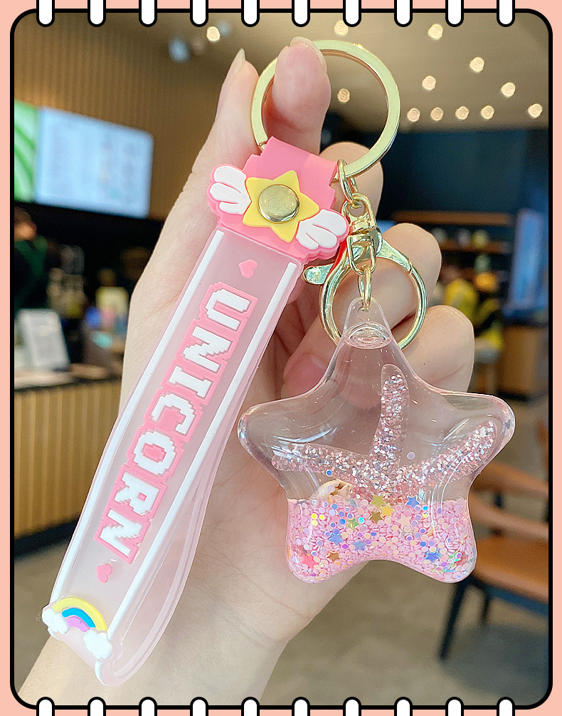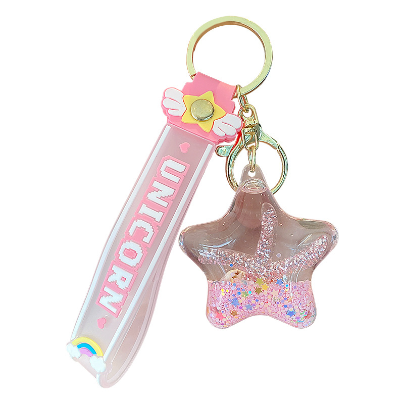 starfish oil quicksand bottle keychain female exquisite pendant children student schoolbag pendant cute floating key chain 中文版