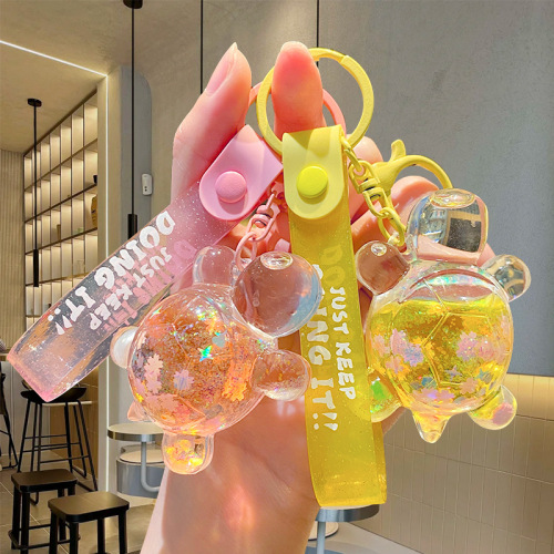 turtle oil quicksand floating bottle keychain schoolbag pendant accessories small jewelry vehicle key chain small gift wholesale 中文版
