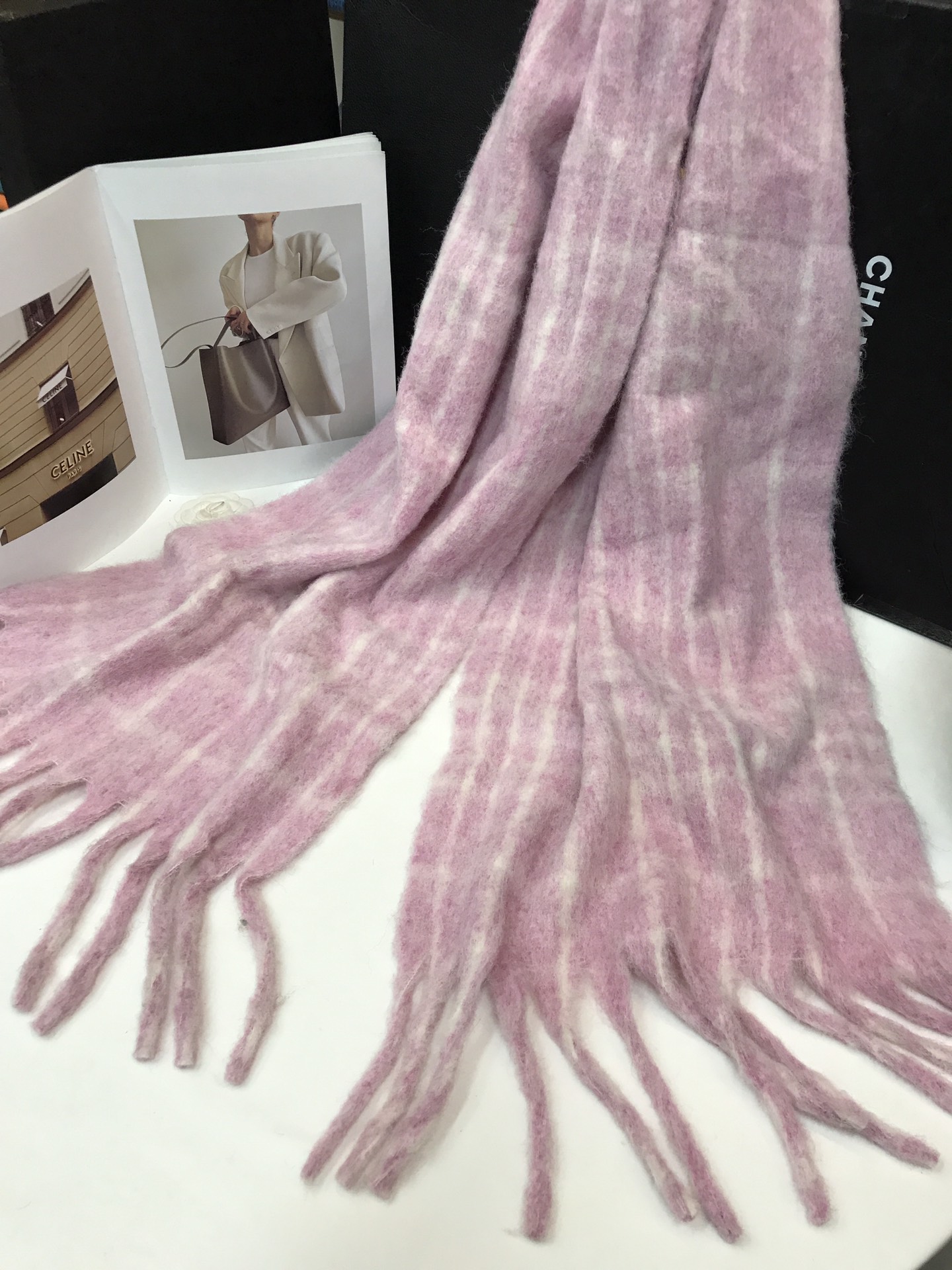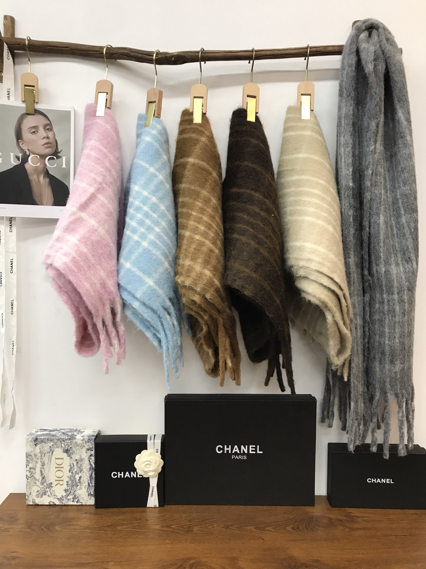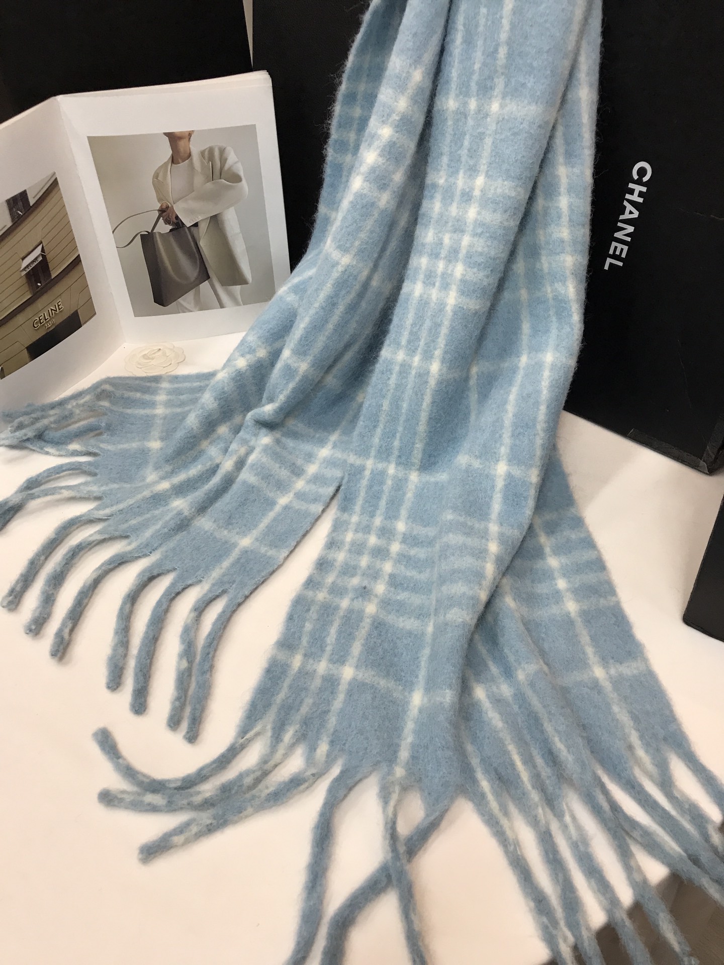 In stock, floral wool check, material: wool blend about 15% wool, size: 45*180, weight: 260 grams, item number: 81175350