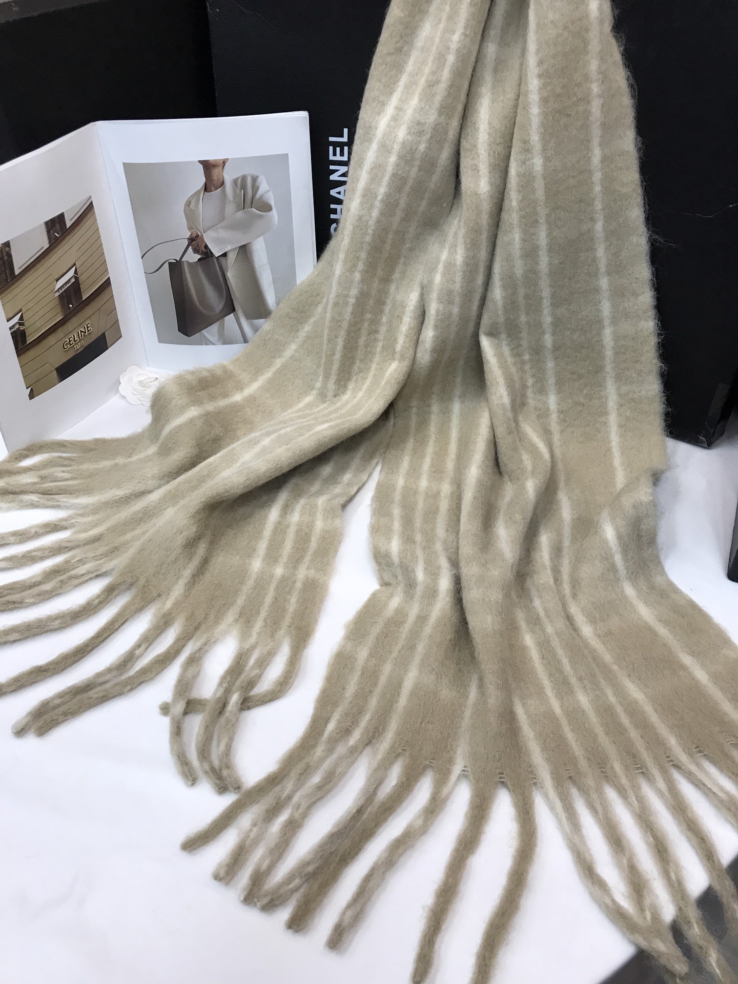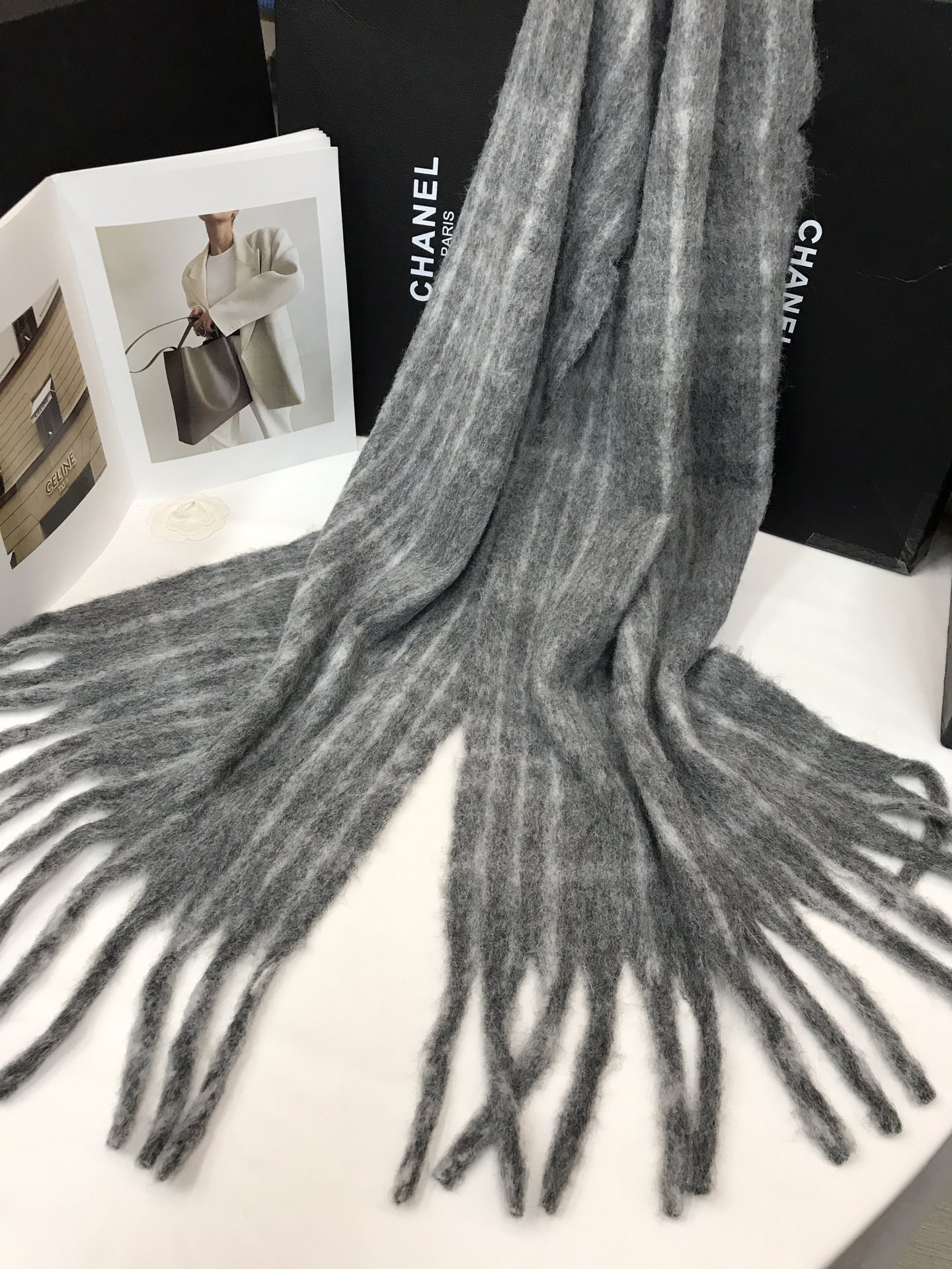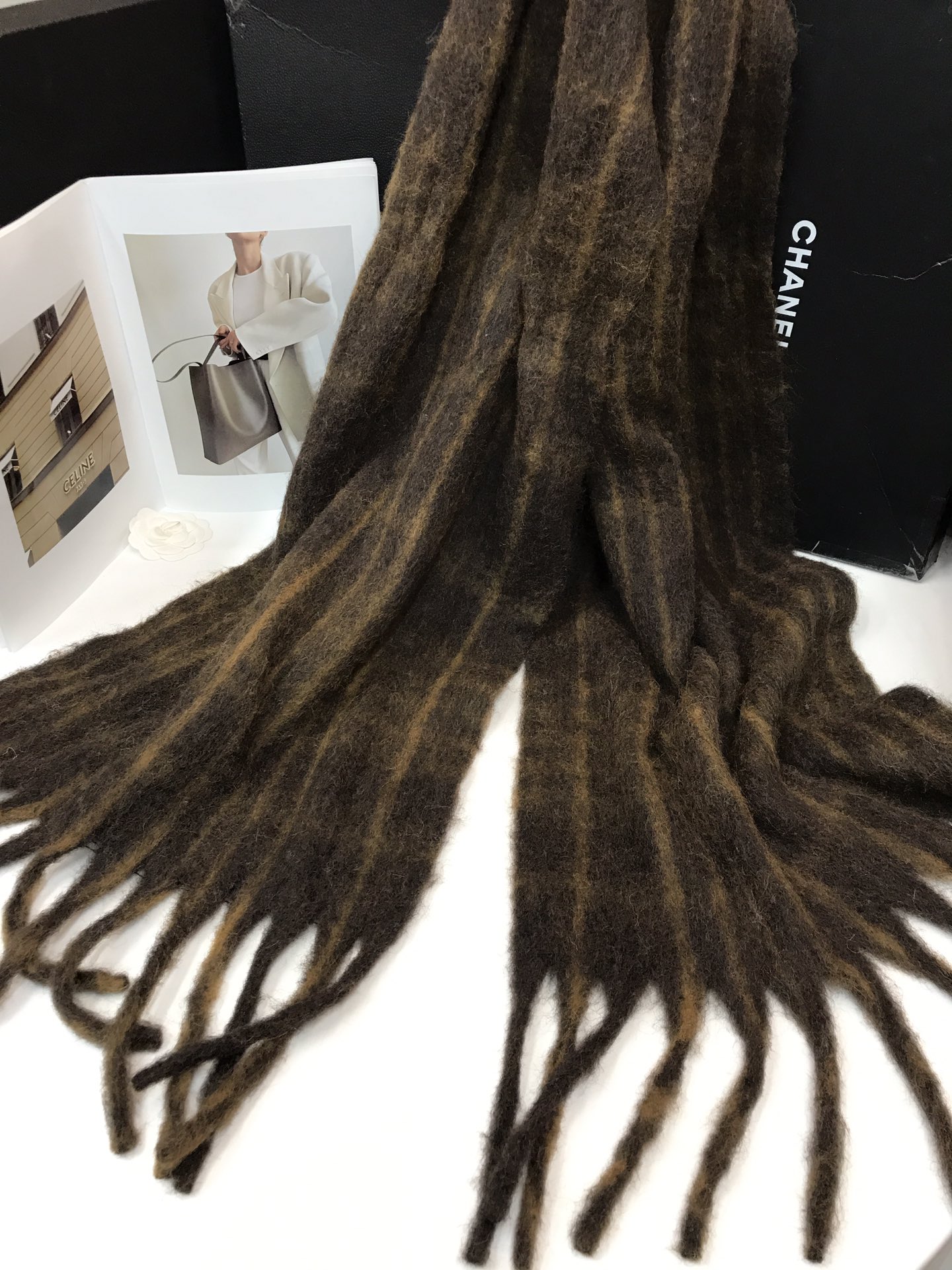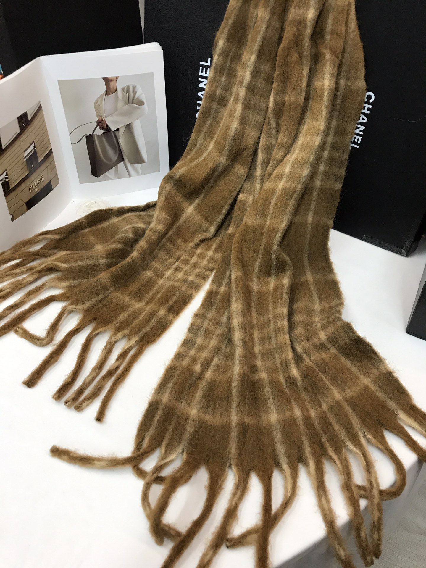 In stock, floral wool check, material: wool blend about 15% wool, size: 45*180, weight: 260 grams, item number: 81175350