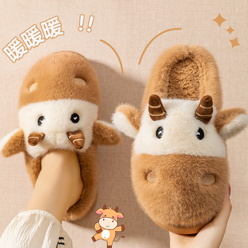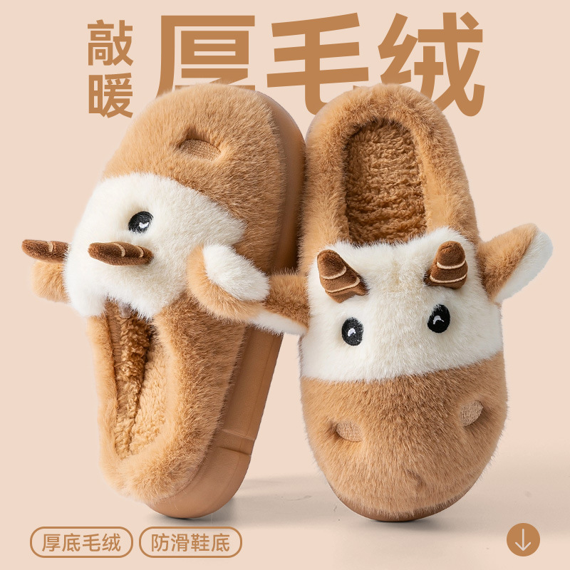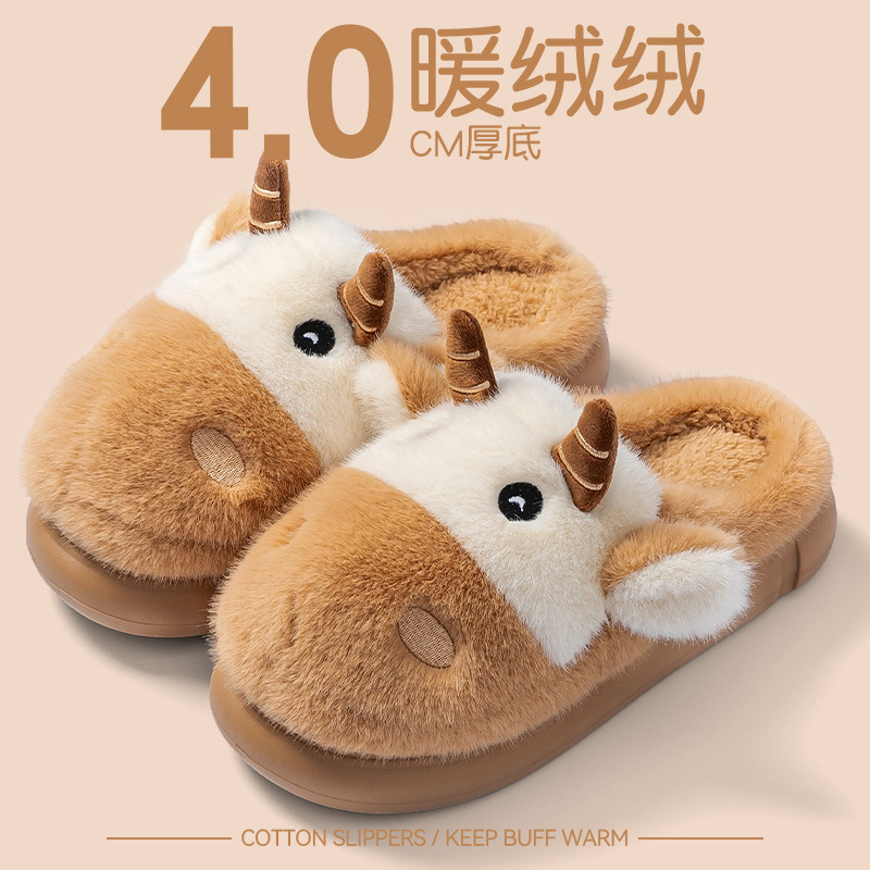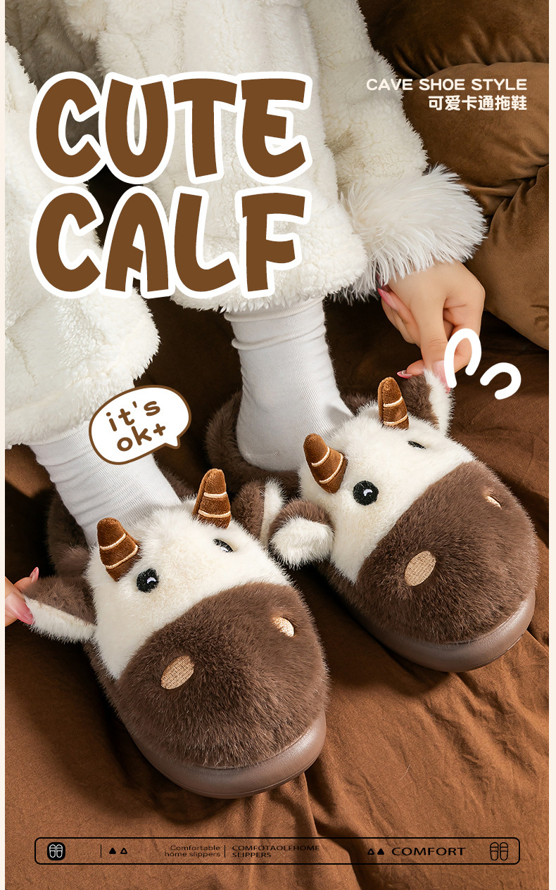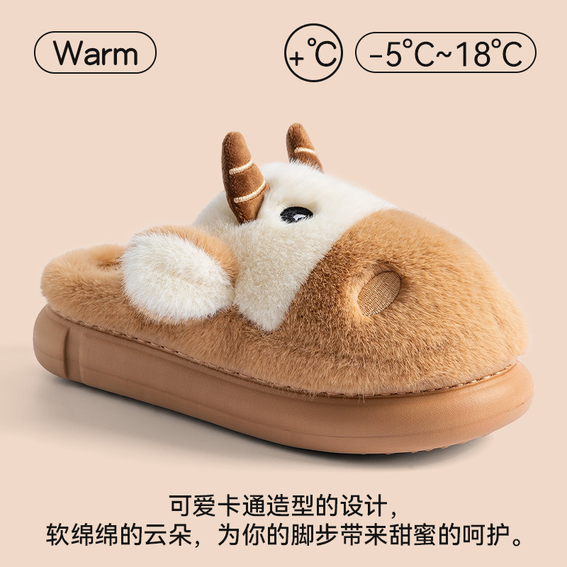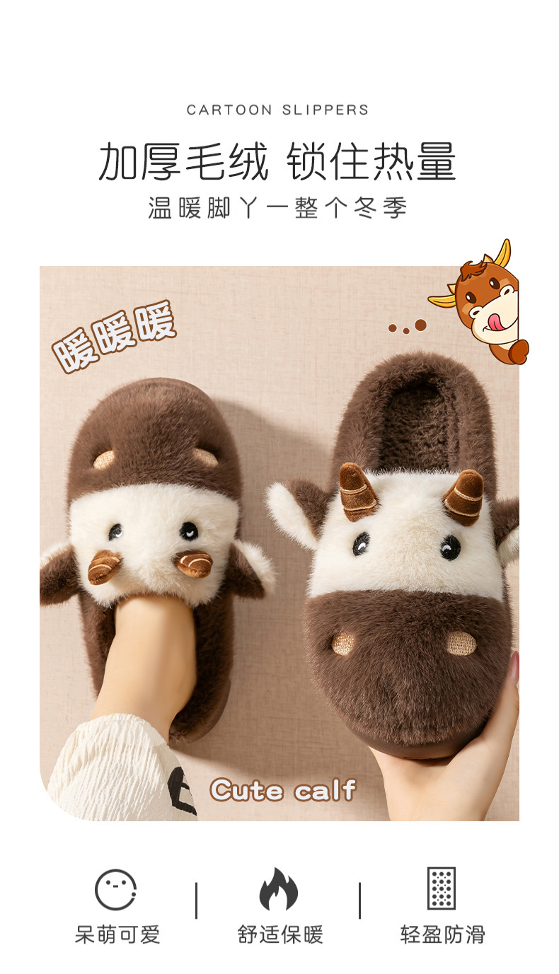cute cartoon calf cotton slippers female couple 2025 new indoor home plush autumn and winter cotton slippers cotton slippers winter male 中文版