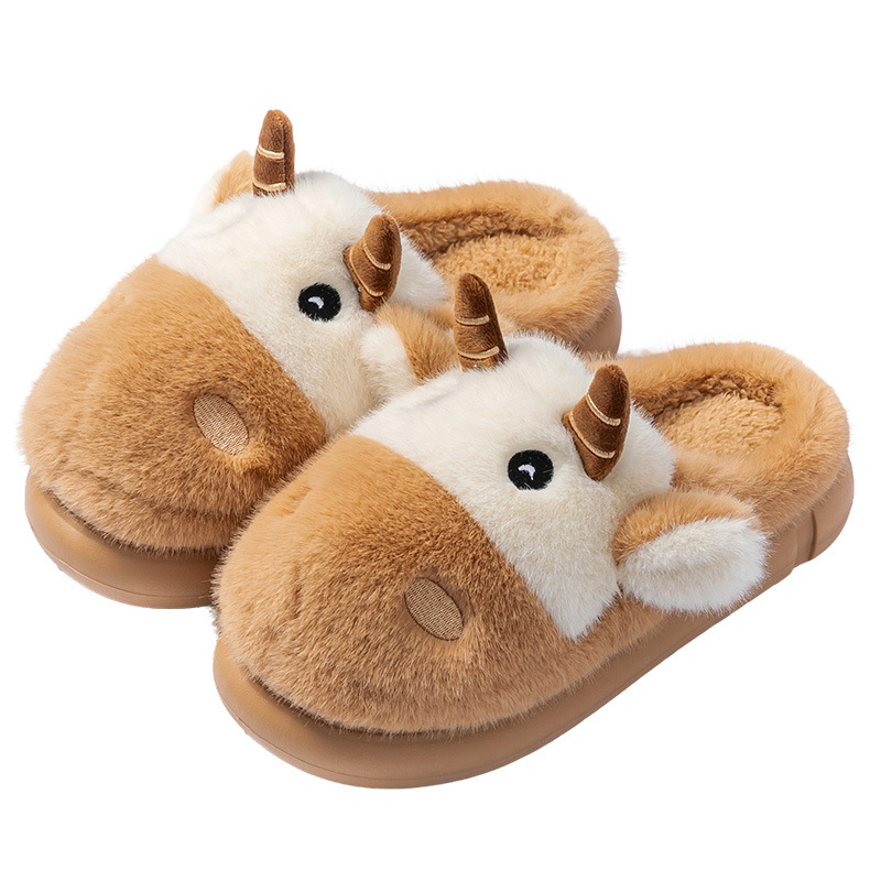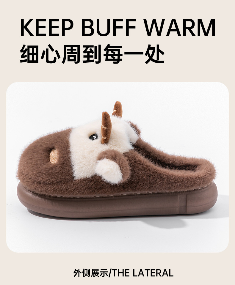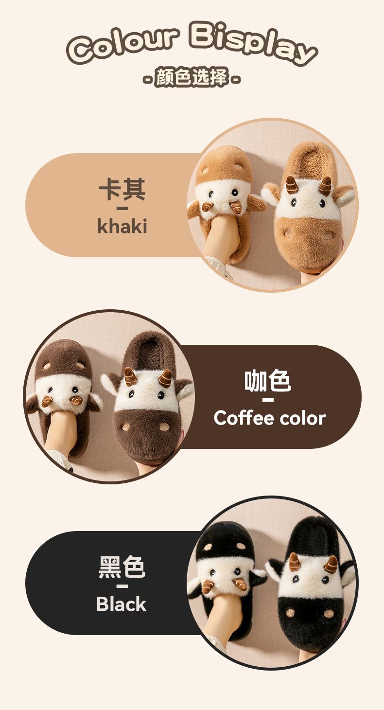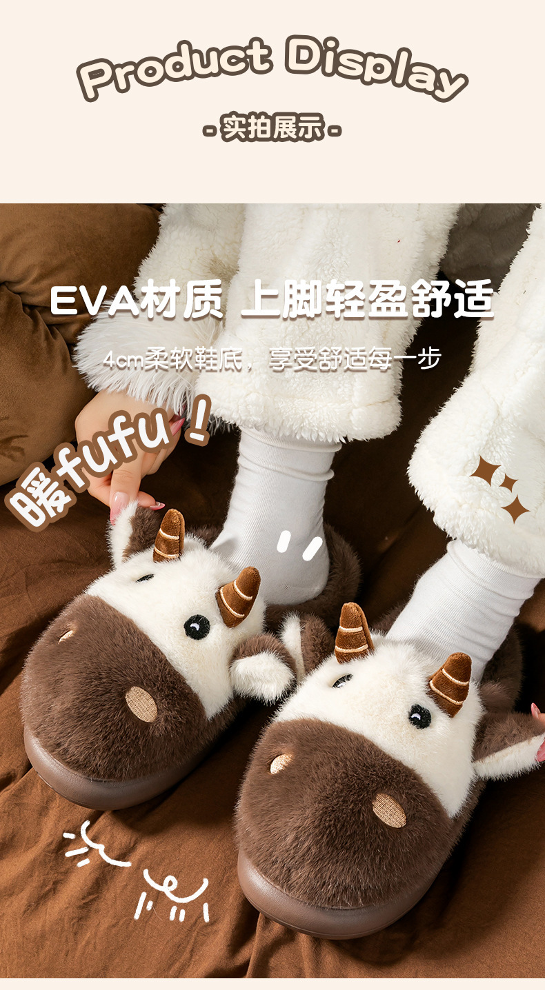 cute cartoon calf cotton slippers female couple 2025 new indoor home plush autumn and winter cotton slippers cotton slippers winter male 中文版