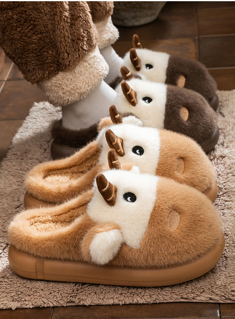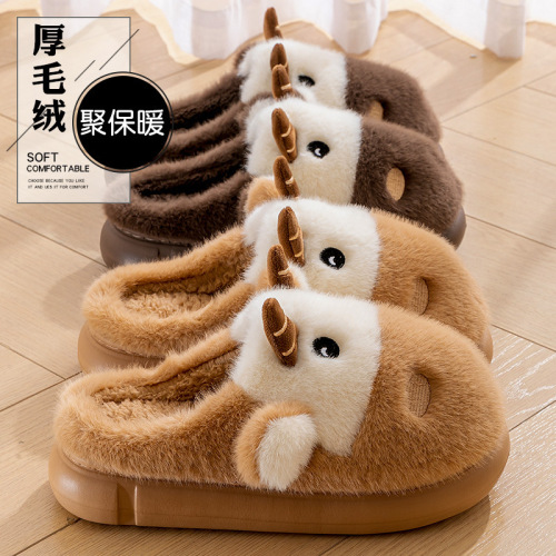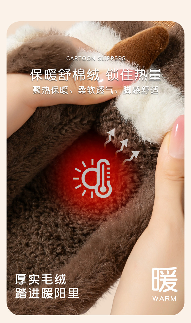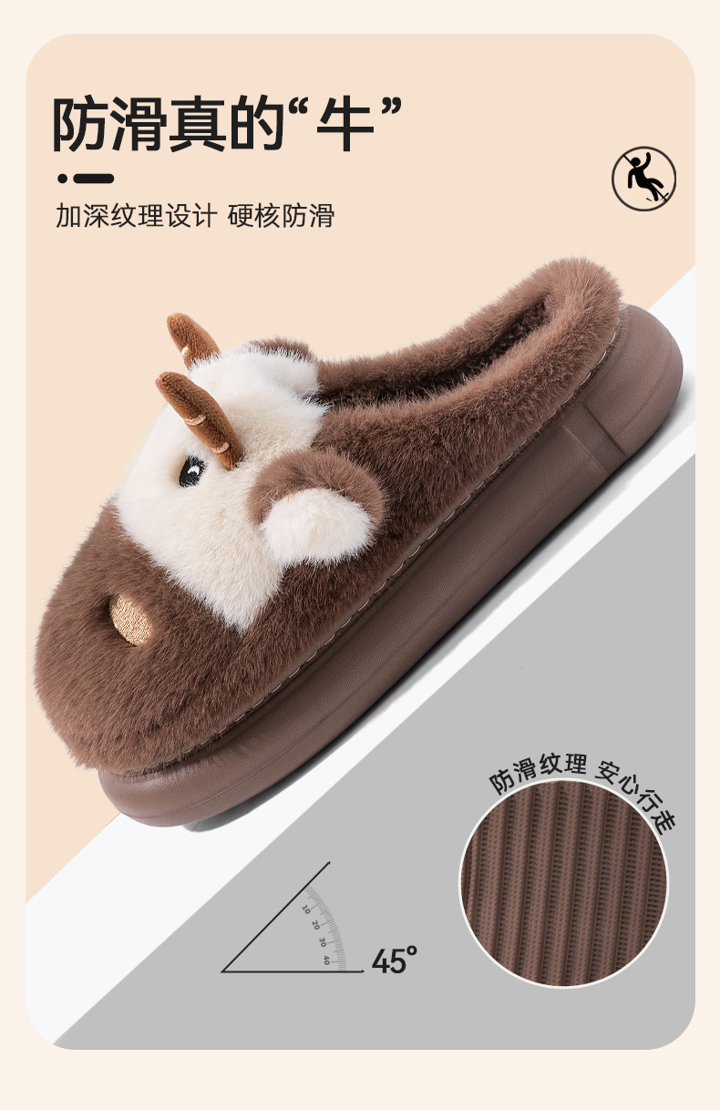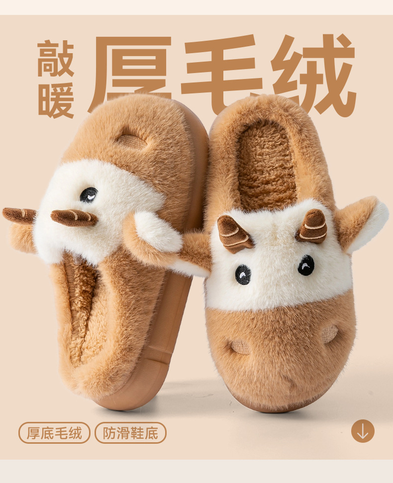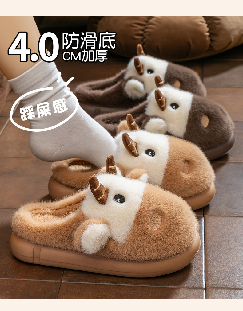 cute cartoon calf cotton slippers female couple 2025 new indoor home plush autumn and winter cotton slippers cotton slippers winter male 中文版