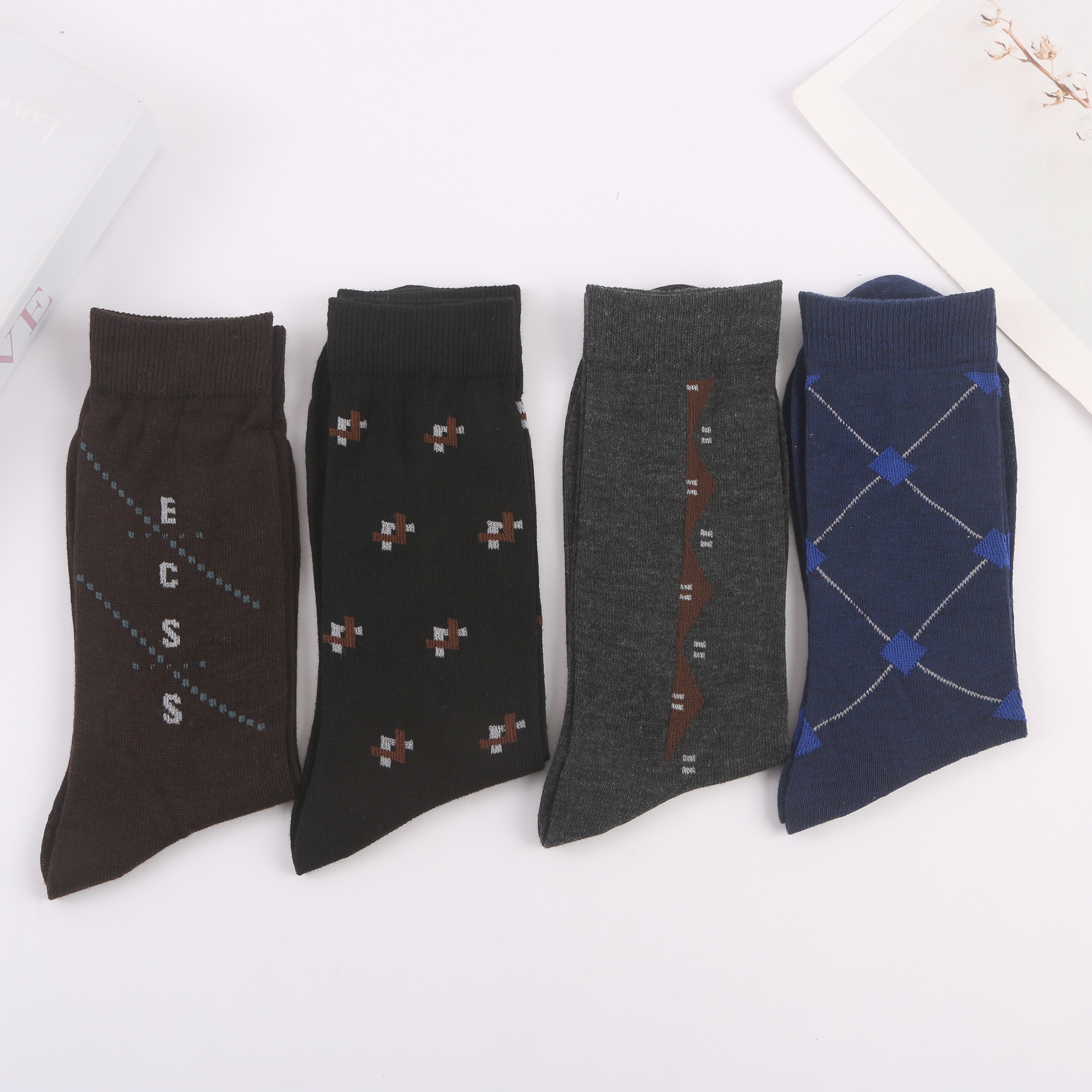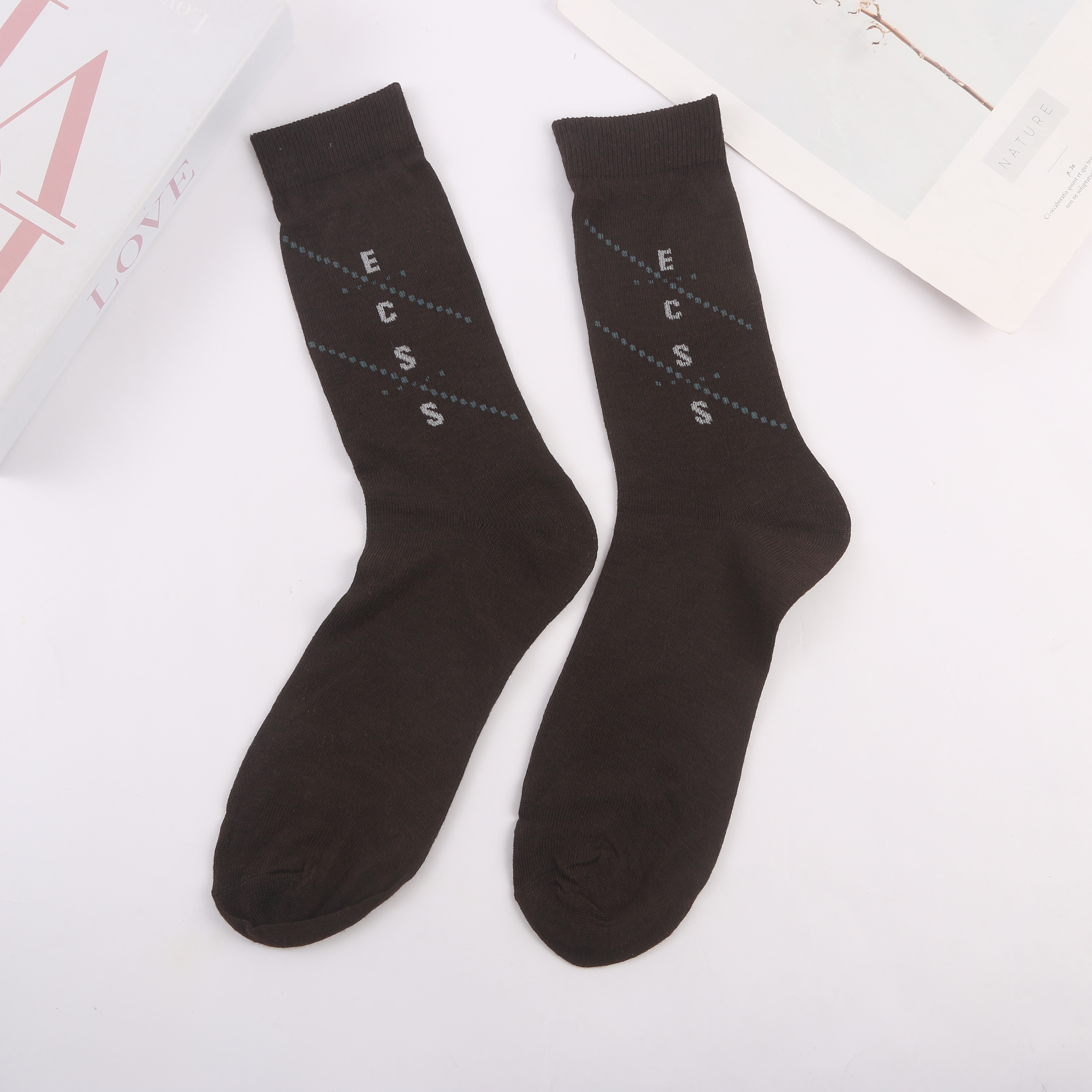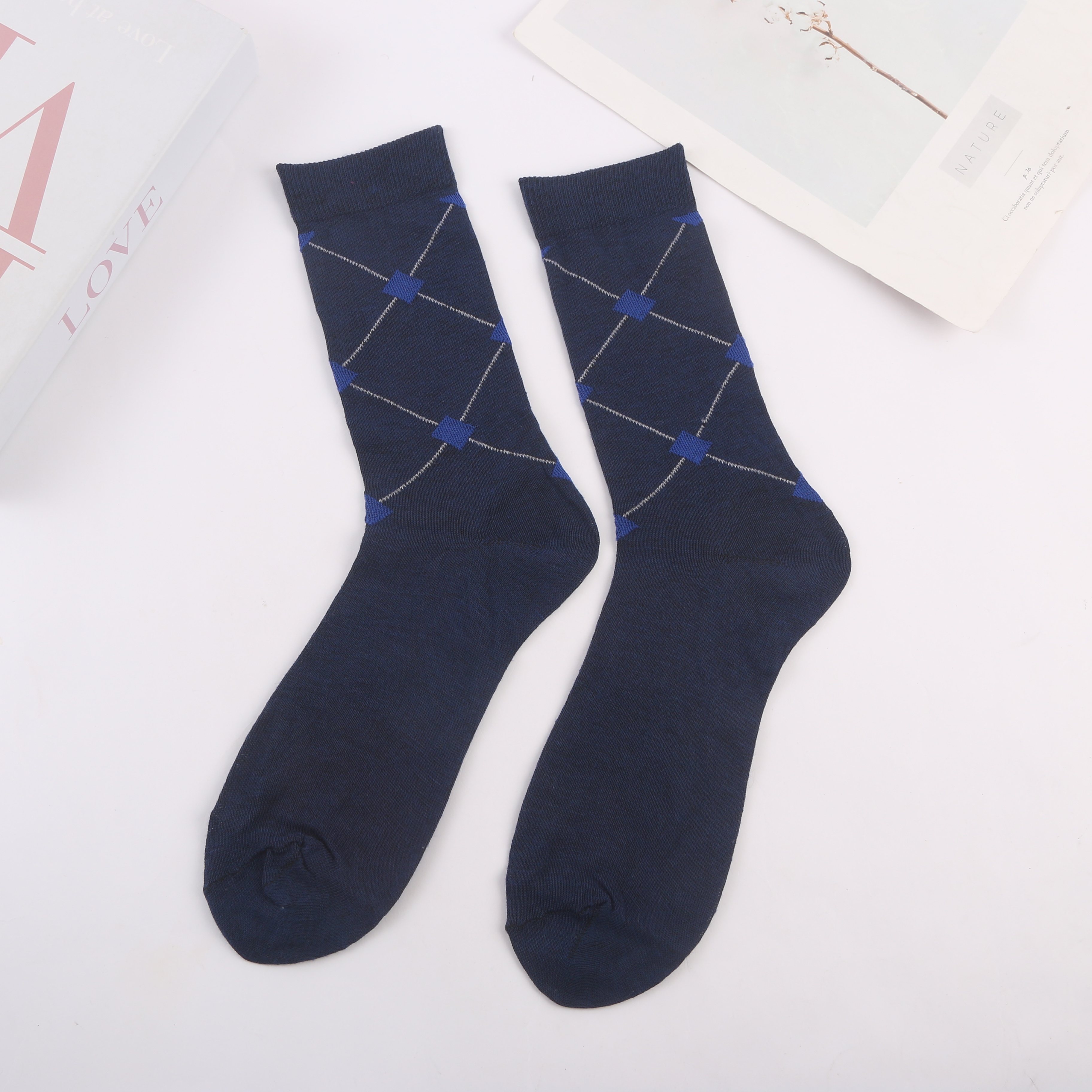 autumn and winter just need grid pattern thermal middle tube men's socks socks business socks 中文版