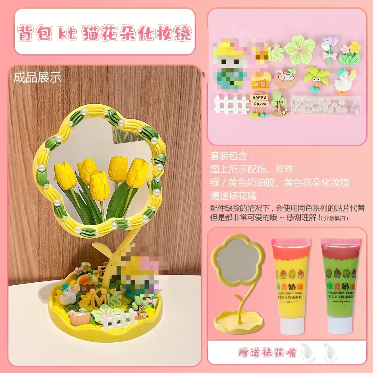 yellow flower mirror + butter bear material package + gift decorating nozzle