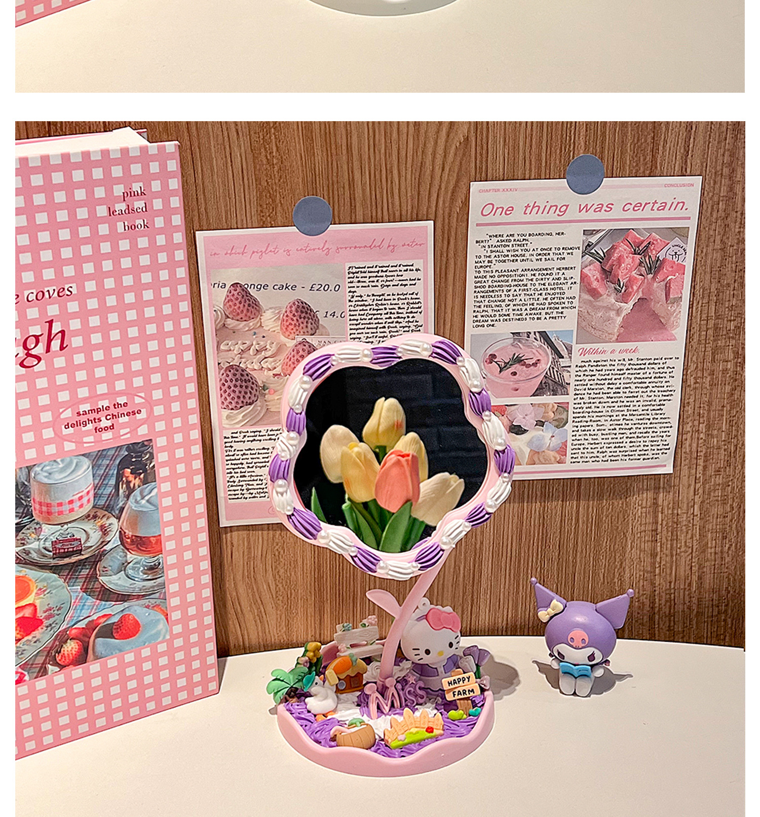 pink flower mirror + bow tie hello kitty material package + gift decorating nozzle