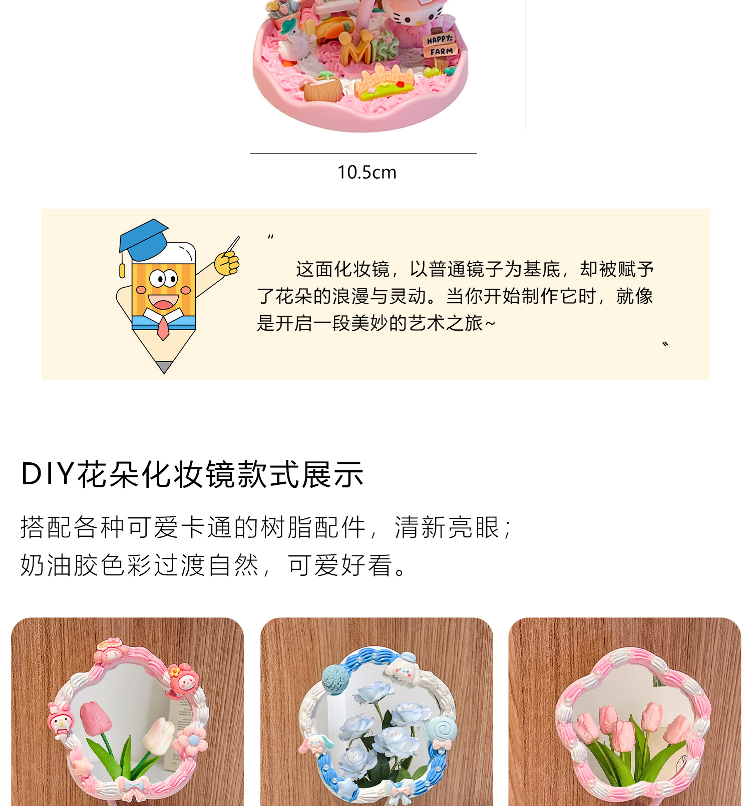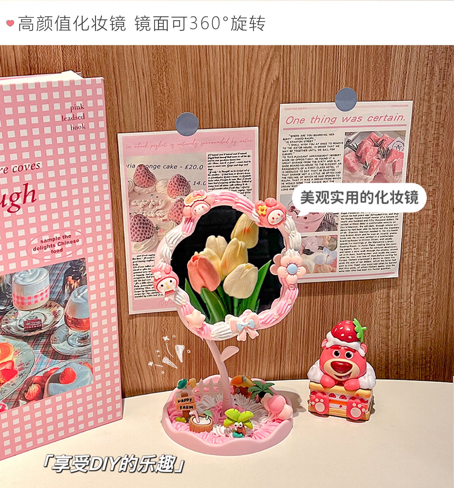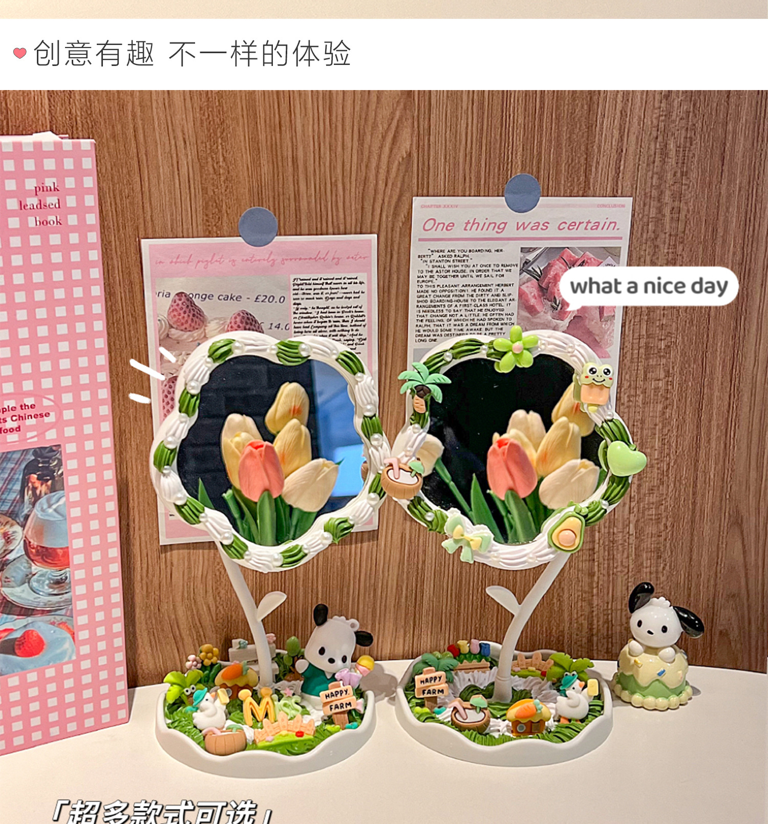 pink flower mirror + melody material package + gift decorating nozzle