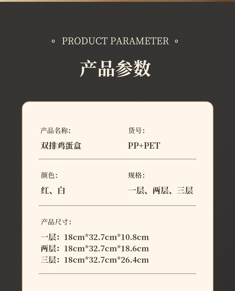 | 9250 eggs storage box double row 2 layers red | ¥35.1 | 1000 piece available |