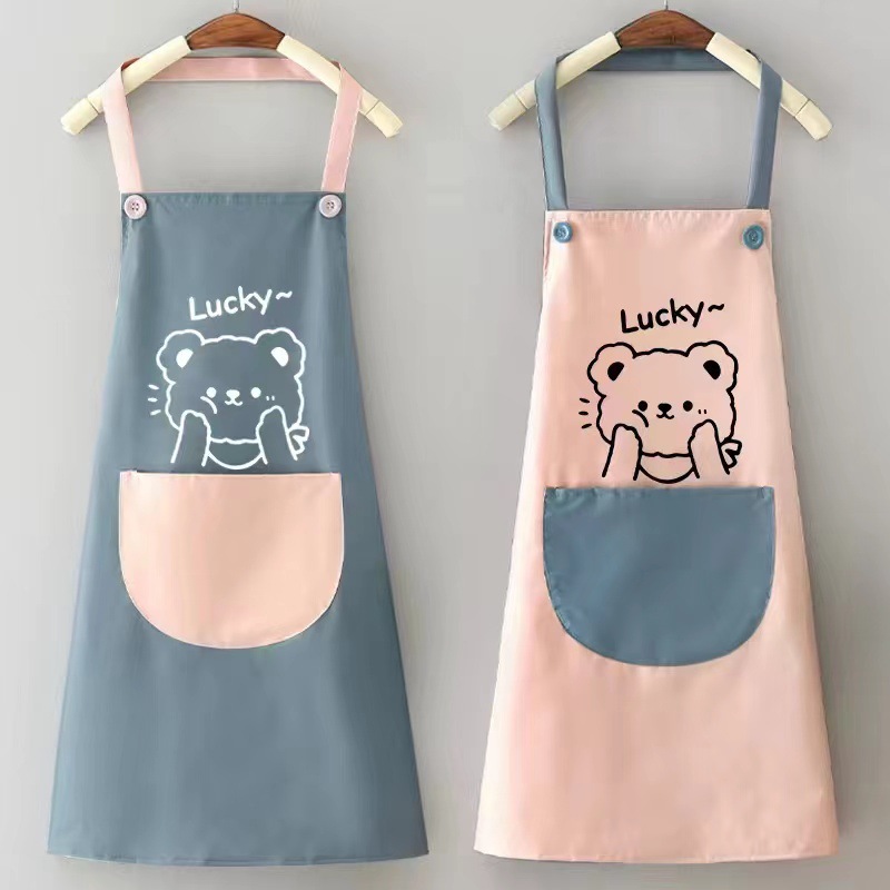 hand-wiping halter waterproof dudu bear skin blue pink pocket + sleeves