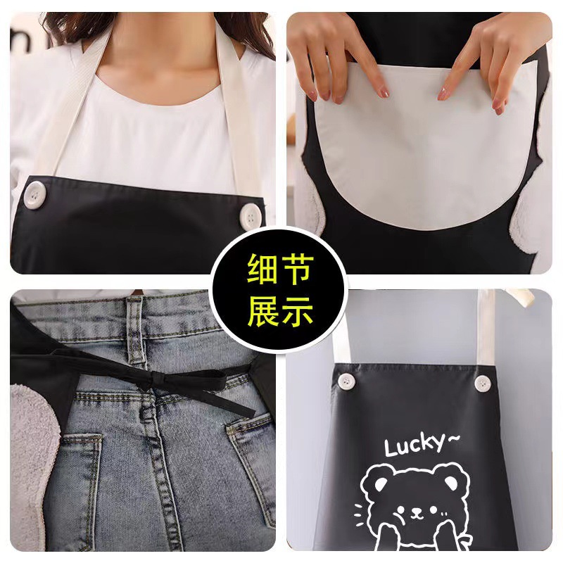 hand-wiping halter waterproof doodle bear black gray pocket + sleeves