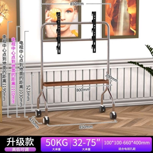 tv floor stand movable stainless steel vertical trolley with wheels living room bedroom 32-75 inch universal 中文版