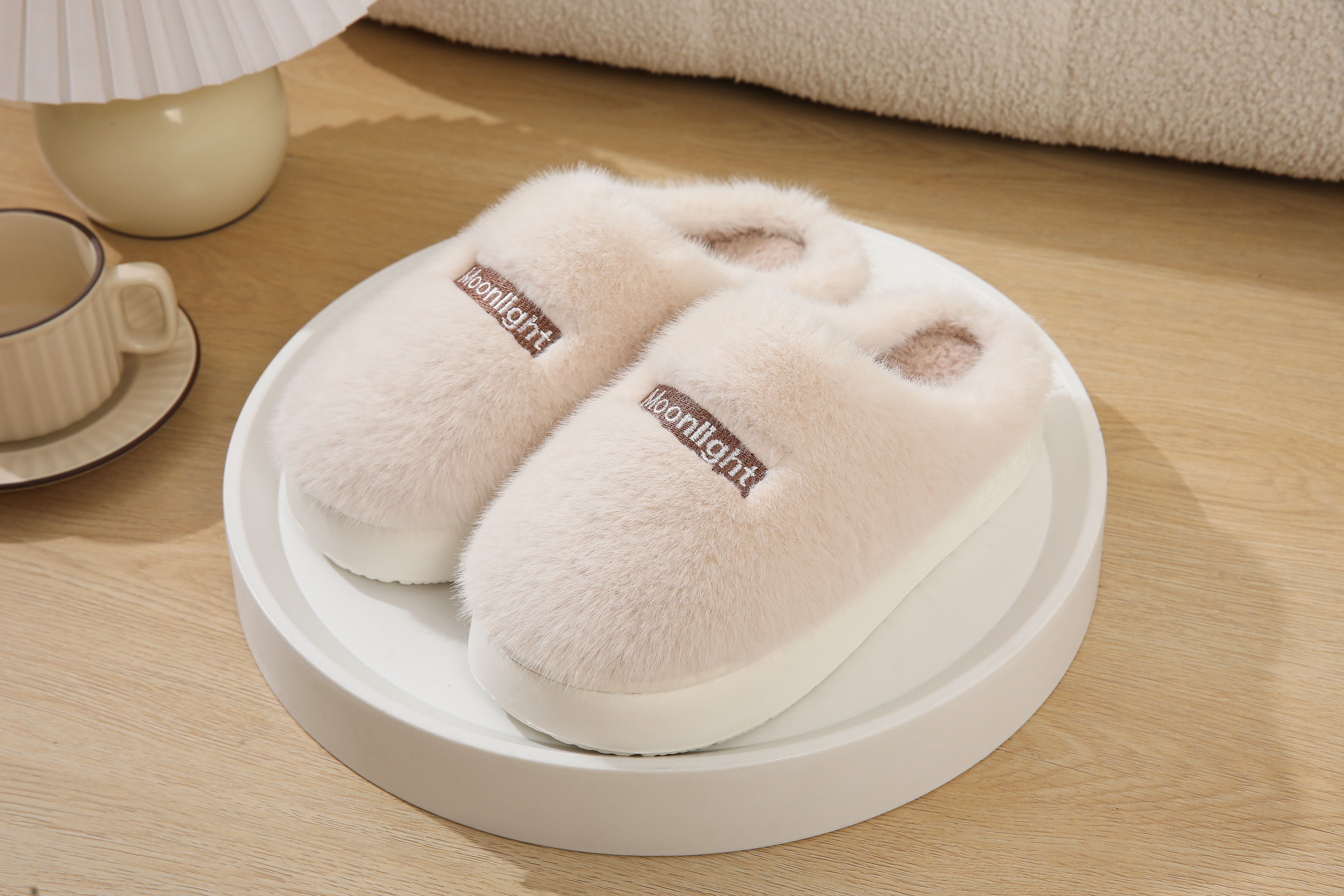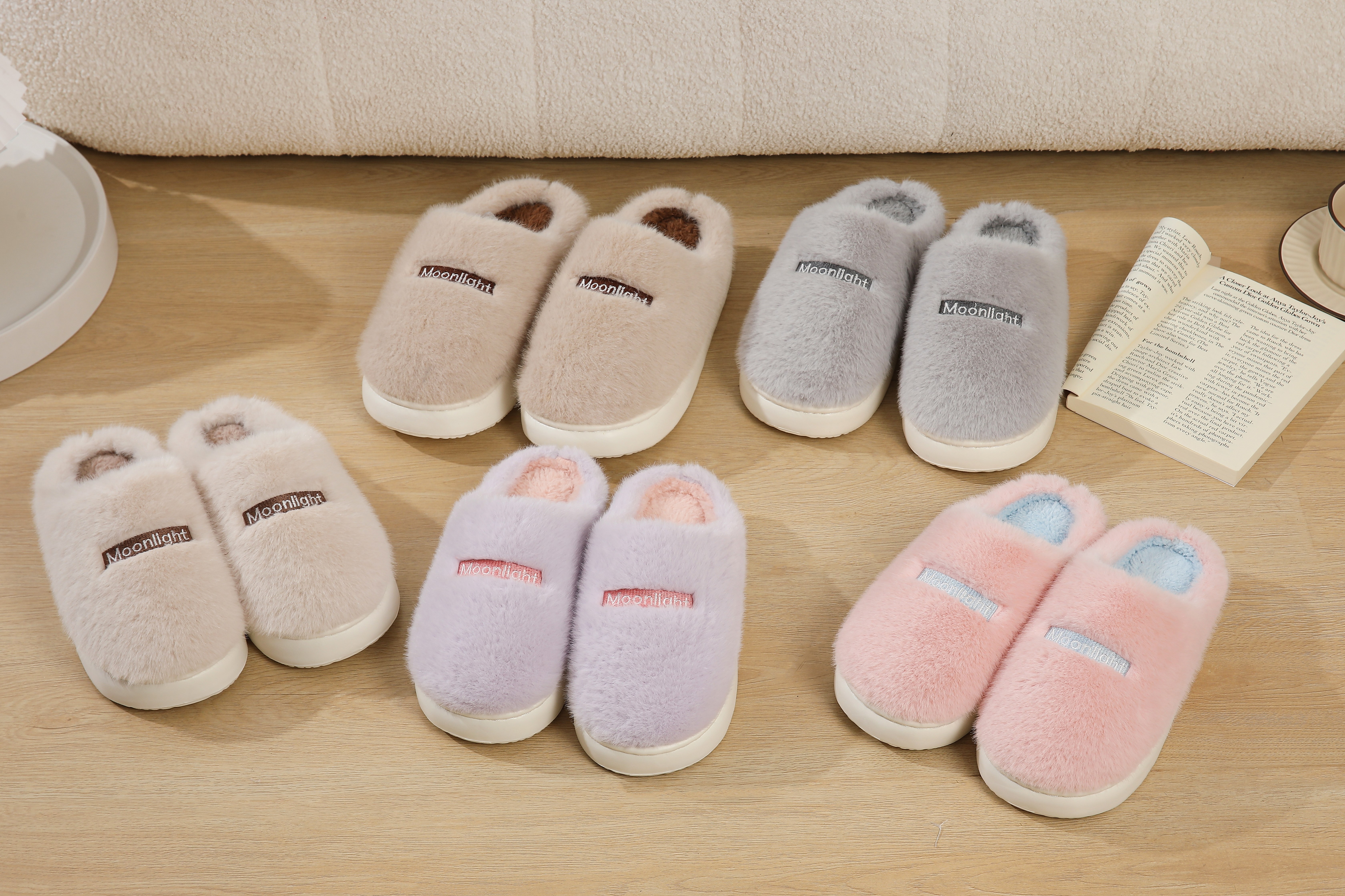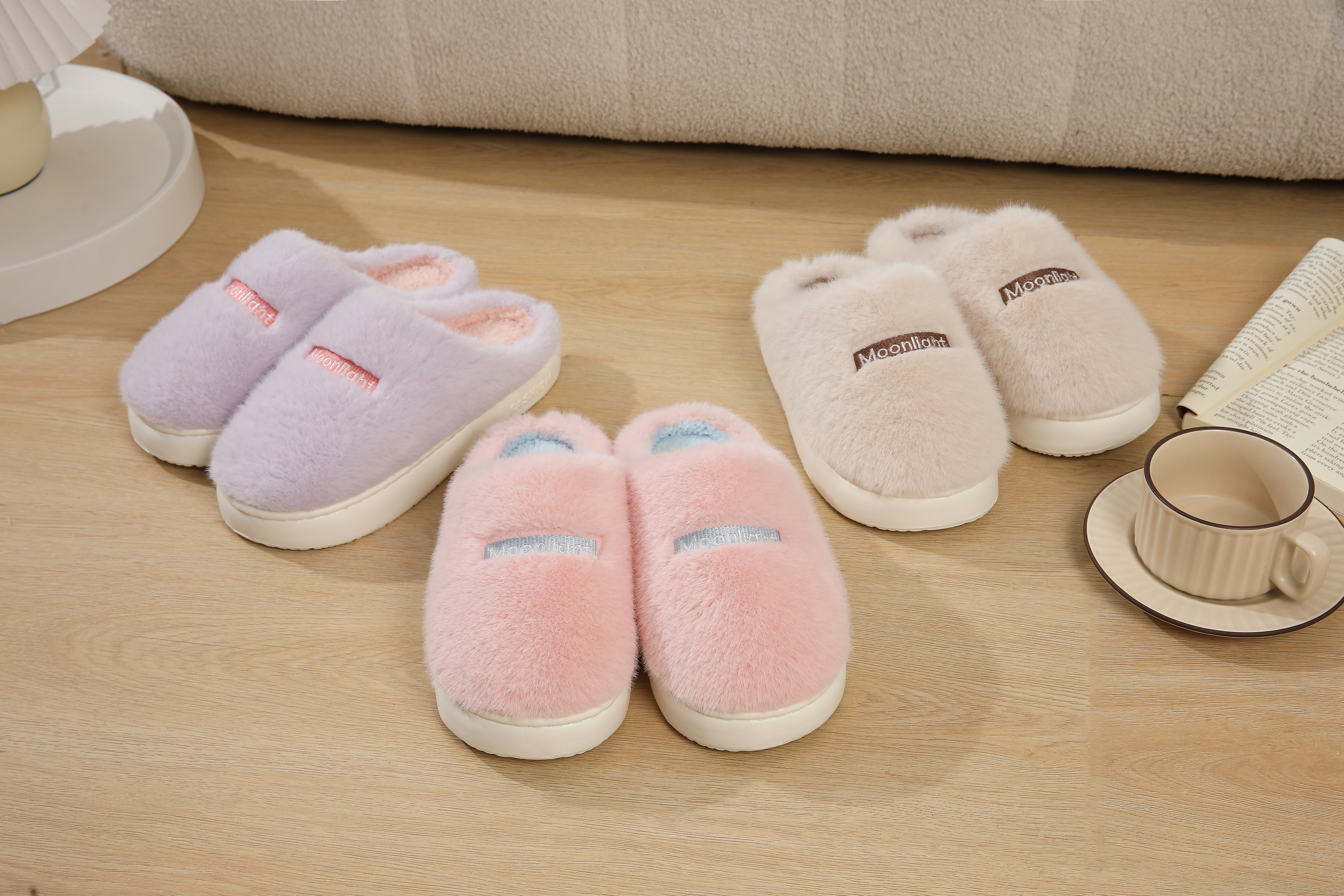 2025 winter new moonlight plush couple men cotton slippers simple fashion best-seller home women's slippers 中文版