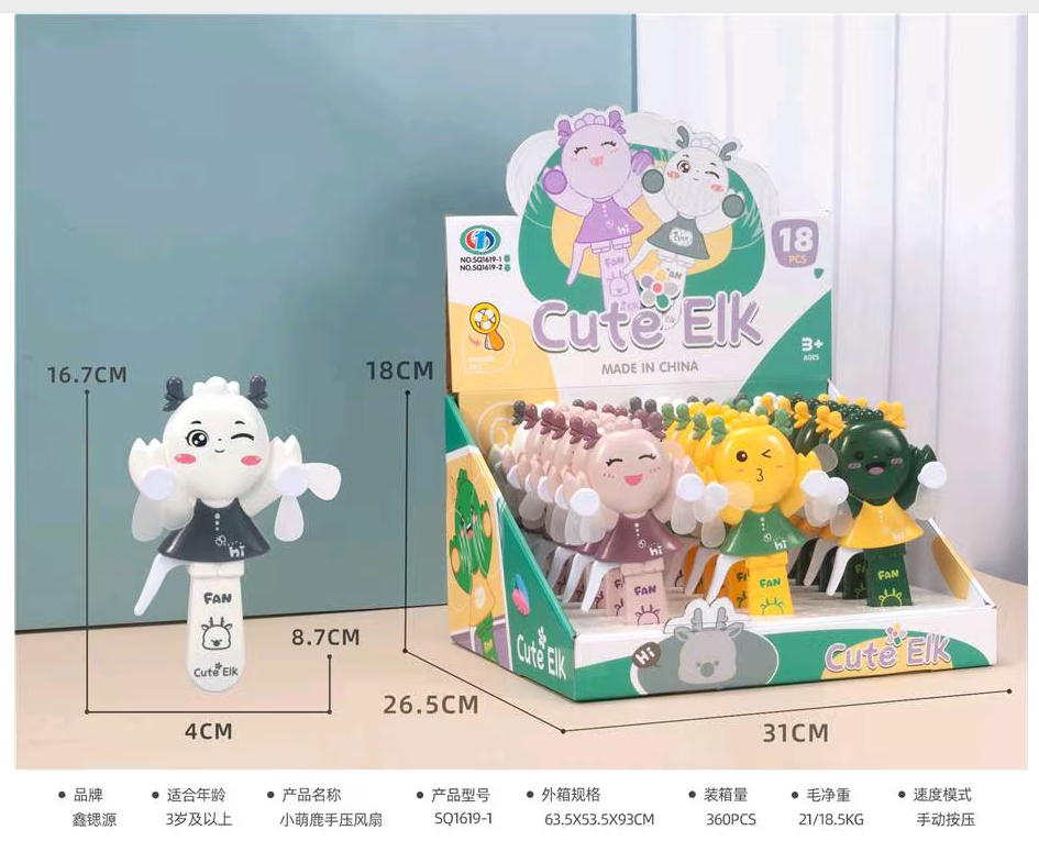 cross-border e-commerce children's popular small double-headed small cute deer hand pressure fan children's cartoon little fan 中文版