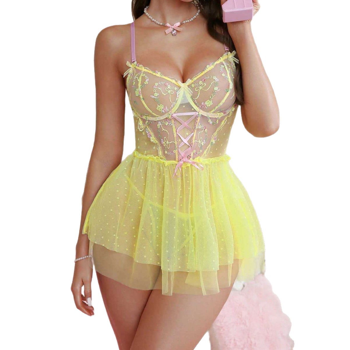 european and american new sexy mesh embroidered suspender skirt sexy lingerie set 中文版