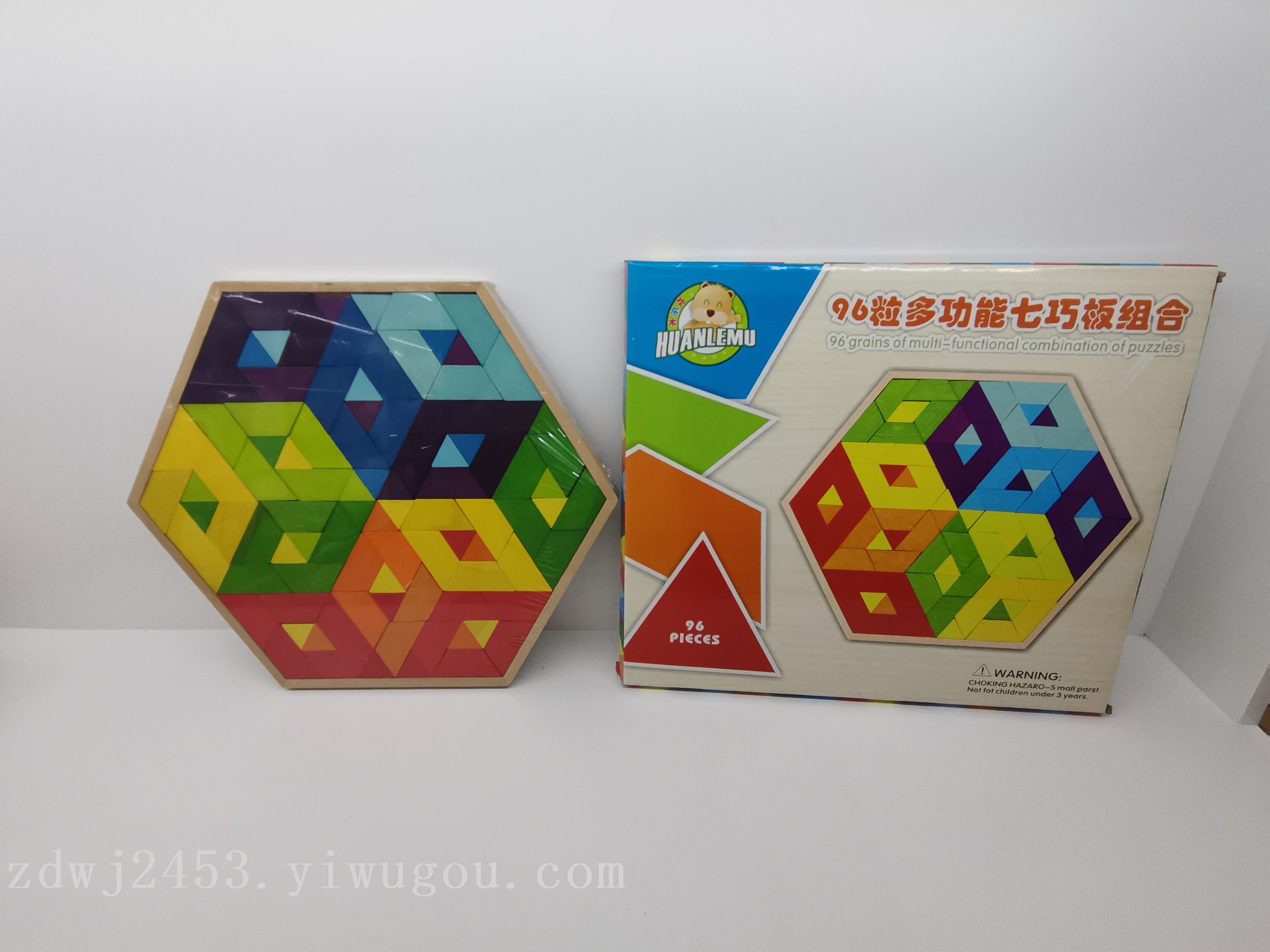 wooden puzzle hexagonal square 96 pieces multi-functional jigsaw puzzle toy birthday children's day gift 中文版