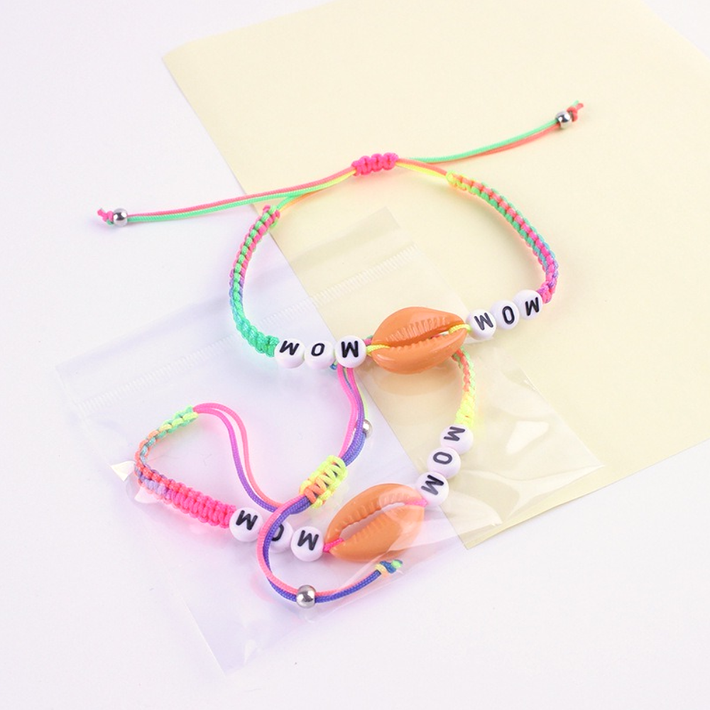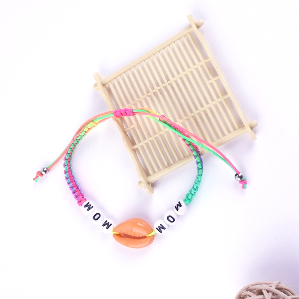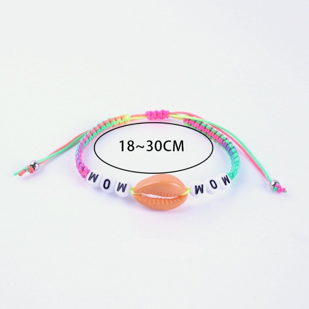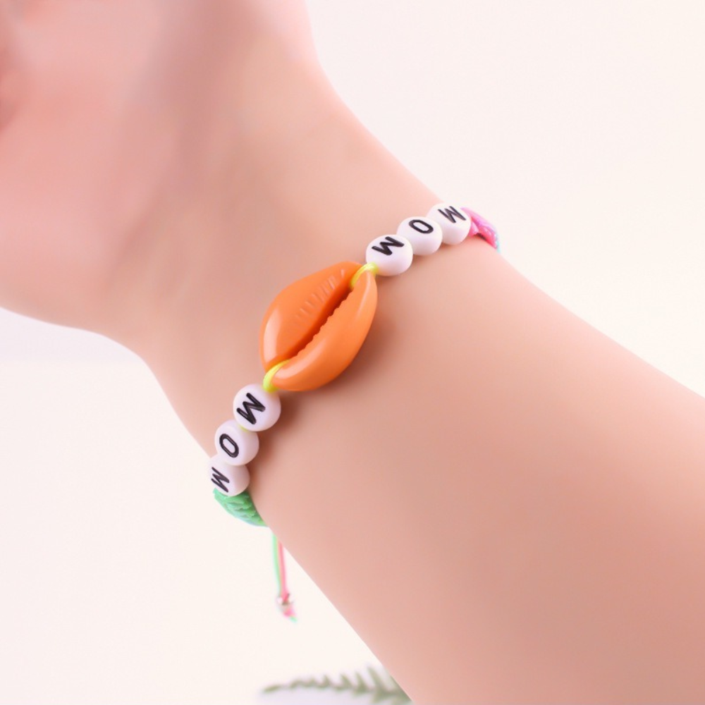 cross-border fashion orange shell bracelet hand woven hand rope english letter simplicity color bracelet factory wholesale 中文版