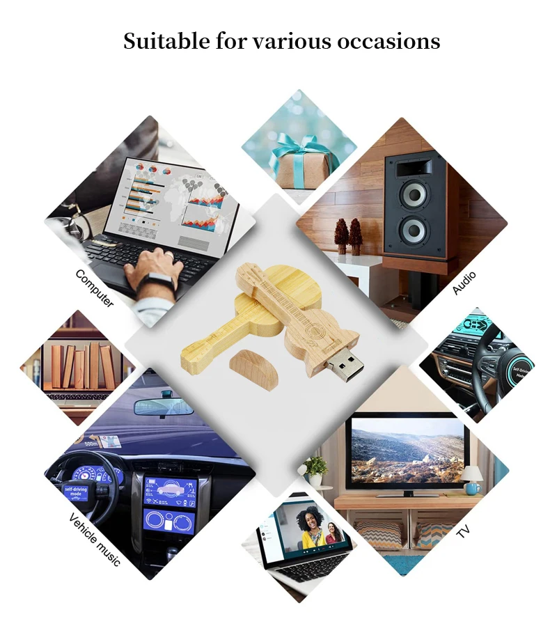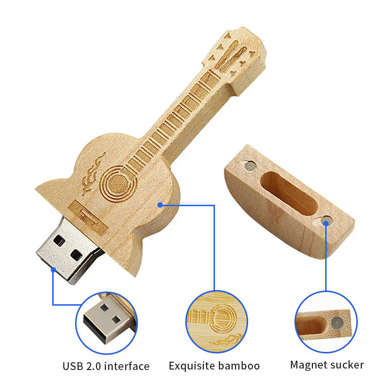 Creative Wooden U Disk Crystal Wood Two-in-One USB Guitar Rotating Memory 8gb16gb Custom Logo