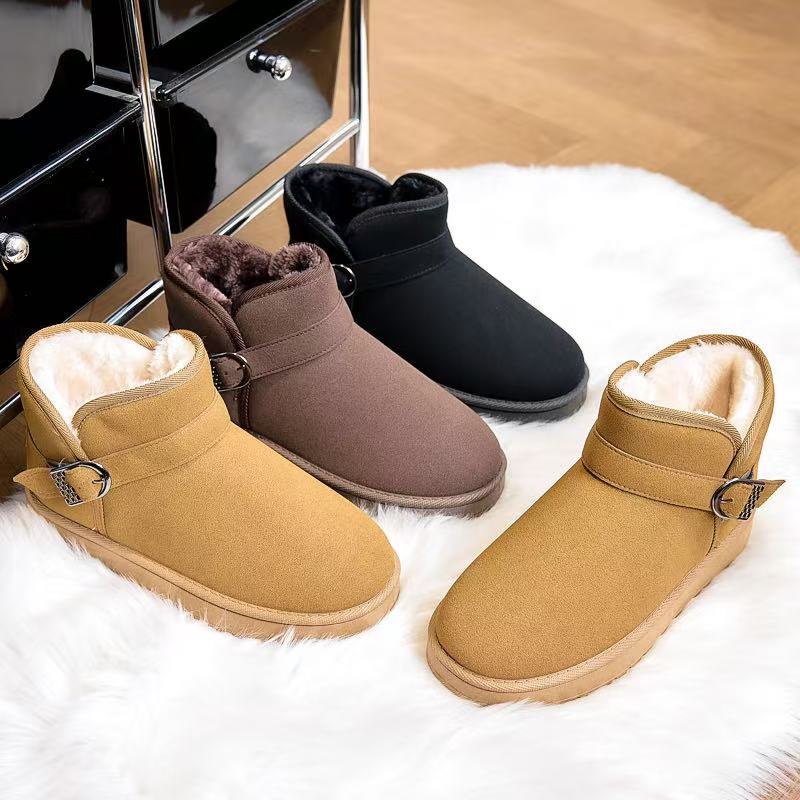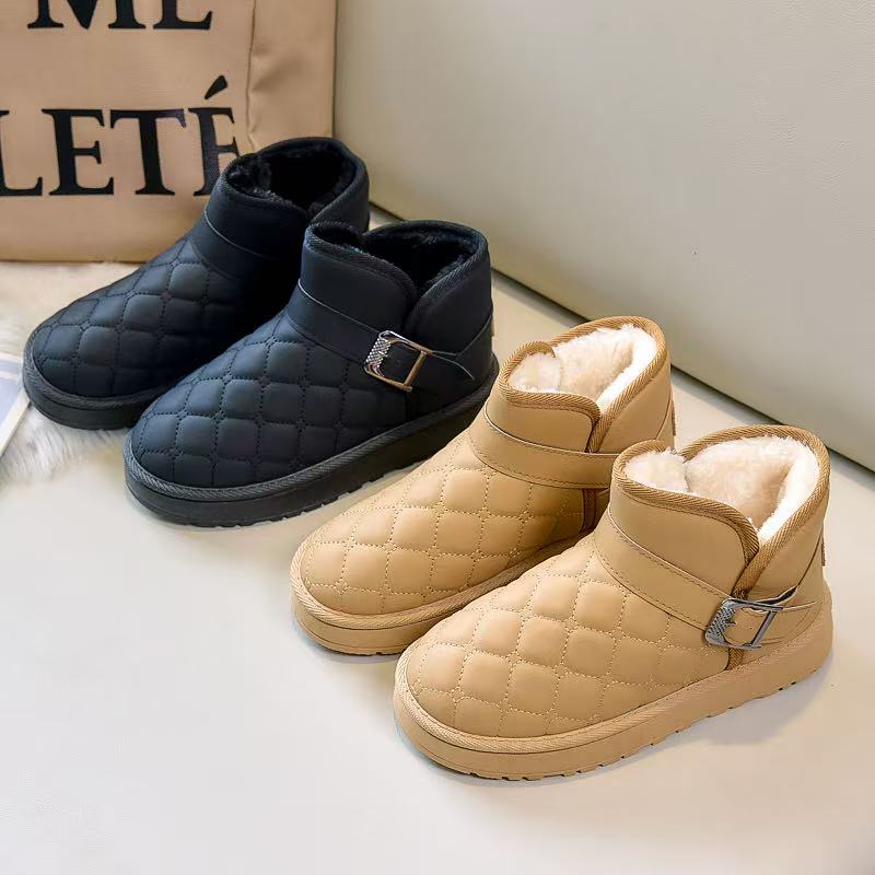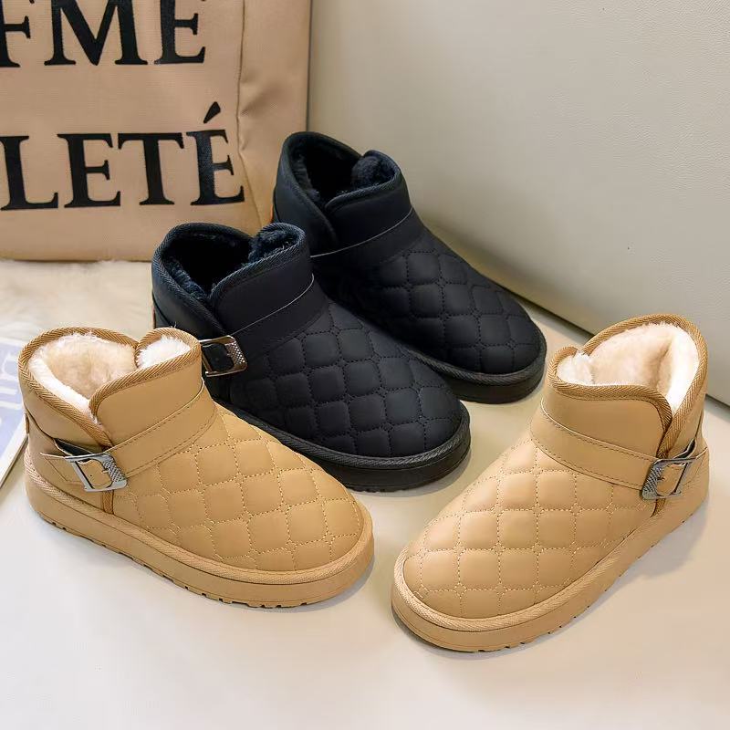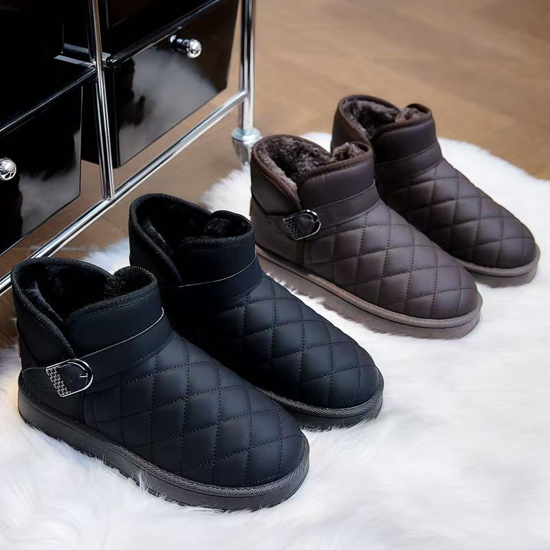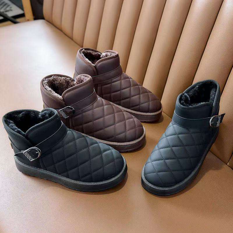2025 new winter snow boots women's short tube velvet soft bottom non-slip leather waterproof slip-on insulated cotton-padded shoes 中文版