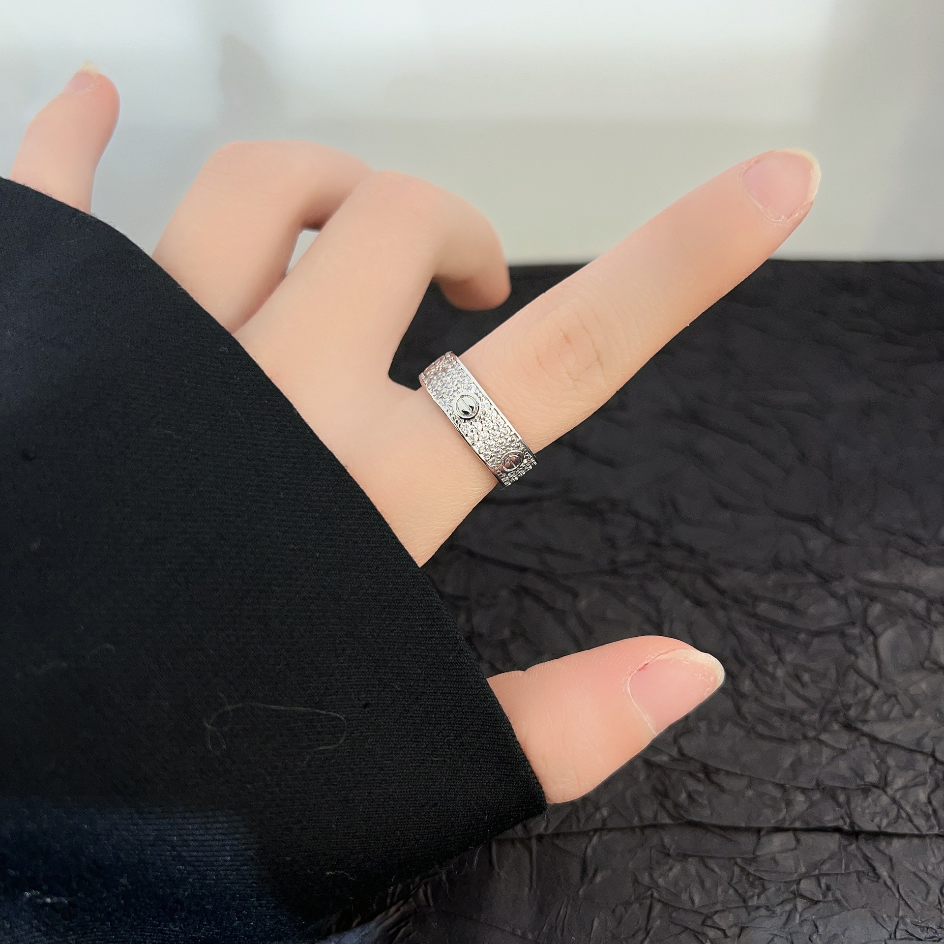 2025 new 925 ring women's cooperized silver wide and narrow classic style full of diamond-free fashion all-matching silver ring wholesale 中文版