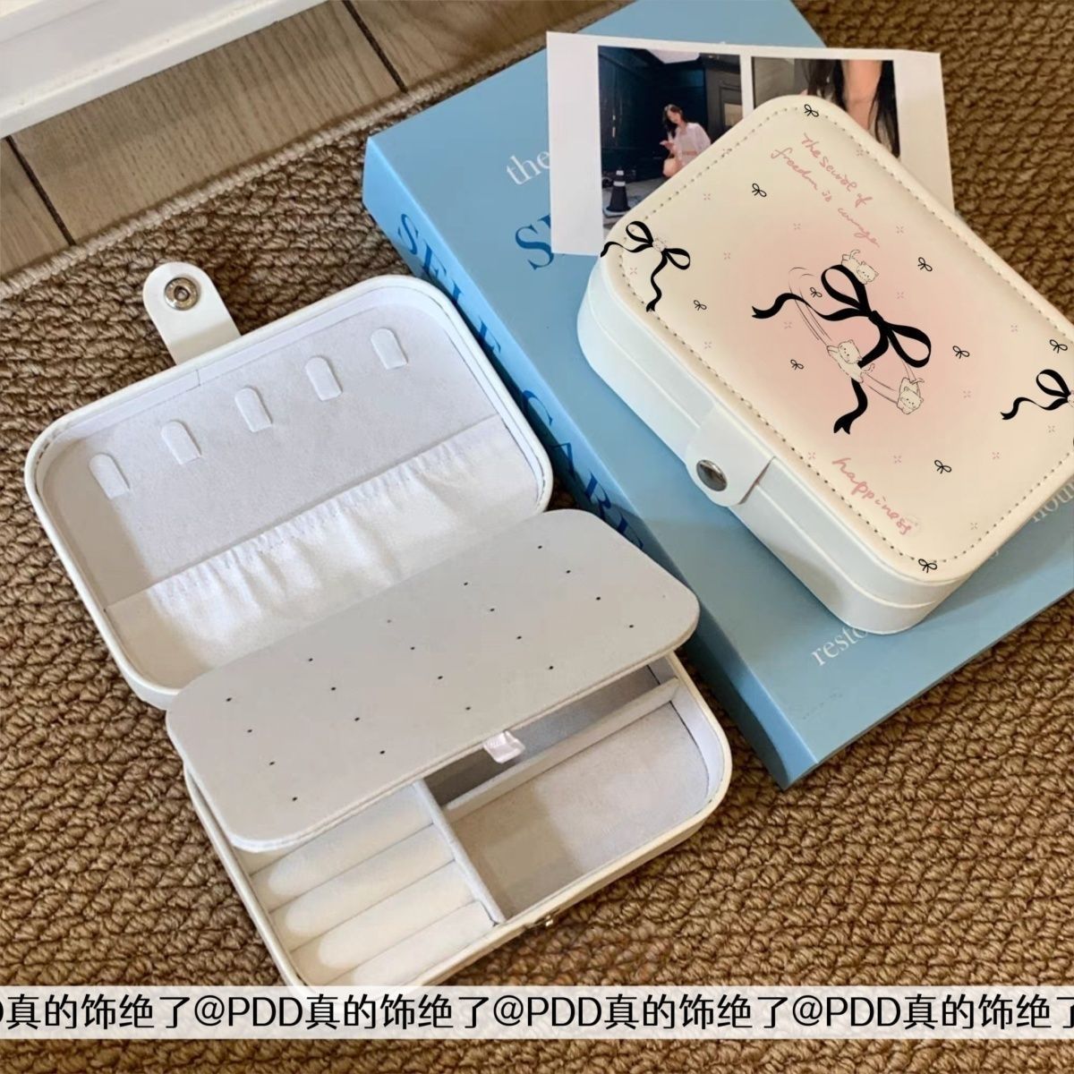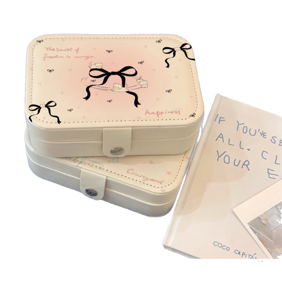 rectangular jewelry box-black bow kitten
