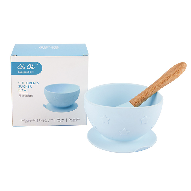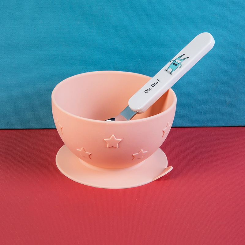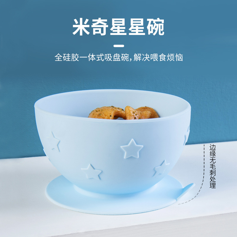 baby-specific portable children's silicone bowl spoon five-pointed star integrated solid food bowl baby sucker bowl
