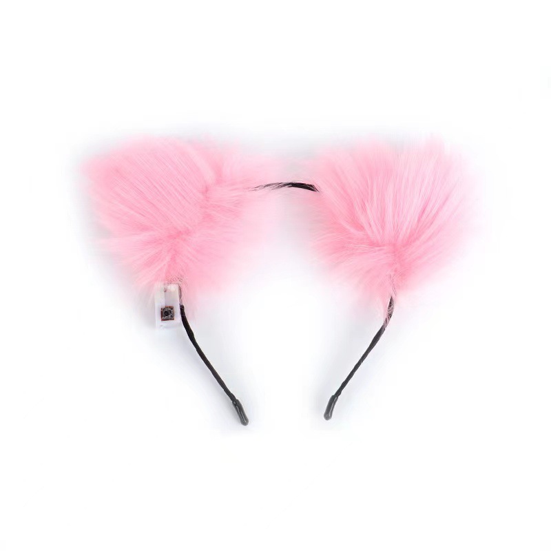 14 fox fur rabbit ears-pink colored lights