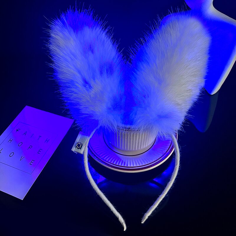 14 fur rabbit ears-blue colored lights