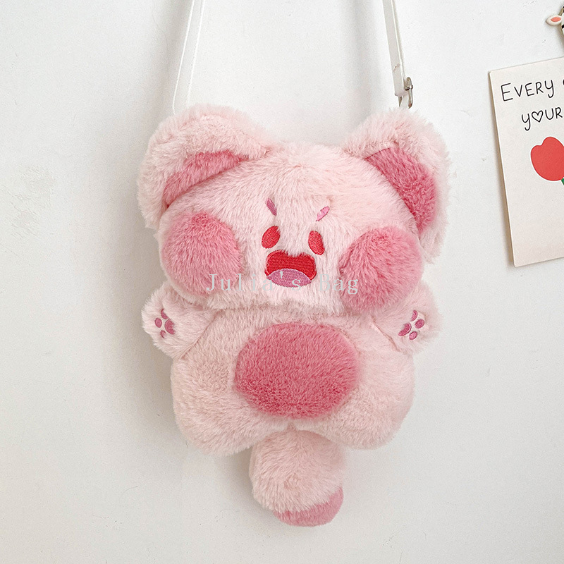 Fuzzy bag cartoon backpack suitcase children's bags fuzzy backpack mobile phone bag student bag doll bag fuzzy toy