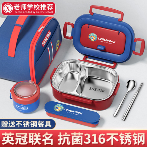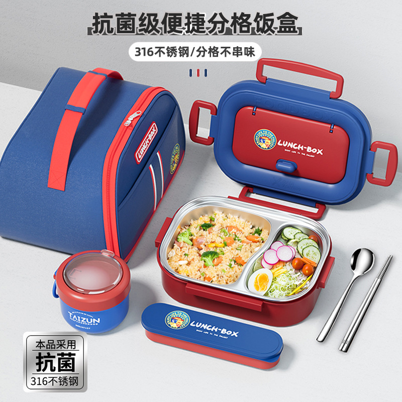 316 antibacterial [three grids] gift british tableware + soup cups + thermal bag