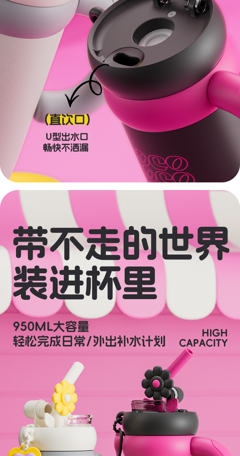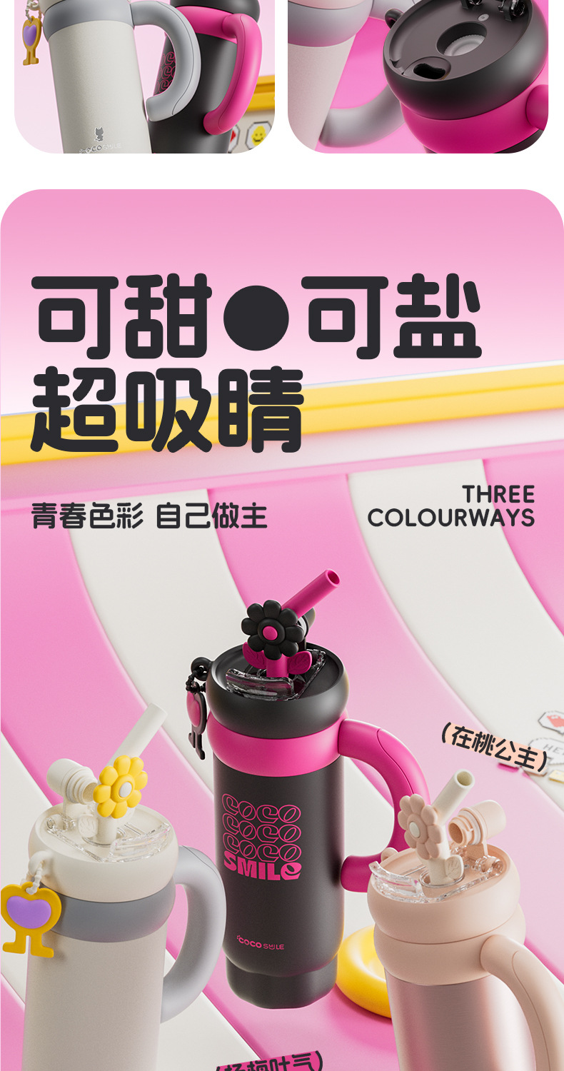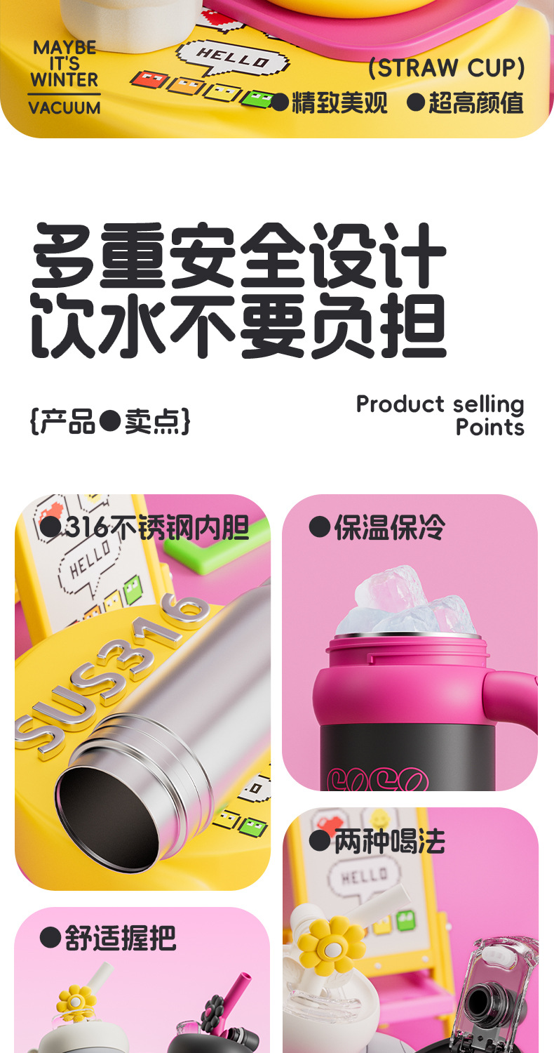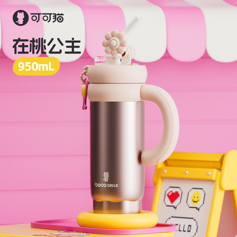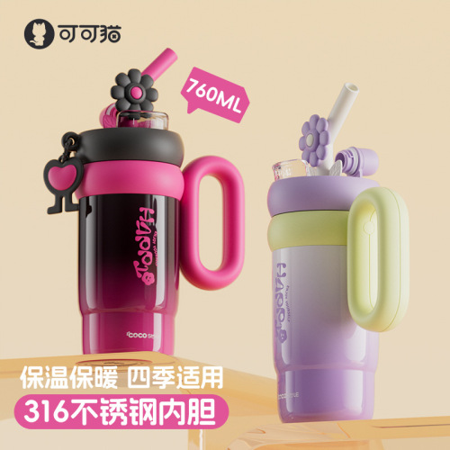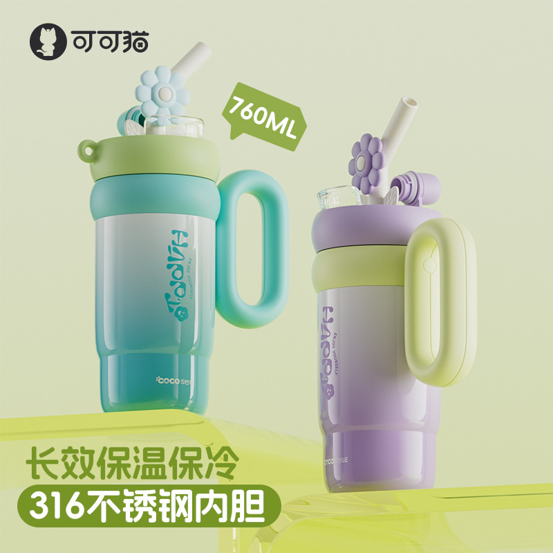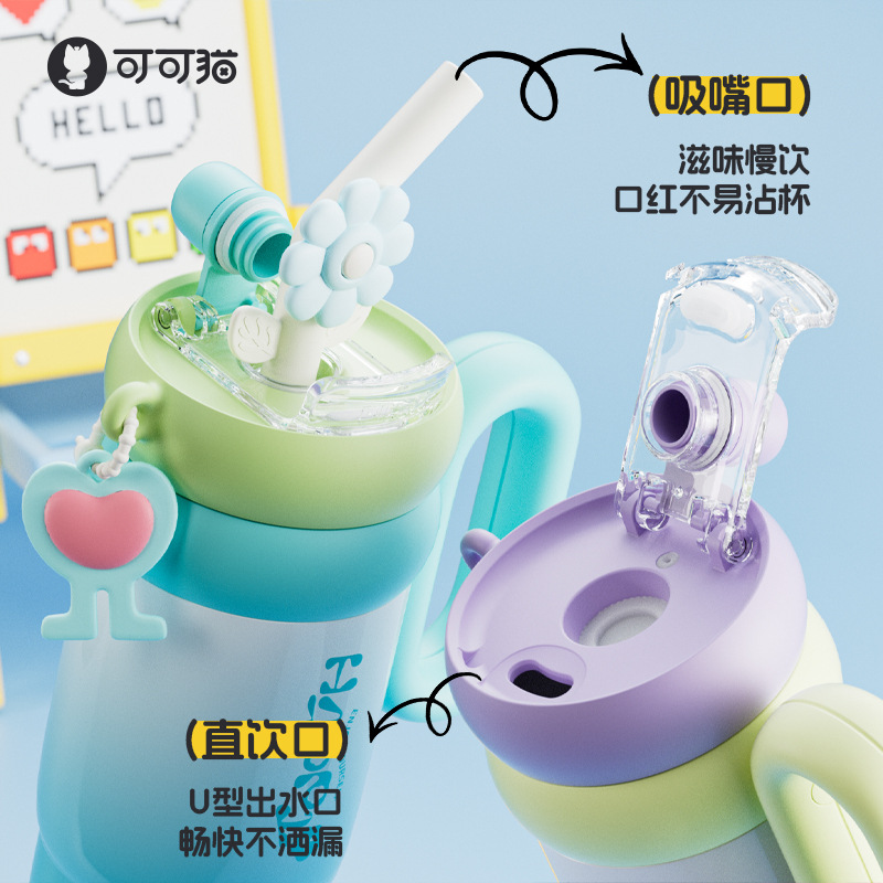 双饮吸管保温杯女生高颜值便携水杯大容量316L不锈钢陶瓷内胆杯子