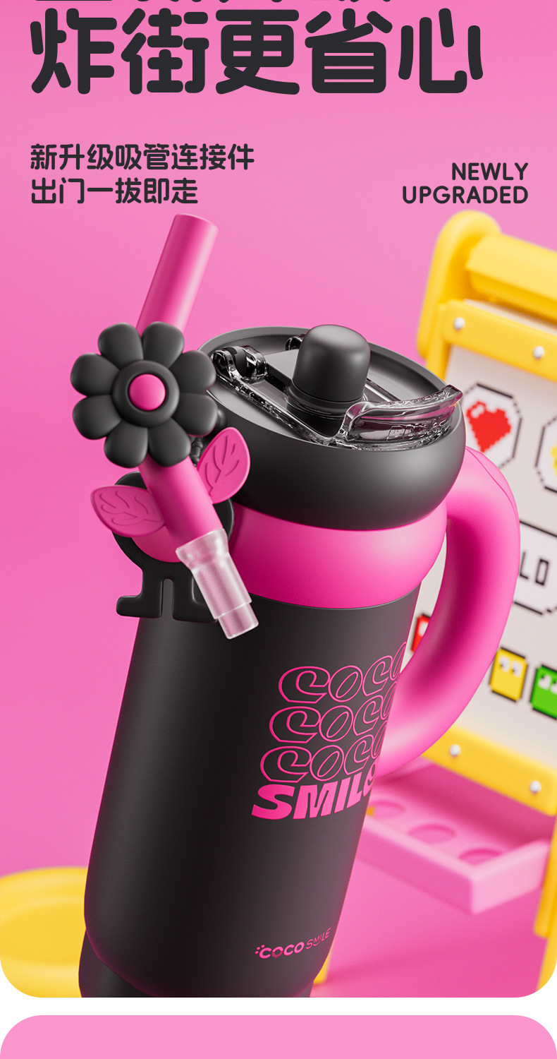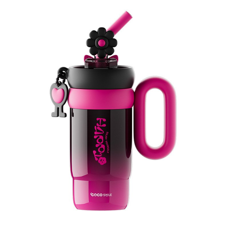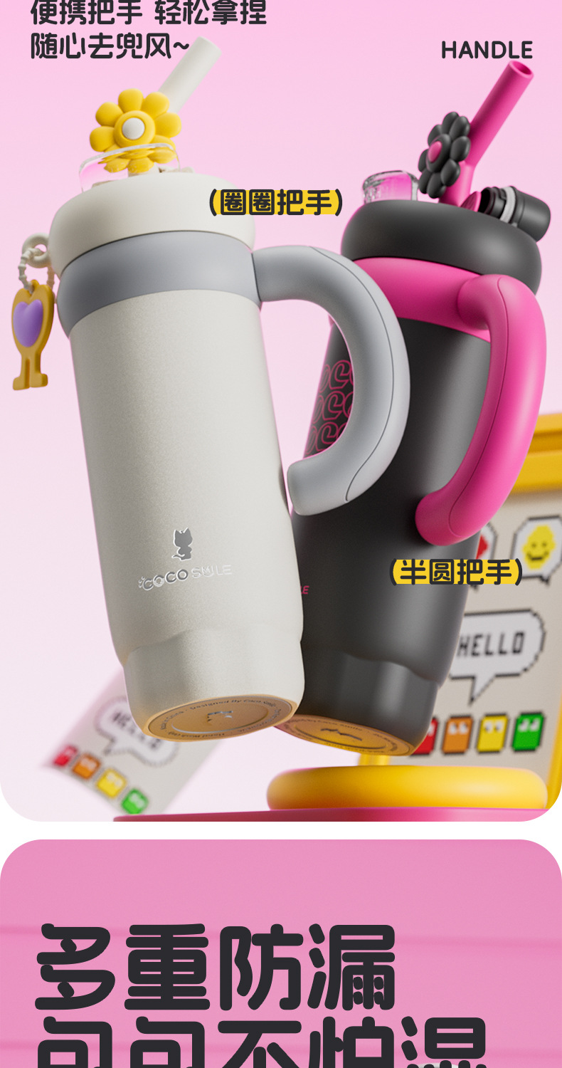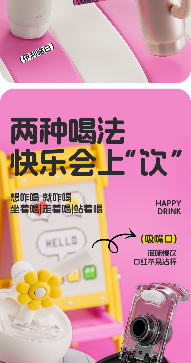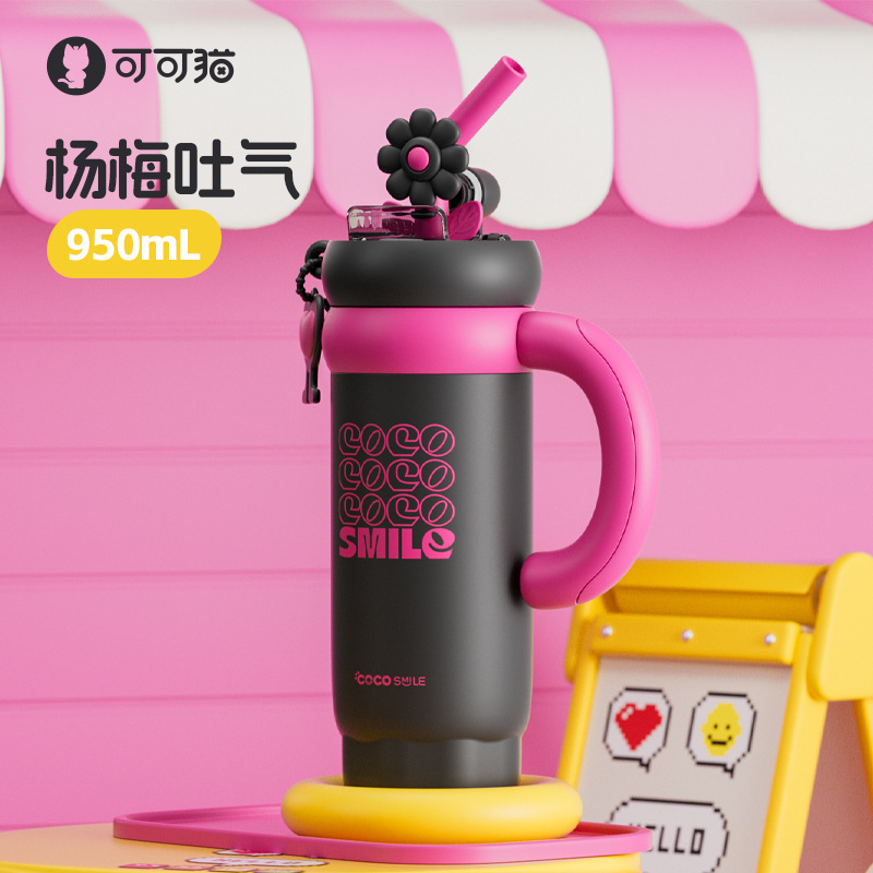双饮吸管保温杯女生高颜值便携水杯大容量316L不锈钢陶瓷内胆杯子