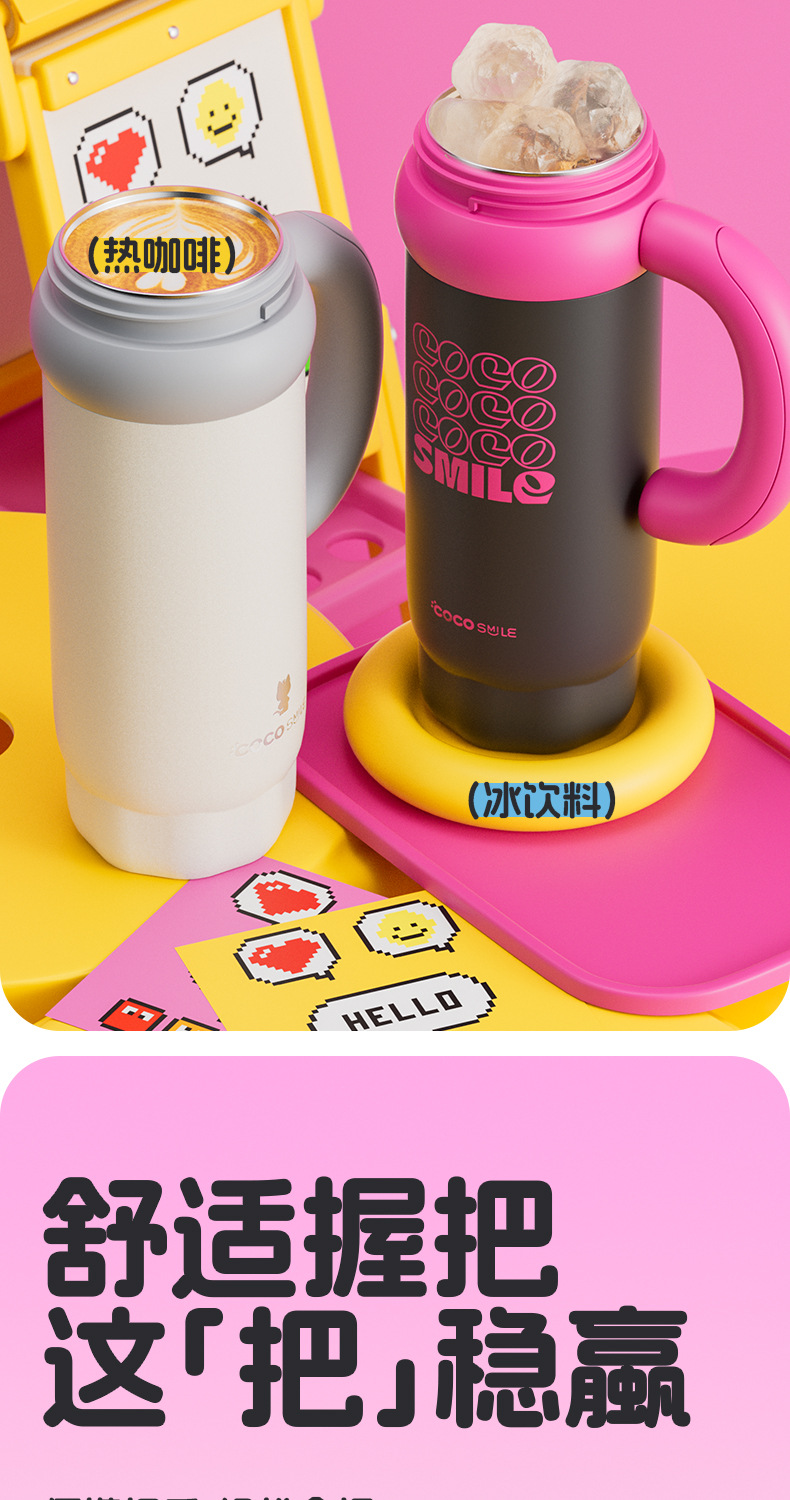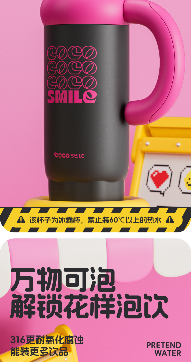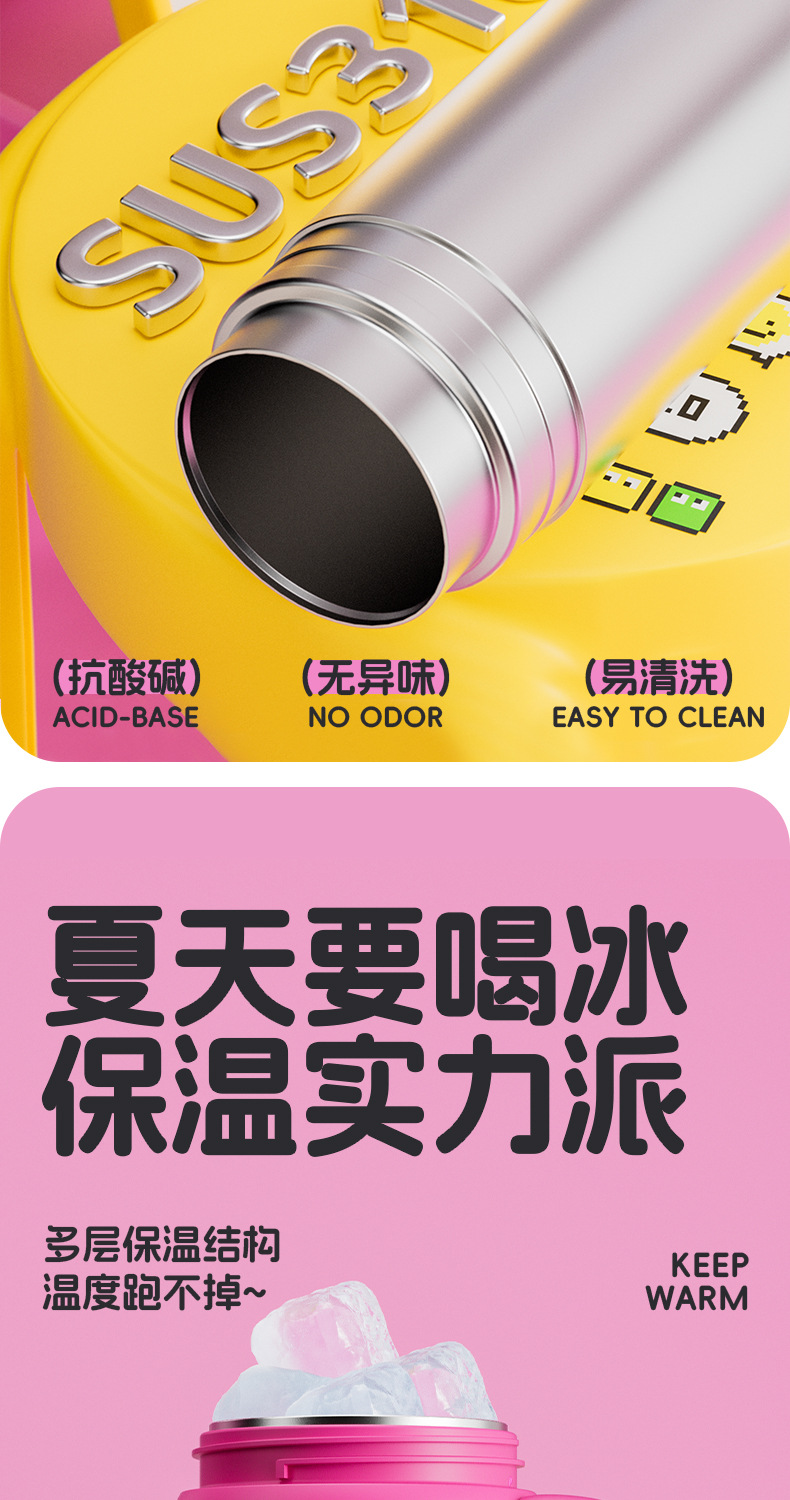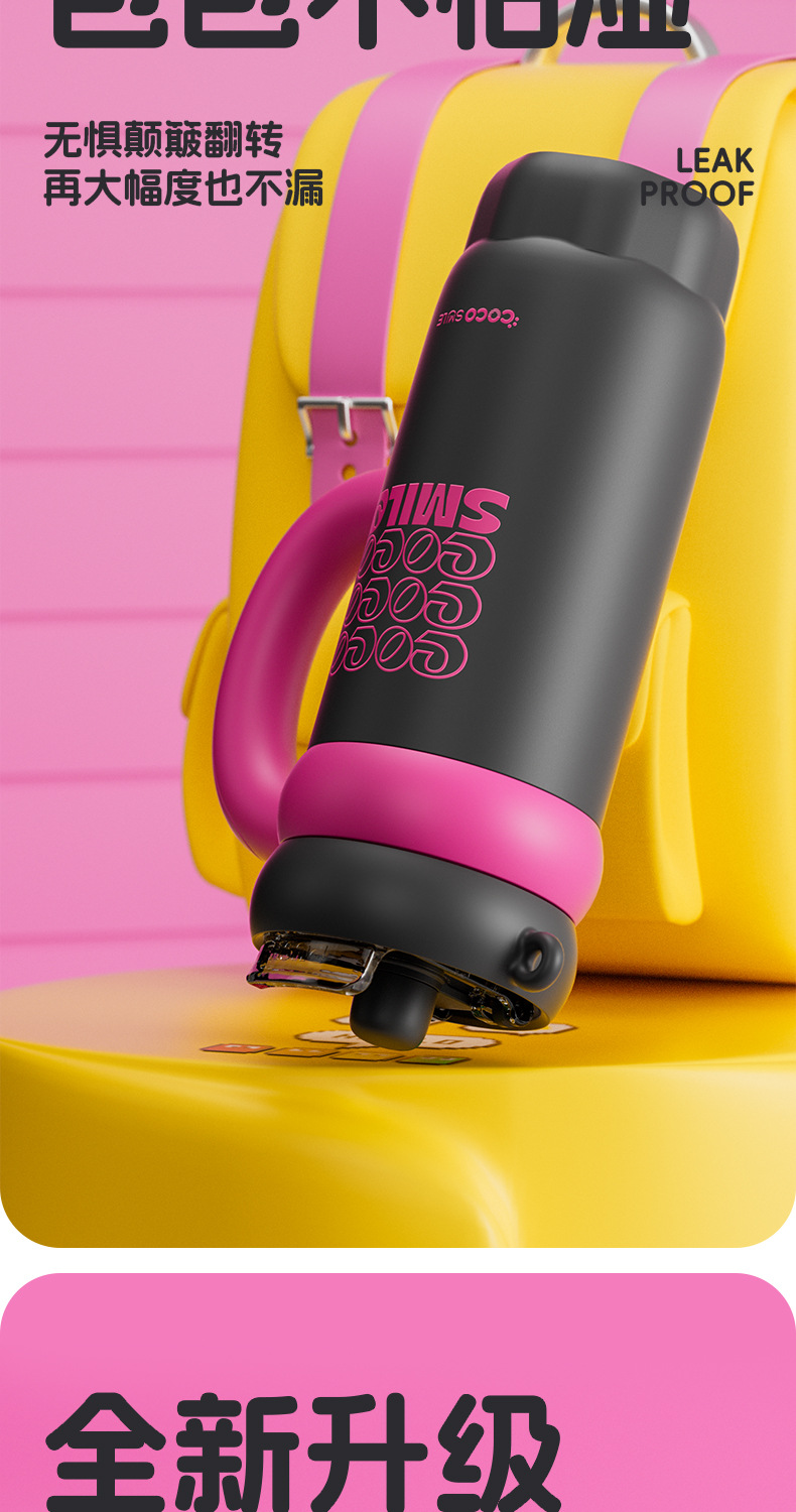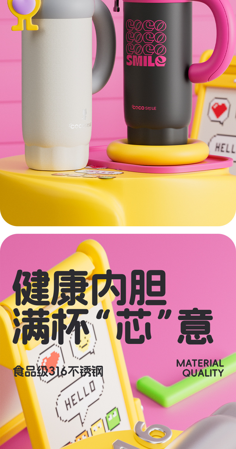 双饮吸管保温杯女生高颜值便携水杯大容量316L不锈钢陶瓷内胆杯子