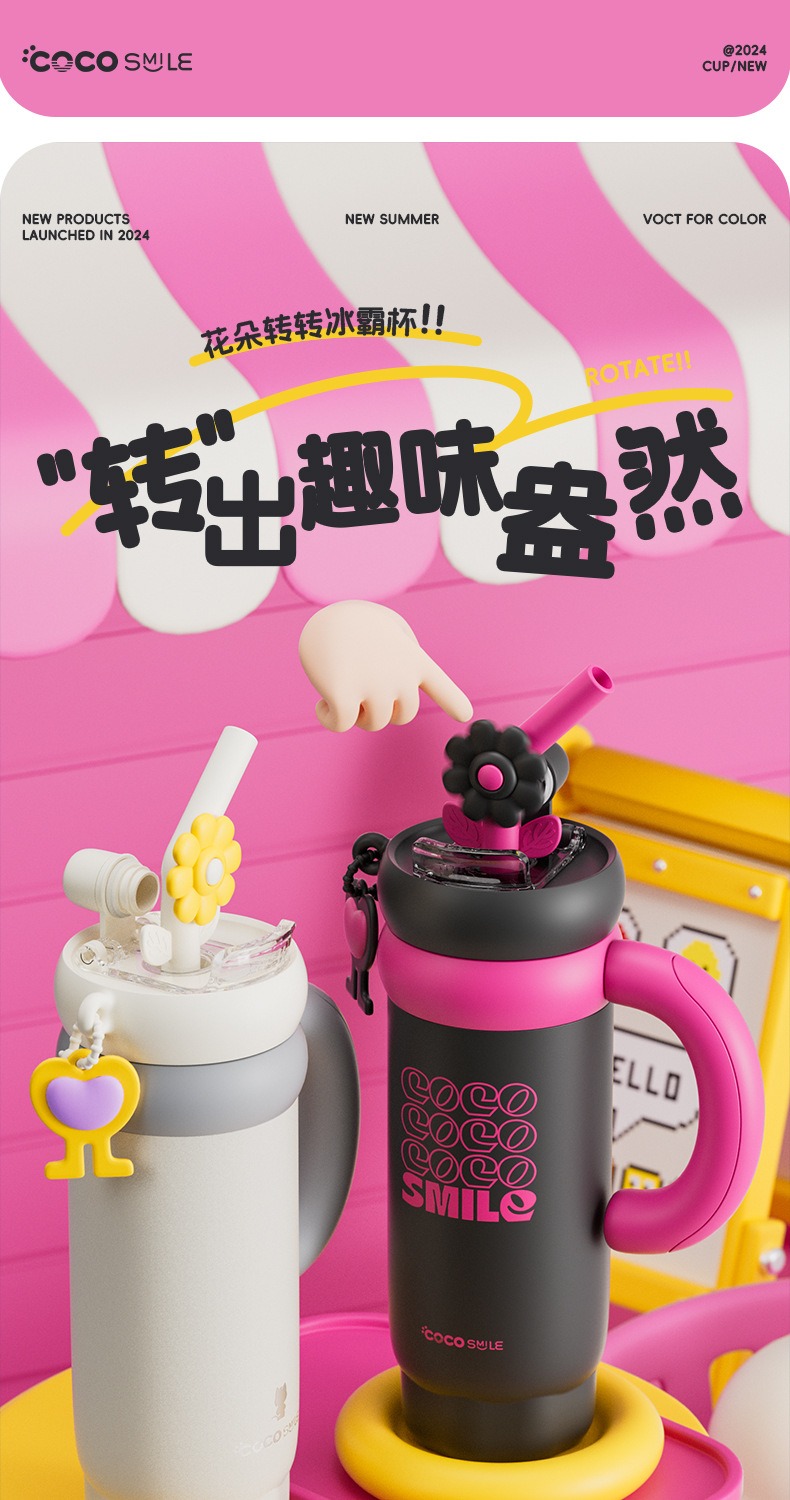 spot goods 760ml large capacity rotating flower water cup 316 stainless steel vacuum cup long-lasting cold and hot ice cup 中文版
