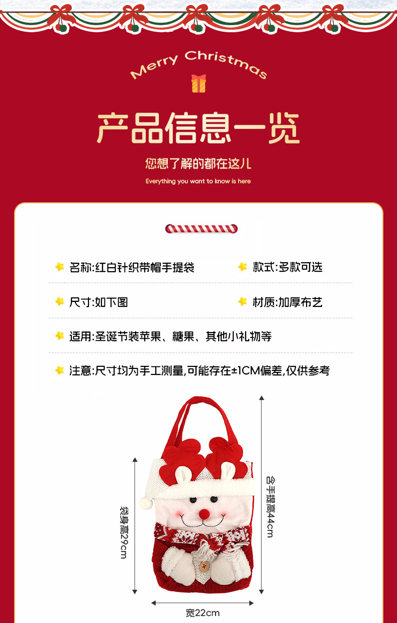 flannel cartoon apple bag snowman