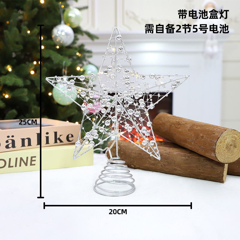 sliver beads random line tree-top star 20 * 25cm +10 lights