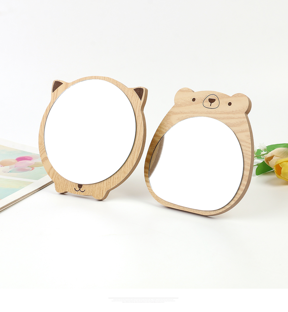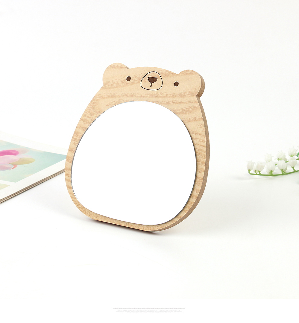 cute bear wooden mirror hd beauty mirror desktop cartoon makeup mirror table setting dressing mirror princess mirror 中文版