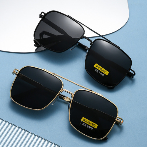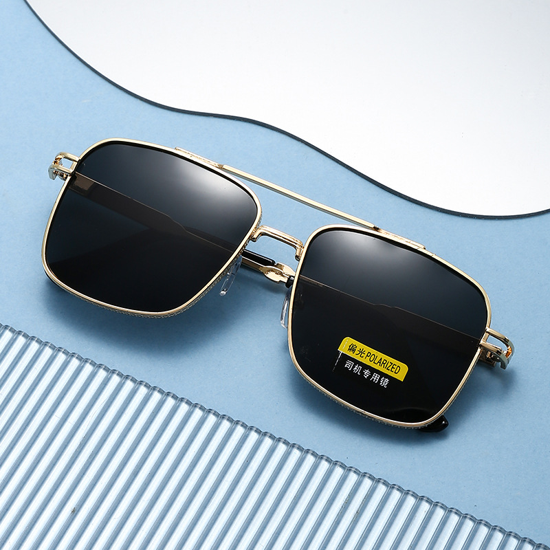 gold frame black and grey lens