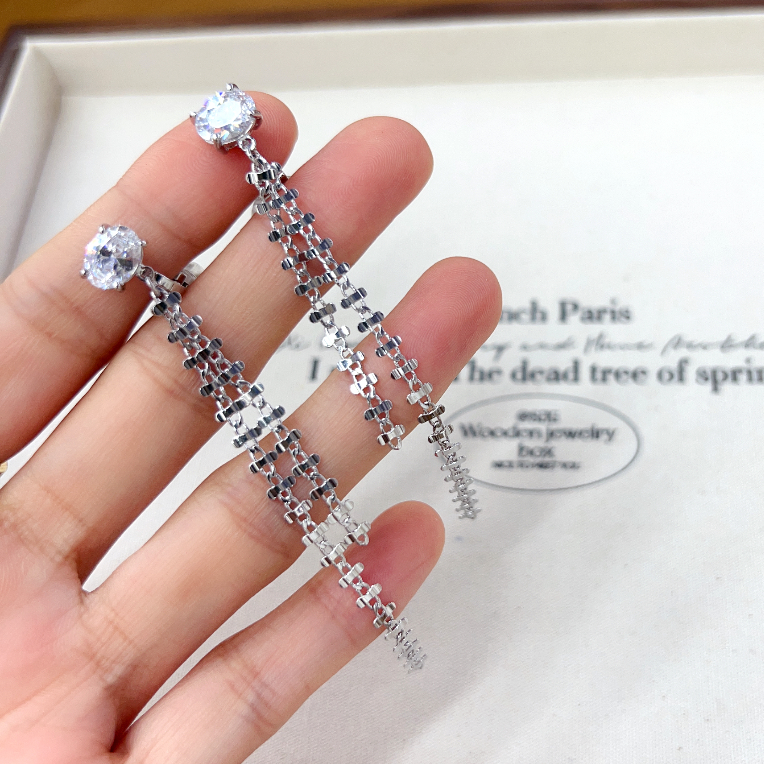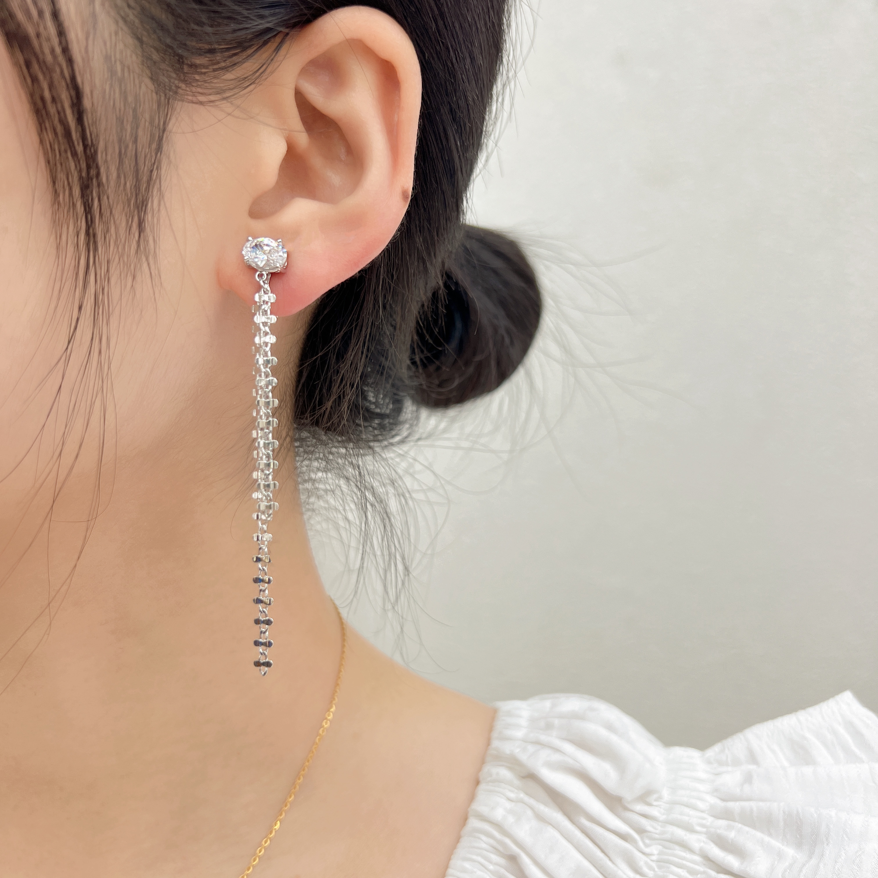 korean fashion earrings women's temperamental personalized and all-match long tassel earrings internet hot rhinestones cross claw chain ear studs 中文版
