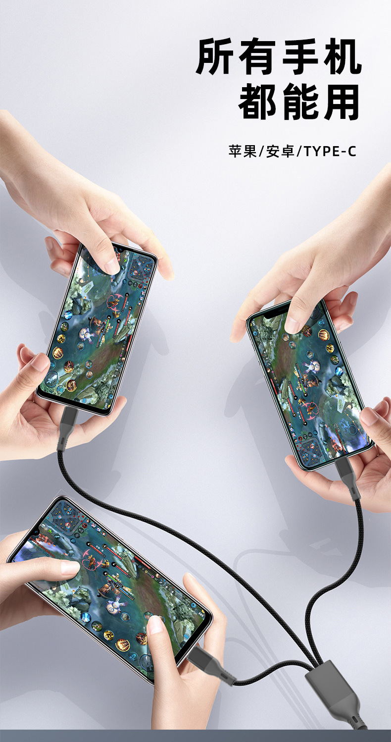 Product Name: One-to-Three Braided Quick Charge Data Cable